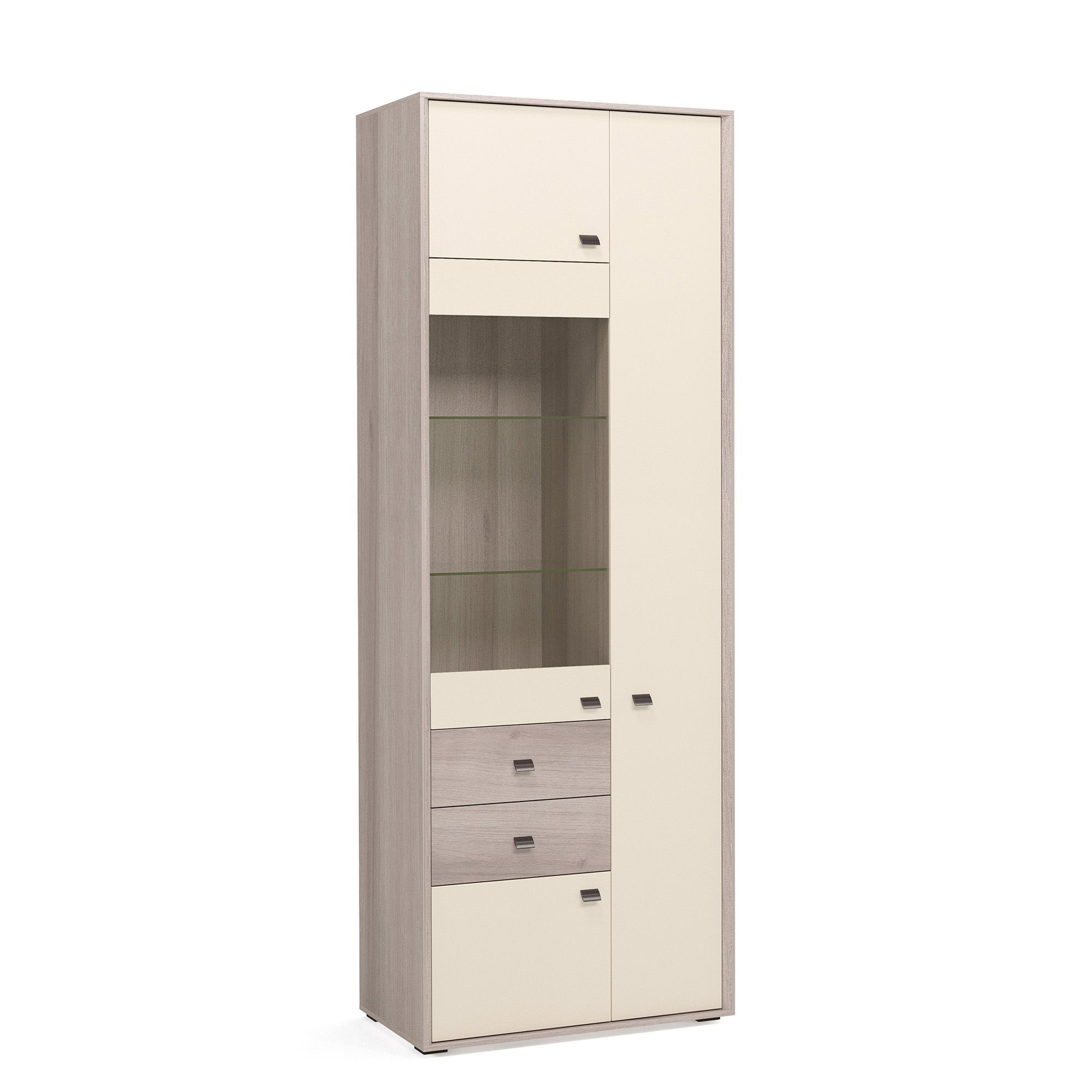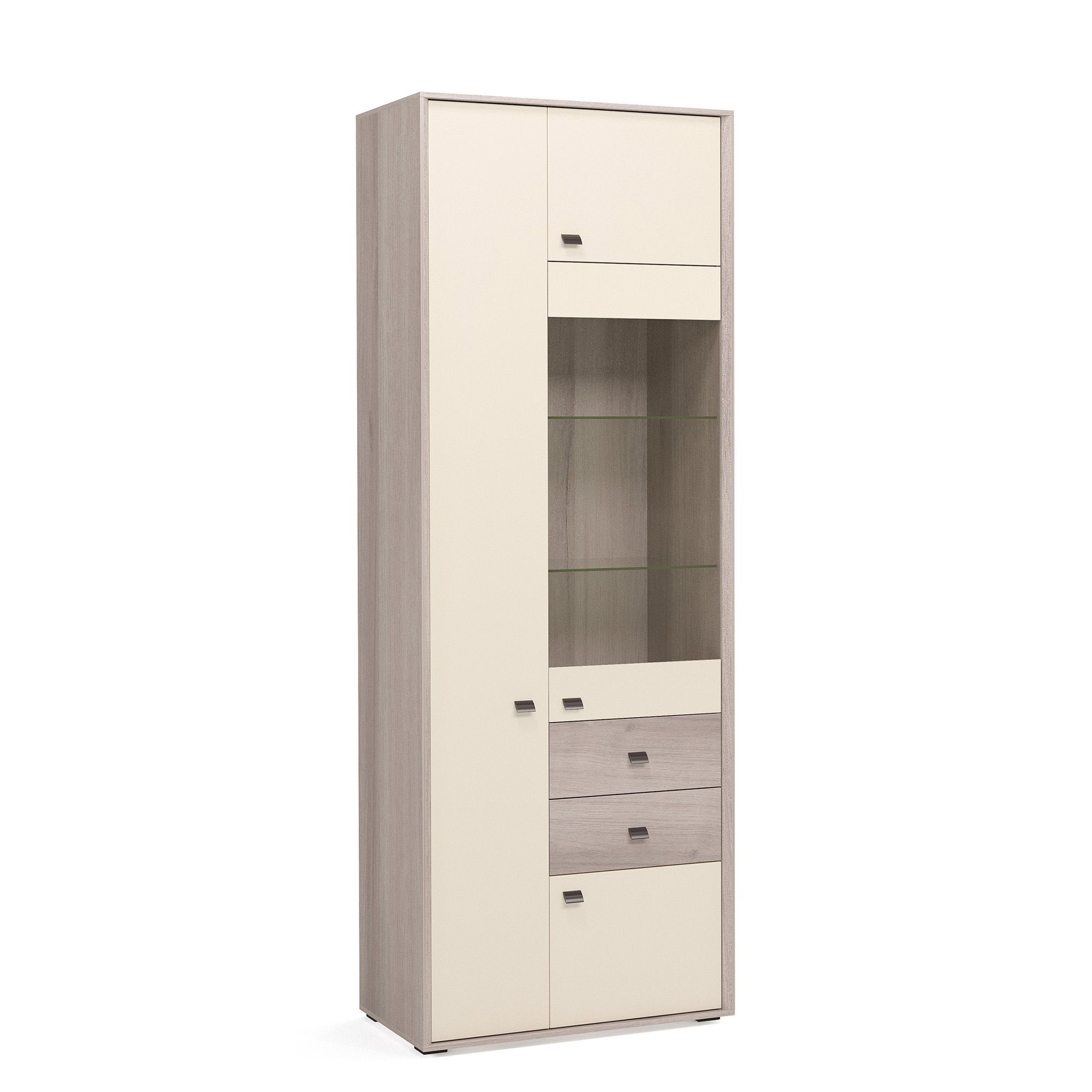 Шкаф-витрина ALTERA с полками и выдвижными ящиками отлично подходит как для гостиных, так и для молодежных комнат, домашних библиотек и рабочих кабинетов. Конструкция предусматривает вариант зеркального расположения секций. Доводчики и направляющие для плавного закрывания включены в базовую комплектацию. Стандартный комплект ручек входит в комплектацию. Вы можете подобрать к шкафу ручки другого дизайна (заказываются отдельно).