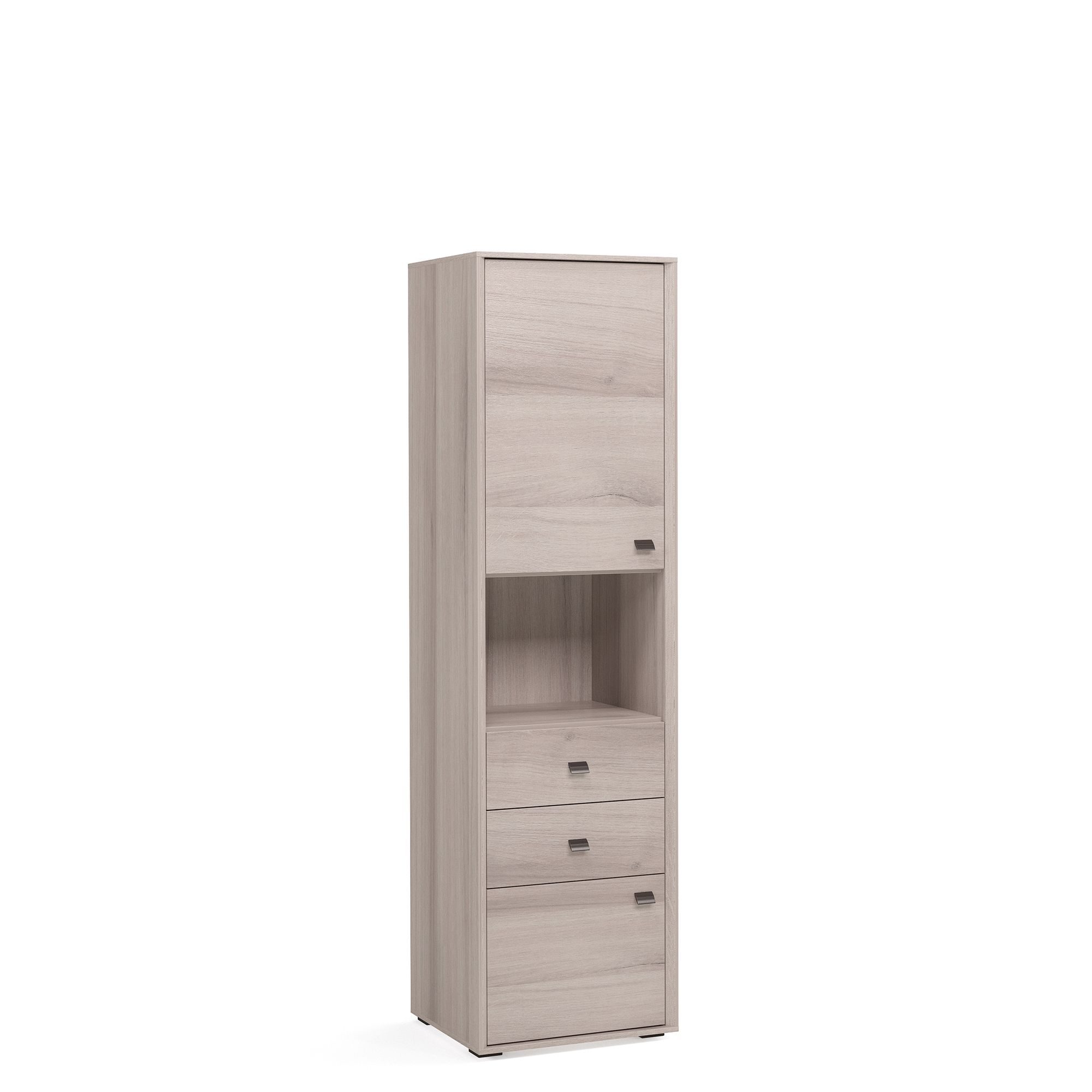 Шкаф ALTERA с нишей и выдвижными ящиками отлично подходит как для гостиных, так и для молодежных комнат, домашних библиотек и рабочих кабинетов. За сплошными фасадами модели расположена система полок из ДСП. Конструкция предусматривает навешивание фасада как на правую, так и на левую сторону. Доводчики и направляющие с амортизатором для плавного закрывания включены в базовую комплектацию. Стандартный комплект ручек входит в комплектацию. Вы можете подобрать к шкафу ручки другого дизайна (заказываются отдельно).