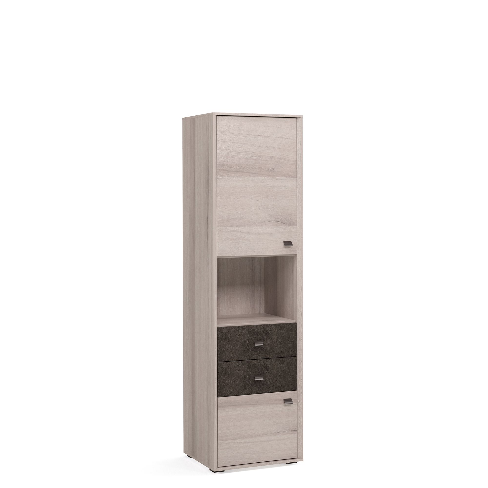 Шкаф ALTERA с нишей и выдвижными ящиками отлично подходит как для гостиных, так и для молодежных комнат, домашних библиотек и рабочих кабинетов. За сплошными фасадами модели расположена система полок из ДСП. Конструкция предусматривает навешивание фасада как на правую, так и на левую сторону. Доводчики и направляющие с амортизатором для плавного закрывания включены в базовую комплектацию. Стандартный комплект ручек входит в комплектацию. Вы можете подобрать к шкафу ручки другого дизайна (заказываются отдельно).