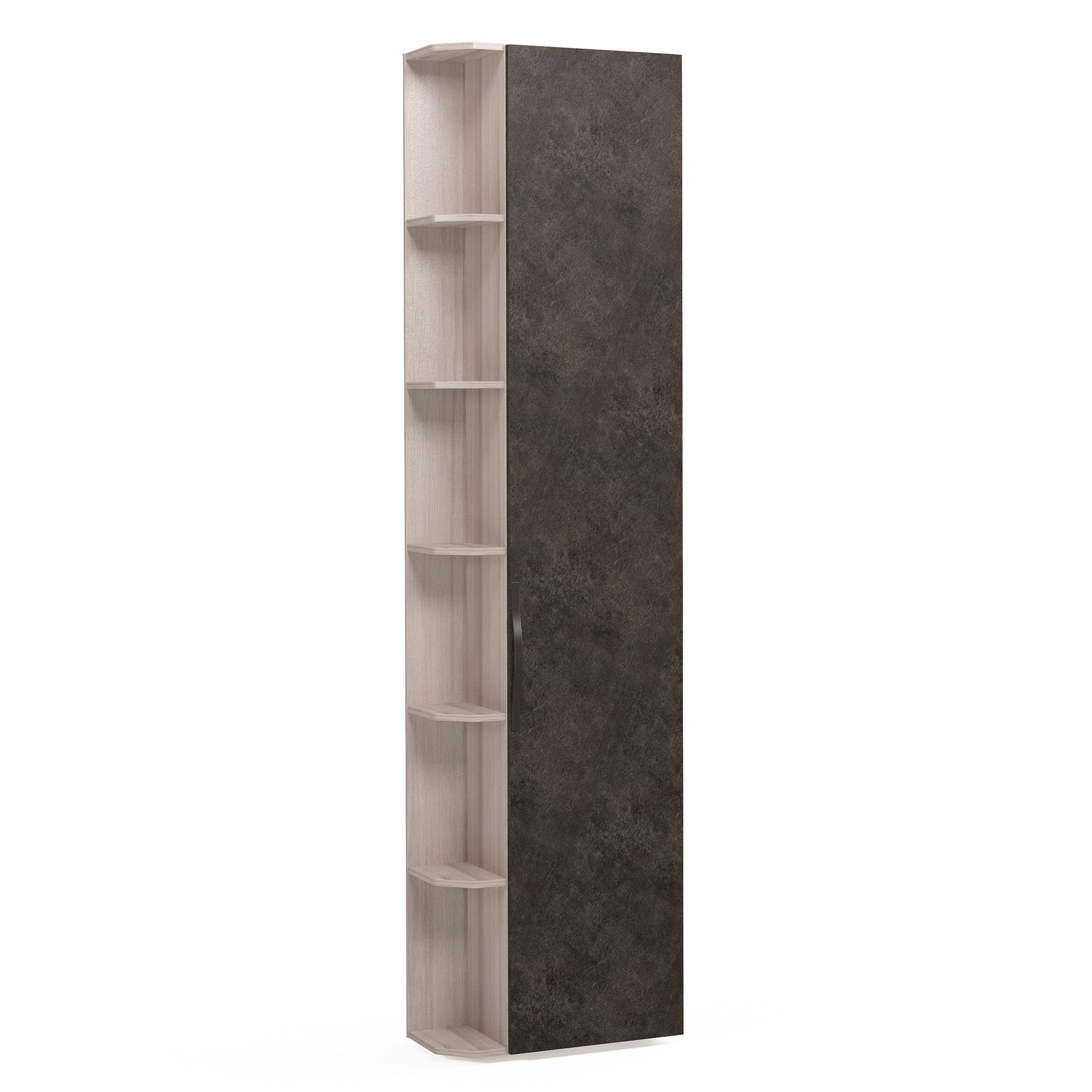 Завершающий шкаф ALTERA, объединяющий функции закрытого и открытого хранения, может располагаться как в левой, так и в правой части шкафной композиции. За распашным фасадом расположена система полок. Небольшая глубина элемента позволяет рационально использовать архитектурные особенности помещения, например, ниши. Доводчики для плавного закрывания включены в базовую комплектацию. Стандартный комплект ручек входит в комплектацию. Вы можете подобрать к шкафу ручки другого дизайна (заказываются отдельно).