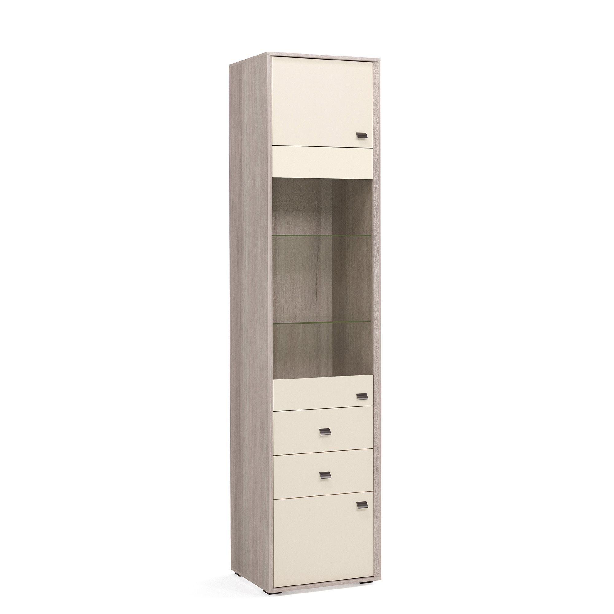 Шкаф-витрина ALTERA с полками и выдвижными ящиками отлично подходит как для гостиных, так и для молодежных комнат, домашних библиотек и рабочих кабинетов. Доводчики и направляющие для плавного закрывания включены в базовую комплектацию. Стандартный комплект ручек входит в комплектацию. Вы можете подобрать к шкафу ручки другого дизайна (заказываются отдельно).