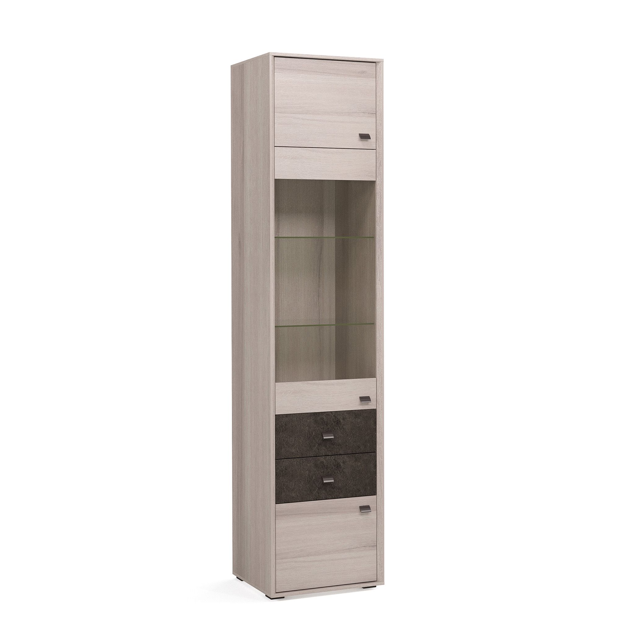 Шкаф-витрина ALTERA с полками и выдвижными ящиками отлично подходит как для гостиных, так и для молодежных комнат, домашних библиотек и рабочих кабинетов. Доводчики и направляющие для плавного закрывания включены в базовую комплектацию. Стандартный комплект ручек входит в комплектацию. Вы можете подобрать к шкафу ручки другого дизайна (заказываются отдельно).