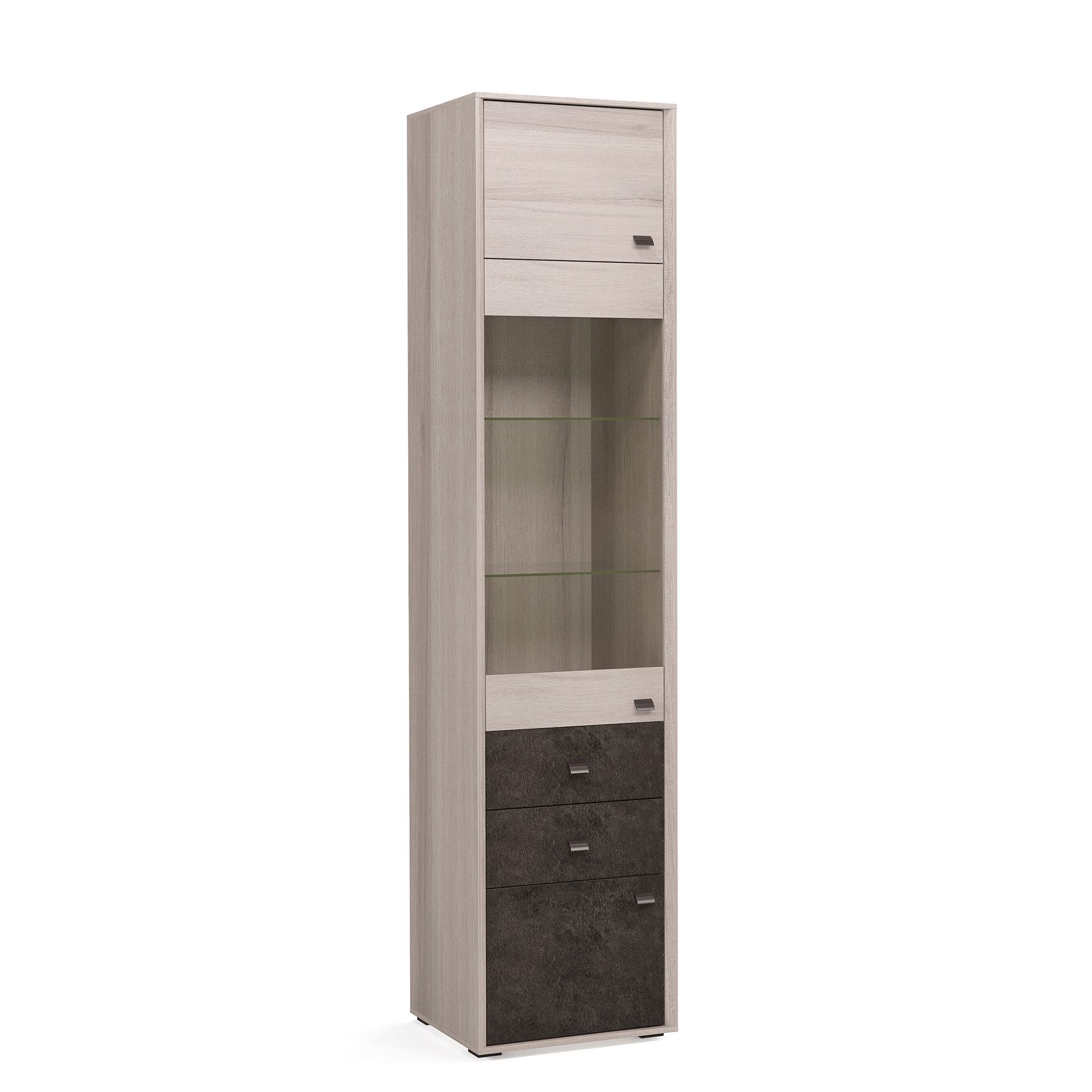Шкаф-витрина ALTERA с полками и выдвижными ящиками отлично подходит как для гостиных, так и для молодежных комнат, домашних библиотек и рабочих кабинетов. Доводчики и направляющие для плавного закрывания включены в базовую комплектацию. Стандартный комплект ручек входит в комплектацию. Вы можете подобрать к шкафу ручки другого дизайна (заказываются отдельно).