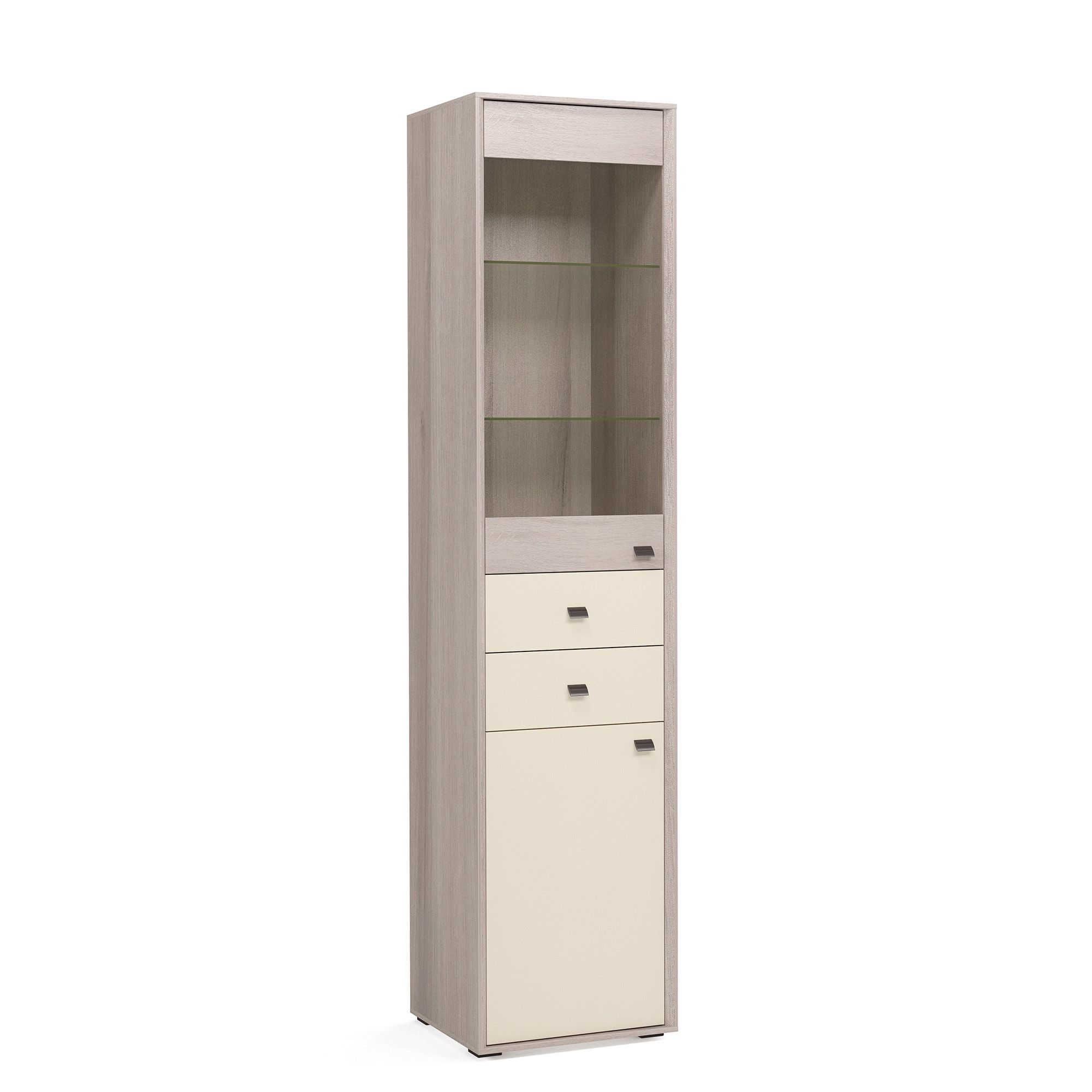 Шкаф-витрина ALTERA с полками и выдвижными ящиками отлично подходит как для гостиных, так и для молодежных комнат, домашних библиотек и рабочих кабинетов. Доводчики и направляющие для плавного закрывания включены в базовую комплектацию. Стандартный комплект ручек входит в комплектацию. Вы можете подобрать к шкафу ручки другого дизайна (заказываются отдельно).