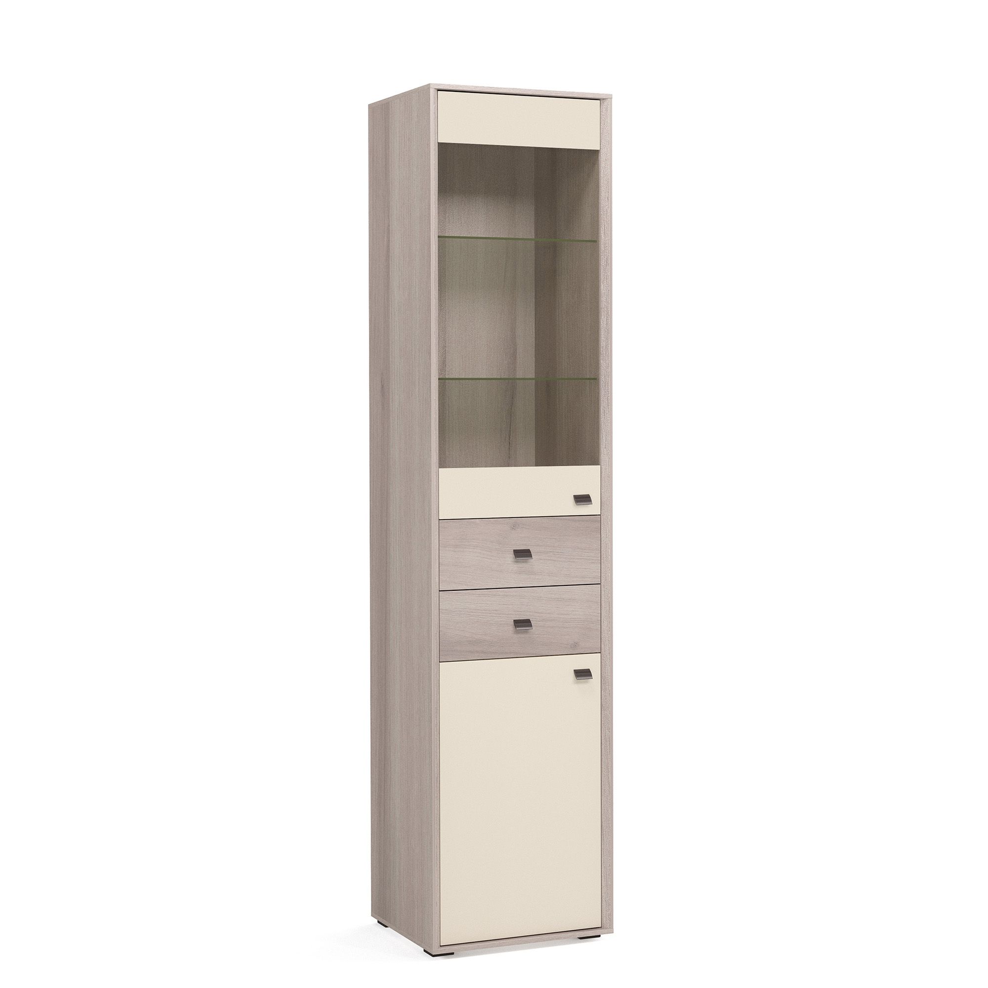 Шкаф-витрина ALTERA с полками и выдвижными ящиками отлично подходит как для гостиных, так и для молодежных комнат, домашних библиотек и рабочих кабинетов. Доводчики и направляющие для плавного закрывания включены в базовую комплектацию. Стандартный комплект ручек входит в комплектацию. Вы можете подобрать к шкафу ручки другого дизайна (заказываются отдельно).