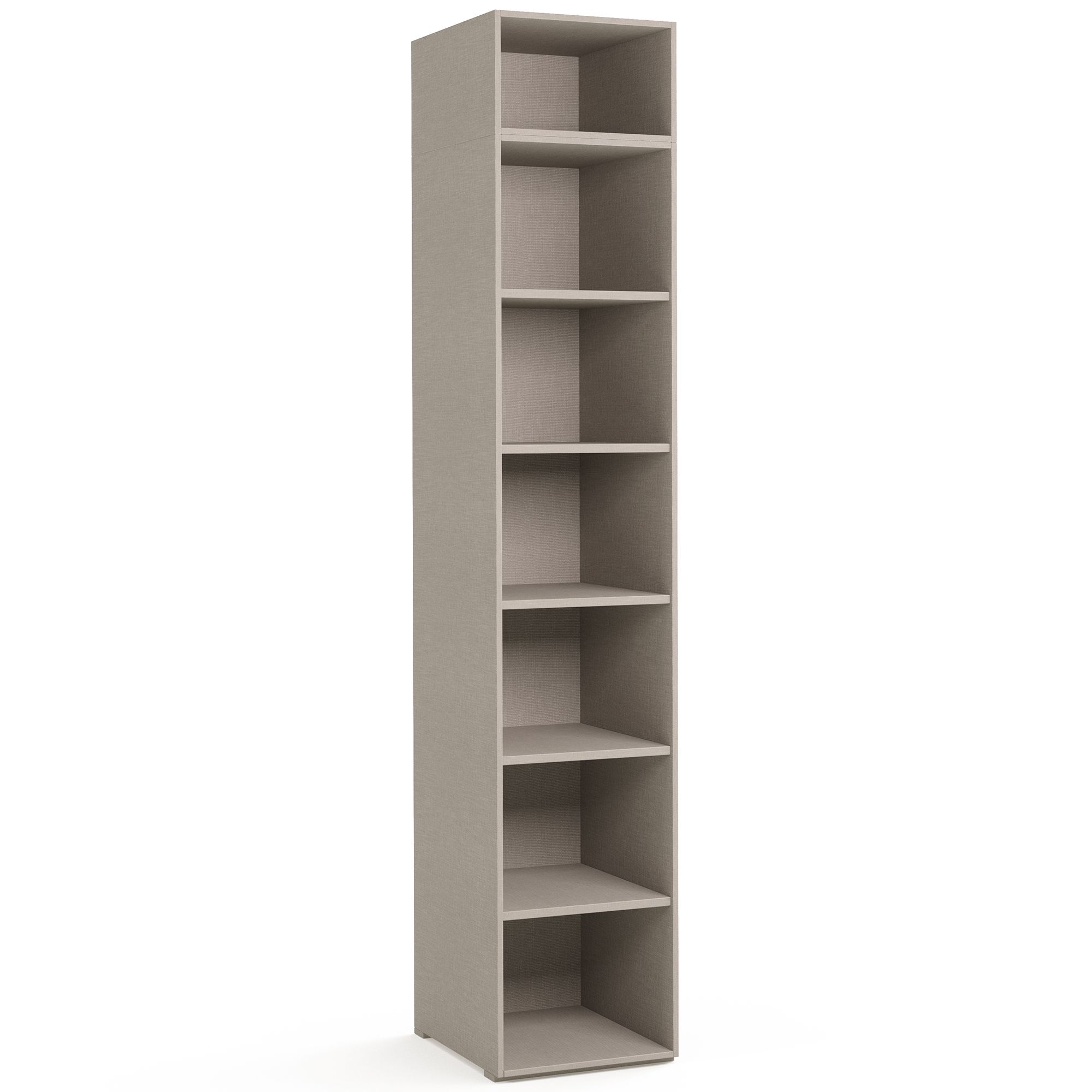 Коллекция предусматривает возможность создания индивидуальной системы хранения с помощью перемещения полок на удобную высоту с шагом 32 мм и заказа дополнительных вставных тумб с ящиками, которые можно установить на основание шкафа или подвесить на определенной высоте.