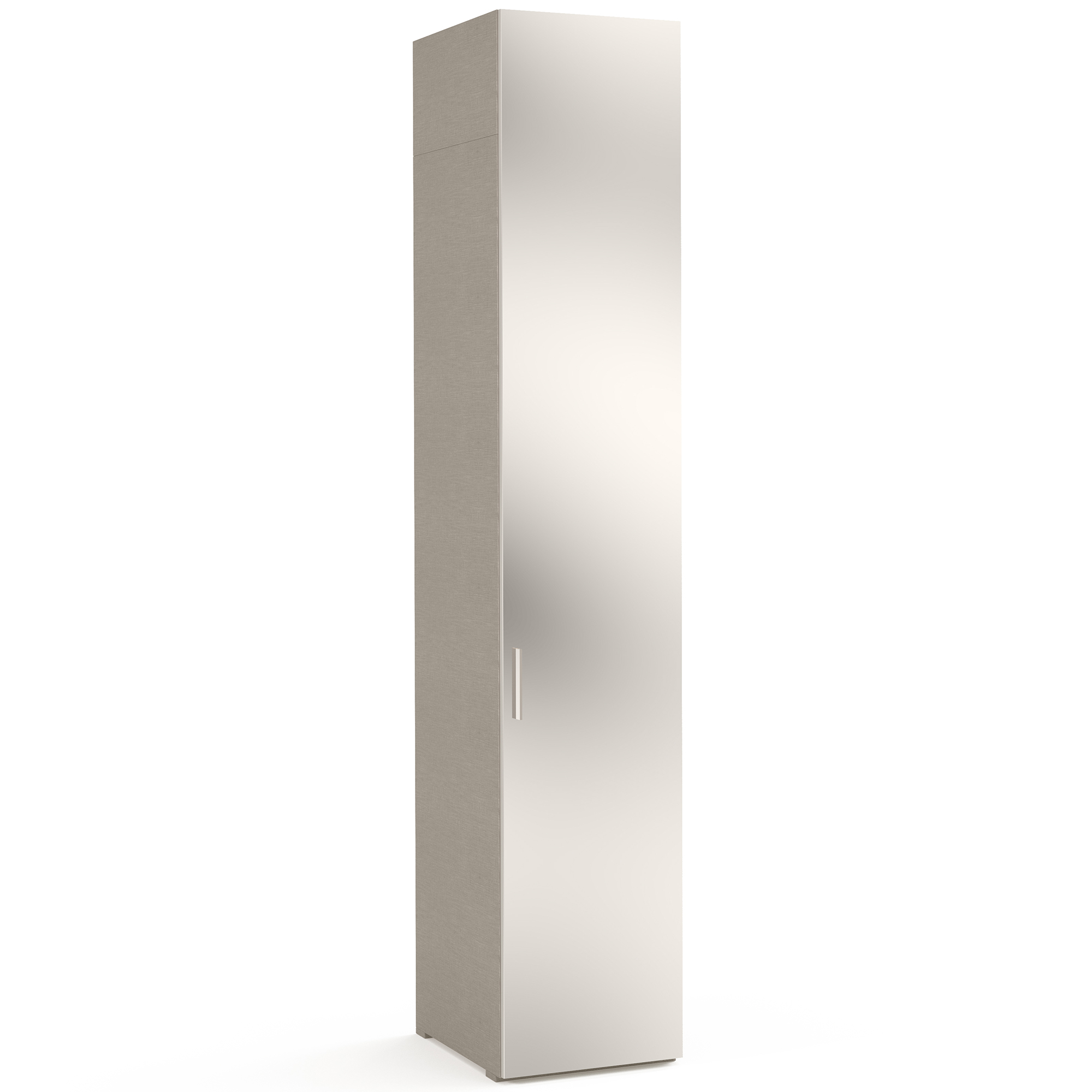 Однодверный шкаф ESTE оснащен антресолями, увеличивающими его высоту, что позволяет использовать по максимуму свободное пространство под потолком. Фасад шкафа оснащен зеркалом. Внутреннее пространство оформлено в текстуре Шенилл, воспроизводящей рисунок плетения натуральной ткани. Наполнение шкафа представляет собой систему полок. В комплектацию включены ручки в отделке Хром-глянец. Предусмотрена возможность замены на ручки в отделке Черный никель. ВАЖНО! Глубина шкафа указана без учета фасада, высота – без учета карниза. Боковые стенки и карнизы заказываются отдельно. Зеркальный фасад поставляется с двумя сквозными отверстиями под ручку.