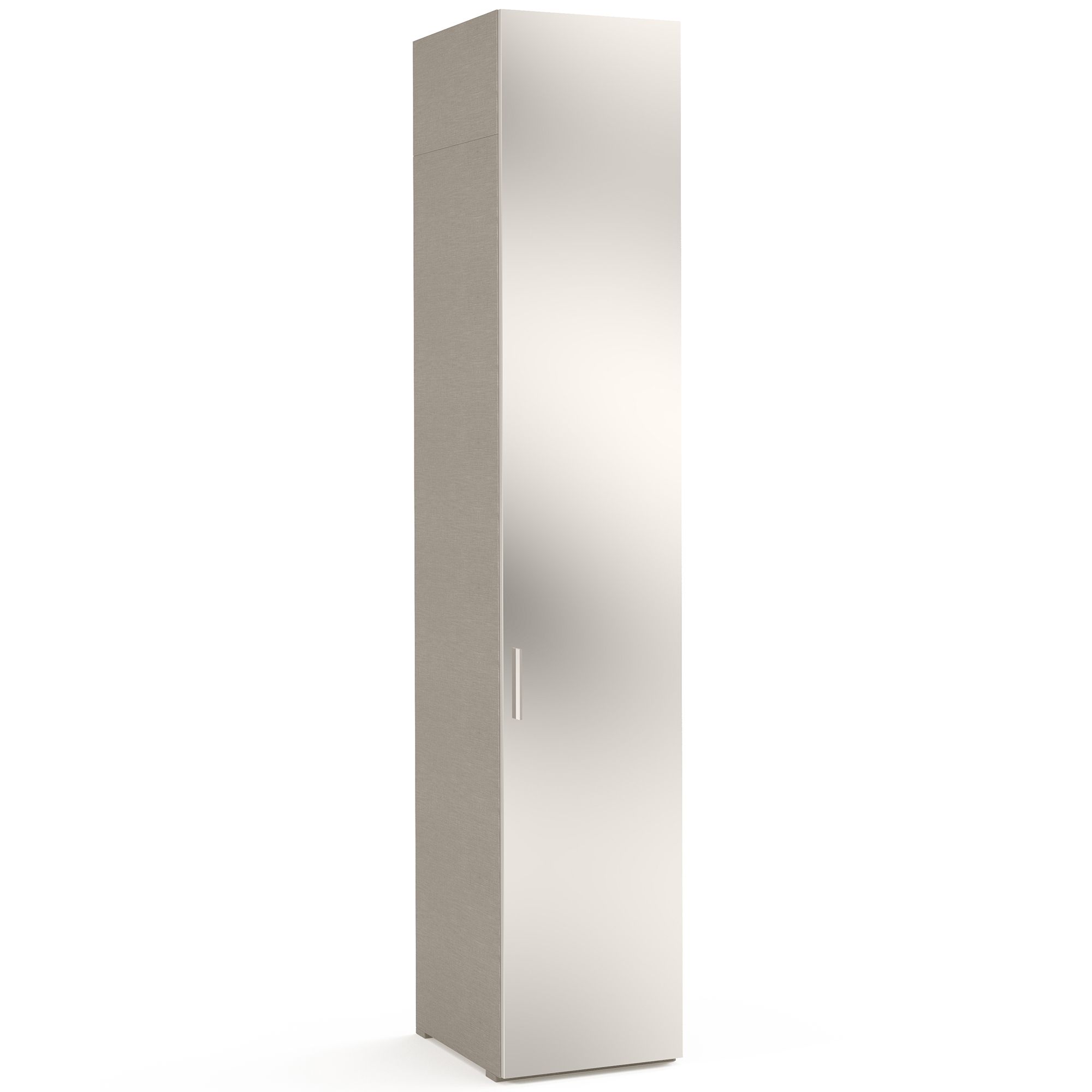 Однодверный шкаф ESTE оснащен антресолями, увеличивающими его высоту, что позволяет использовать по максимуму свободное пространство под потолком. Фасад шкафа оснащен зеркалом. Внутреннее пространство оформлено в текстуре Шенилл, воспроизводящей рисунок плетения натуральной ткани. Наполнение шкафа представляет собой систему из трех полок, к нижней из которых крепится штанга для вешалок. В комплектацию включены ручки в отделке Хром-глянец. Предусмотрена возможность замены на ручки в отделке Черный никель. ВАЖНО! Глубина шкафа указана без учета фасада, высота – без учета карниза. Боковые стенки и карнизы заказываются отдельно. Зеркальный фасад поставляется с двумя сквозными отверстиями под ручку.