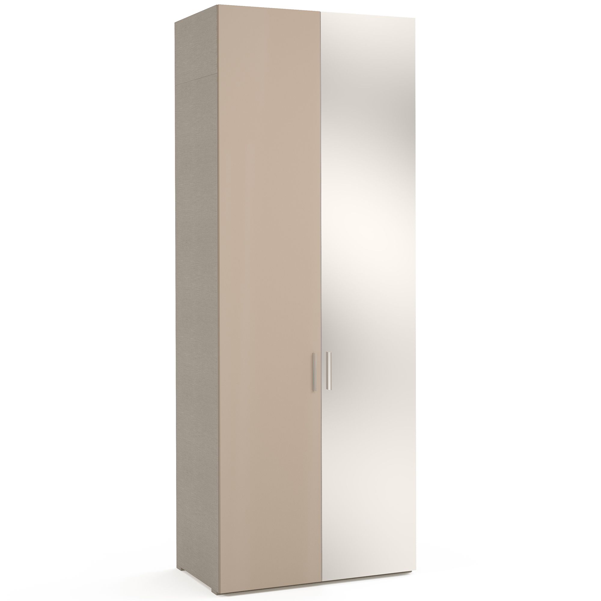 Двухдверный шкаф ESTE оснащен антресолями, увеличивающими его высоту, что позволяет использовать по максимуму свободное пространство под потолком. Один из фасадов шкафа выполнен в отделке Глянец Mokko, второй представляет собой сплошное зеркальное полотно. Внутреннее пространство оформлено в текстуре Шенилл, воспроизводящей рисунок плетения натуральной ткани. Наполнение шкафа представляет собой систему из трех полок, к нижней из которых крепится штанга для вешалок. Шкаф оснащен встроенным светильником, который включается автоматически при открывании дверей (система включения светильника с трансформатором заказываются отдельно). В комплектацию включены ручки в отделке Хром-глянец. Предусмотрена возможность замены на ручки в отделке Черный никель. ВАЖНО! Глубина шкафа указана без учета фасада, высота – без учета карниза. Боковые стенки и карнизы заказываются отдельно. Зеркальный фасад поставляется с двумя сквозными отверстиями под ручку.