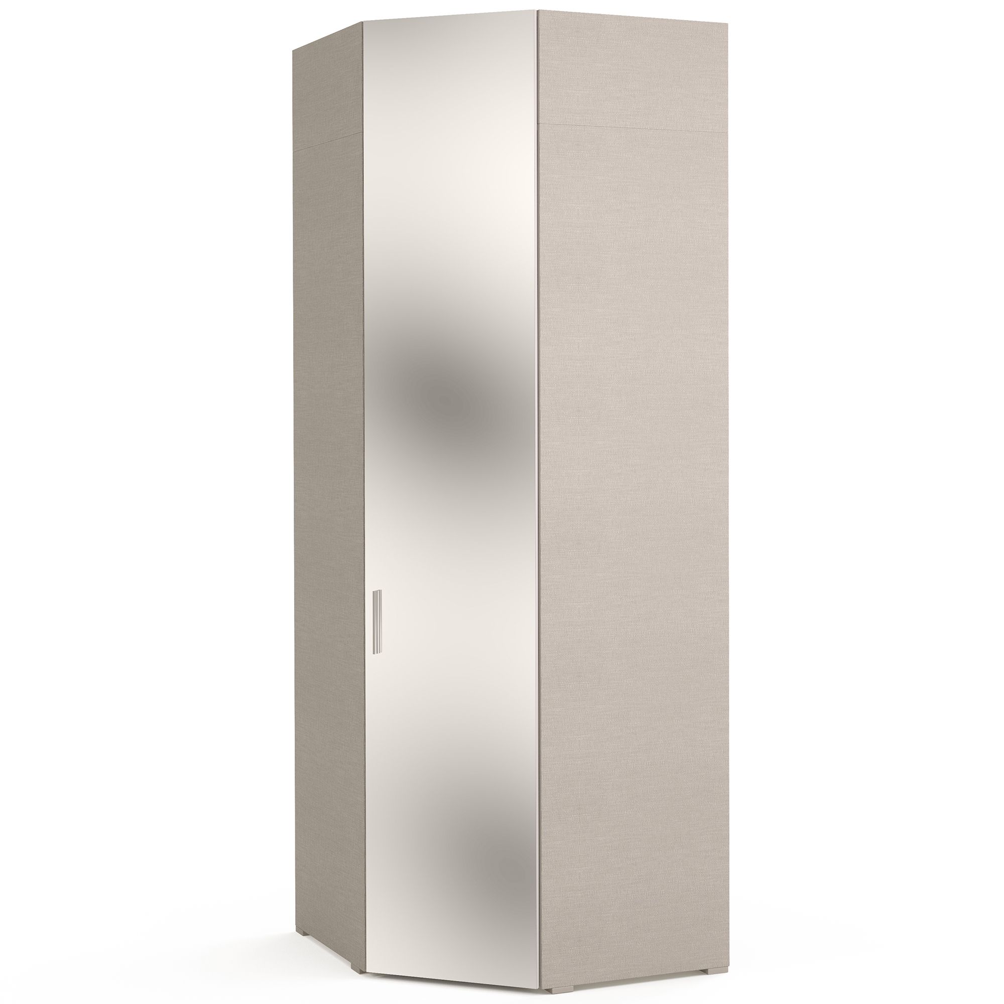 Угловой шкаф ESTE оснащен антресолями, увеличивающими его высоту, что позволяет использовать по максимуму свободное пространство под потолком. Фасад шкафа оснащен зеркалом. Возможно как левое, так и правое открывание. Внутреннее пространство оформлено в текстуре Шенилл, воспроизводящей рисунок плетения натуральной ткани. Наполнение одной из секций шкафа представляет собой систему из трех полок, к нижней из которых крепится штанга для вешалок. Во второй секции расположены шесть полок. Шкаф оснащен встроенным светильником, который включается автоматически при открывании дверей (система включения светильника с трансформатором заказываются отдельно). В комплектацию включены ручки в отделке Хром-глянец. Предусмотрена возможность замены на ручки в отделке Черный никель. ВАЖНО! Глубина шкафа указана без учета фасада, высота – без учета карниза. Боковые стенки и карнизы заказываются отдельно.