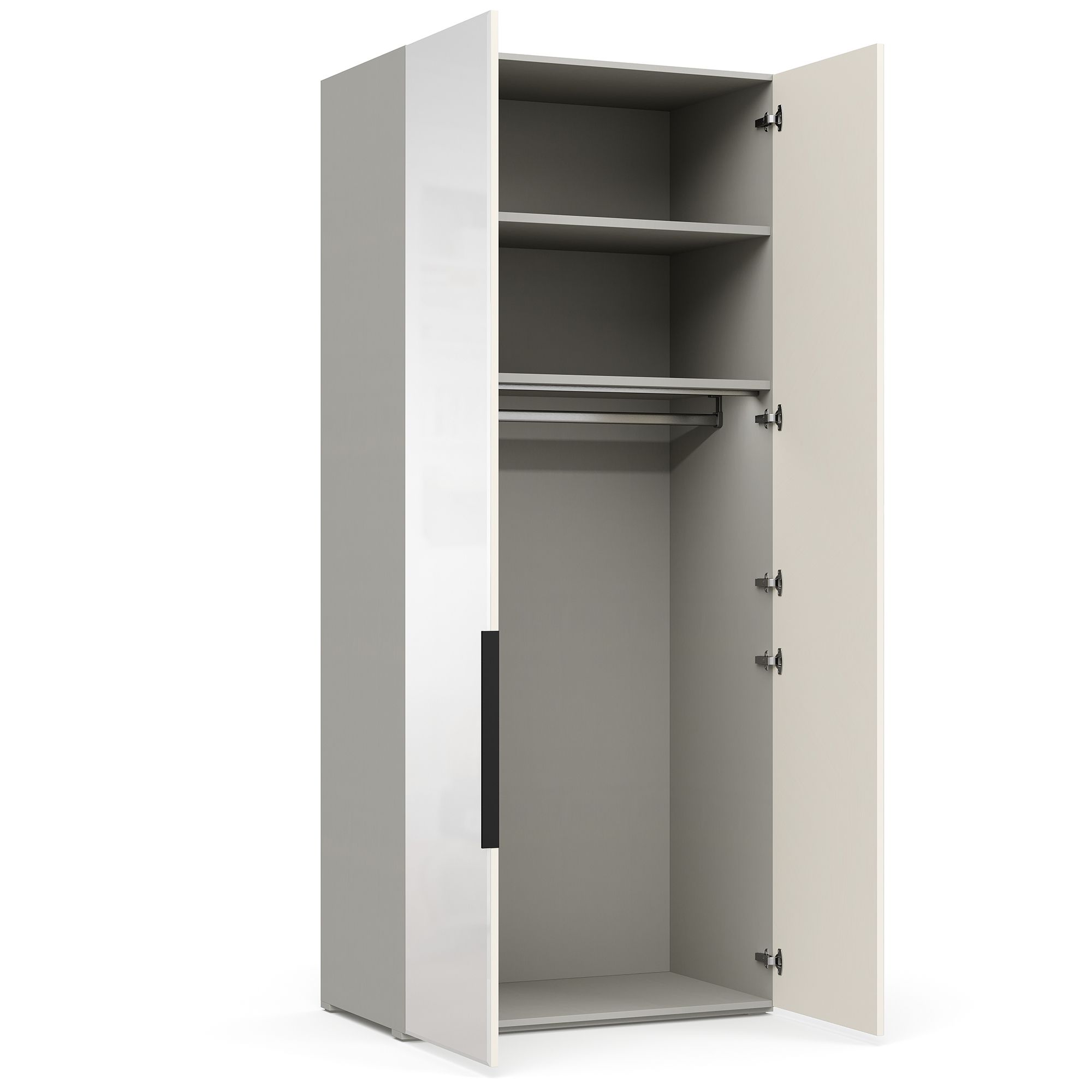 Наполнение двухдверного шкафа MONAKO с зеркальными фасадами представляет собой две полки, к нижней из которых крепится штанга для вешалок. Корпус шкафа выполнен в текстуре Шенилл, имитирующей натуральную ткань. В комплектацию включен встроенный светильник, который включается автоматически при открывании дверей. ВАЖНО! Боковые стенки для шкафа, а также система включения подсветки с трансформатором и удлинитель (2 метра) заказываются отдельно.