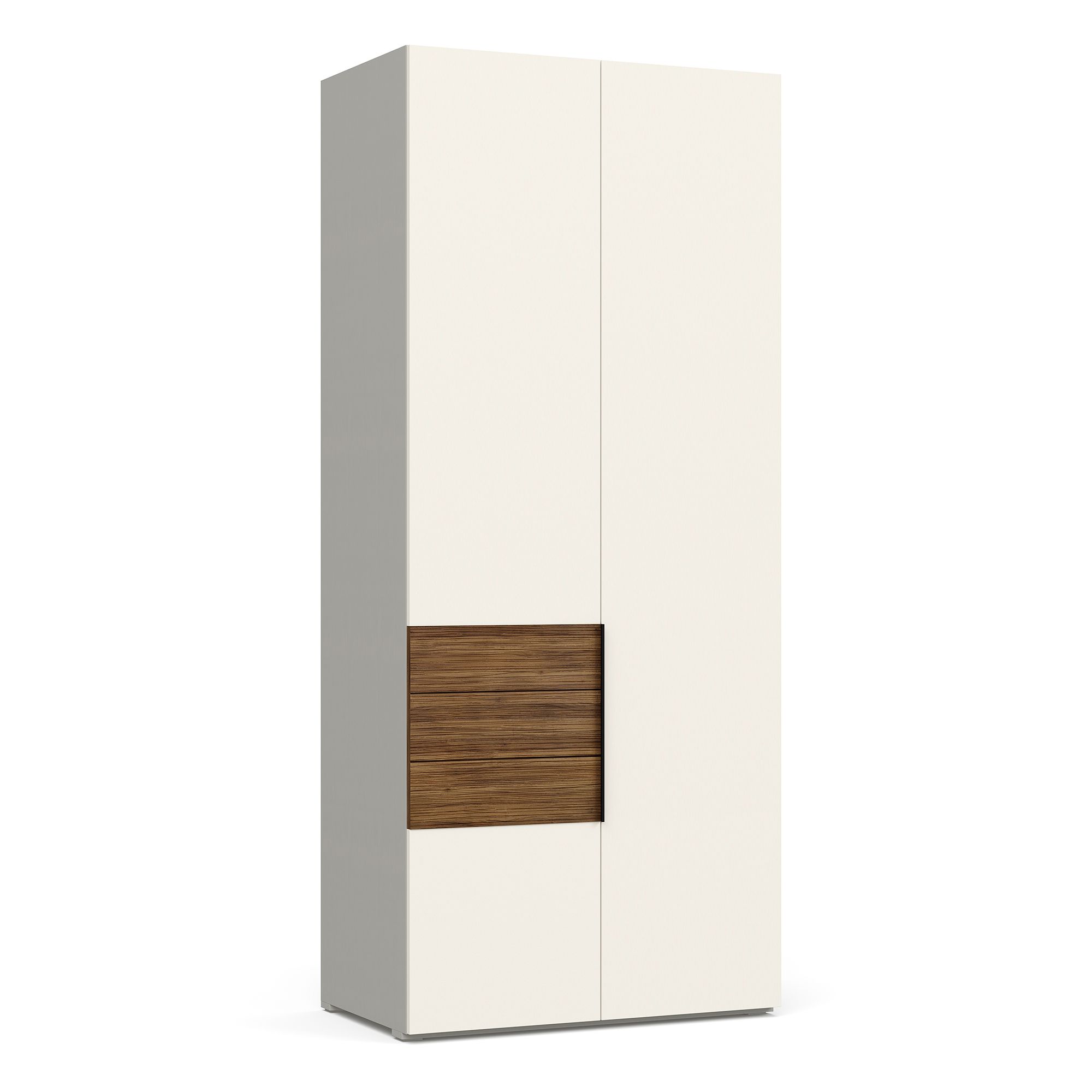 Наполнение двухдверного шкафа MONAKO представляет собой две полки, к нижней из которых крепится штанга для вешалок. Фасады изделия выполнены в отделке премиальной шелковой эмалью, один из них декорирован вставкой из натурального шпона. Корпус шкафа выполнен в текстуре Шенилл, имитирующей натуральную ткань. В комплектацию включен встроенный светильник, который включается автоматически при открывании дверей. ВАЖНО! Боковые стенки для шкафа, а также система включения подсветки с трансформатором и удлинитель (2 метра) заказываются отдельно.