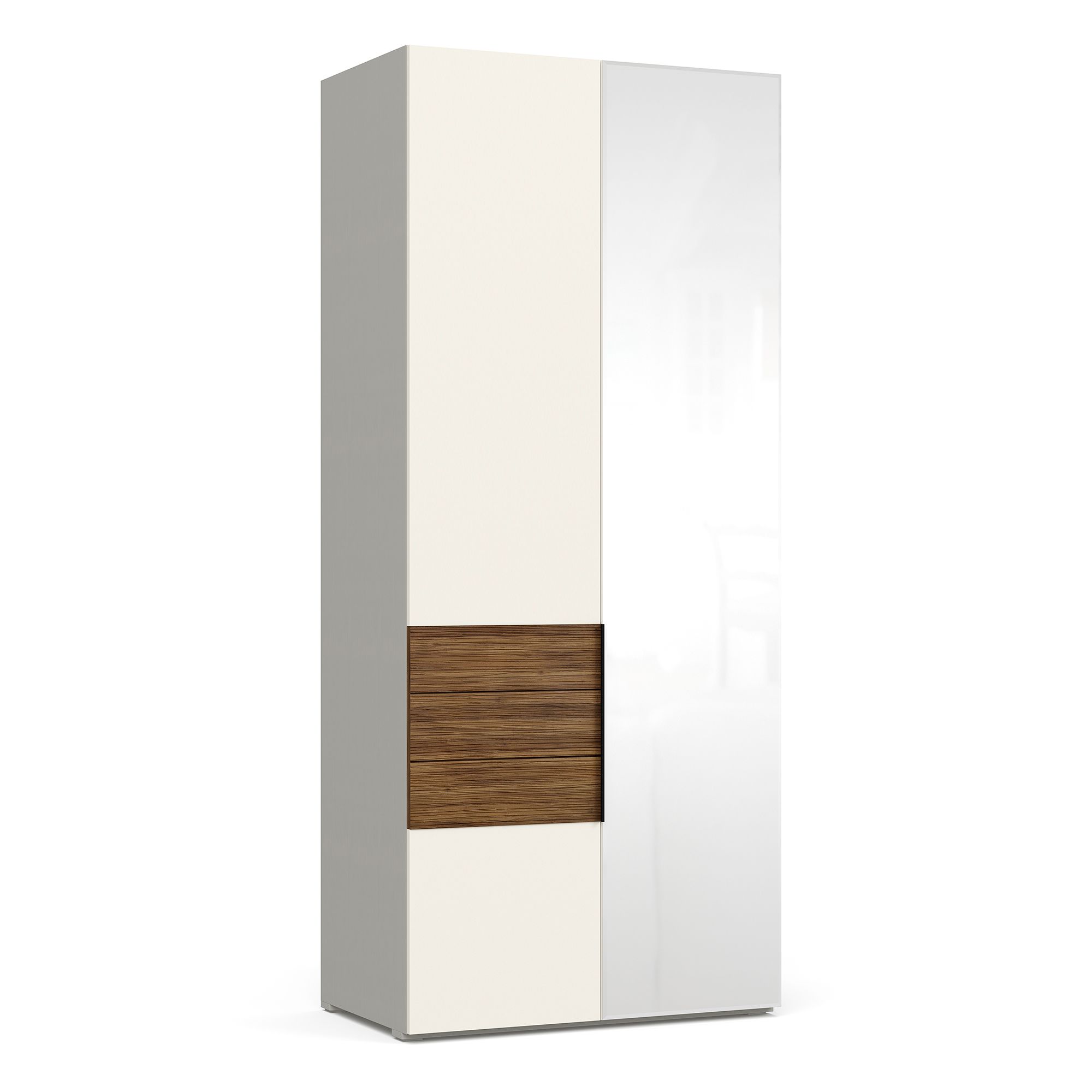 Предусмотрена возможность дополнительного оснащения шкафов функциональной тумбой с выдвижными ящиками. Элемент выполнен в отделке текстурой Шенилл, которая в точности воспроизводит рисунок плетения натуральной ткани и применяется, как правило, исключительно в европейских премиальных коллекциях.