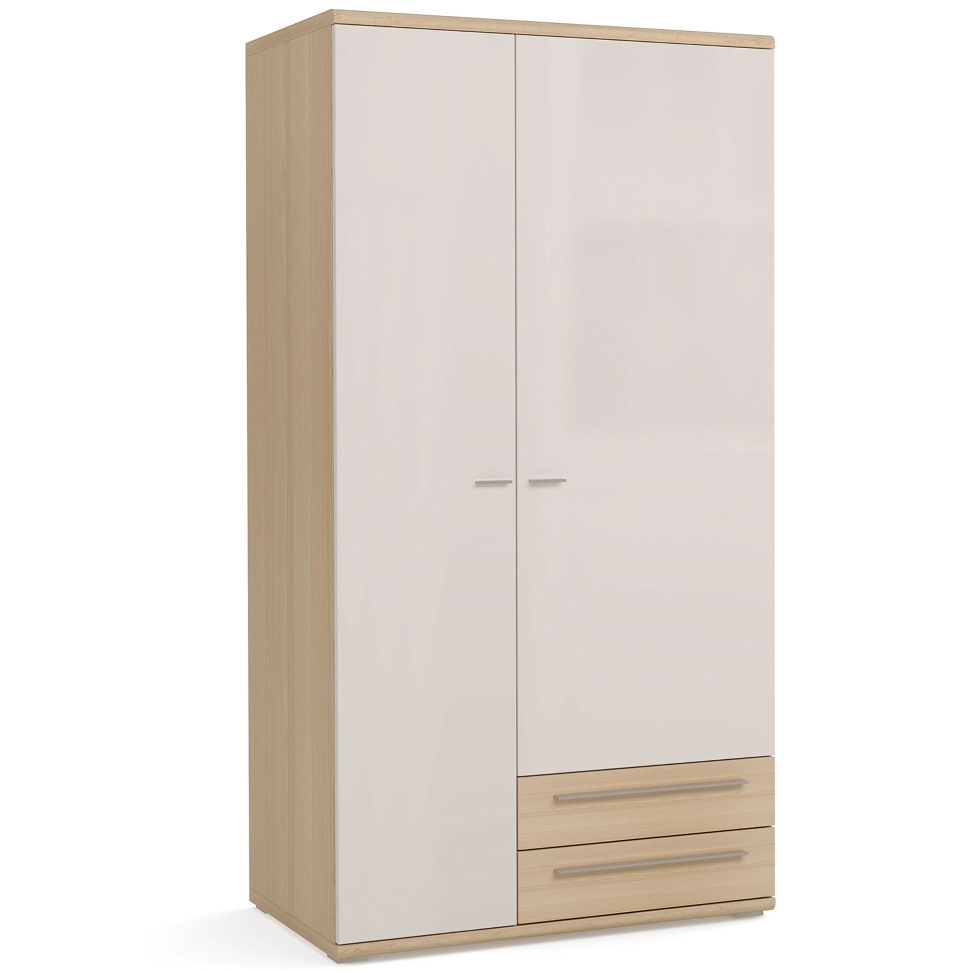 Вместительный двухдверный шкаф ESTE оснащен распашными фасадами и выдвижными ящиками, доступ к которым не требует открывания фасада.