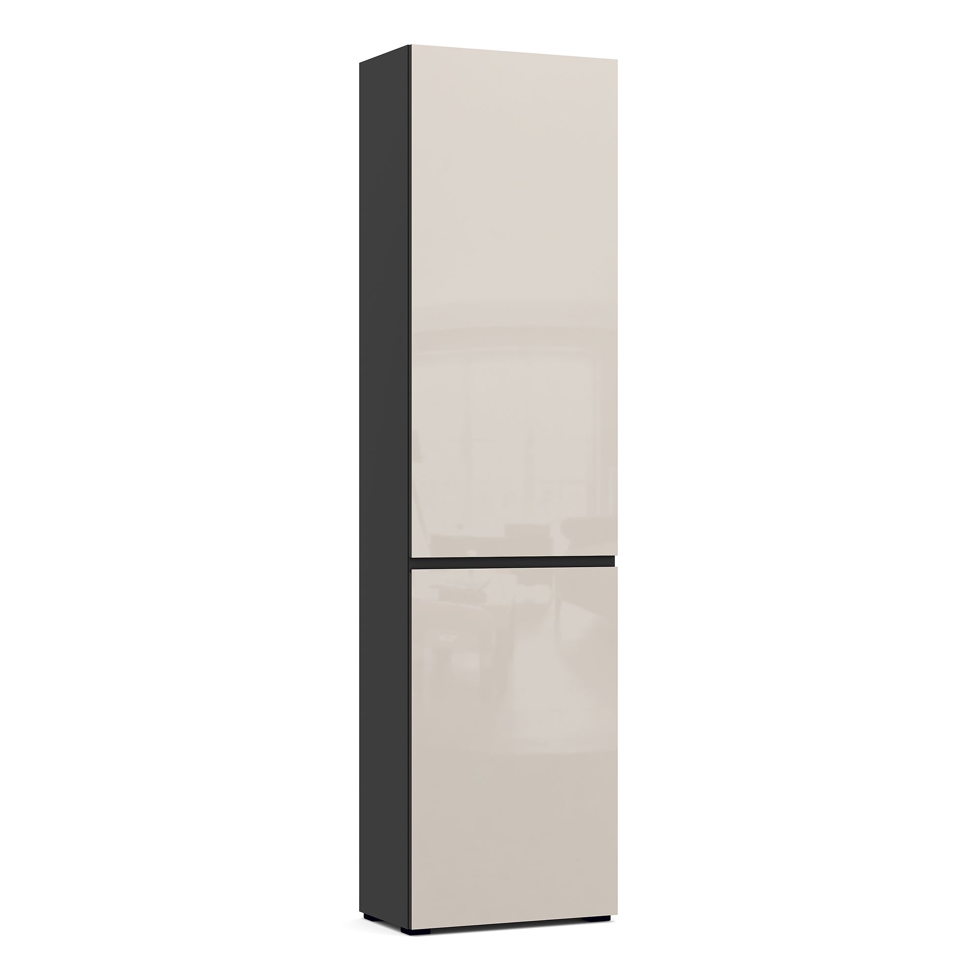 За фасадом однодверного шкафа BRUNO, оснащенного эргономичной J-ручкой контрастного графитового оттенка, располагается система полок. Возможно исполнение как с правым, так и с левым открыванием.