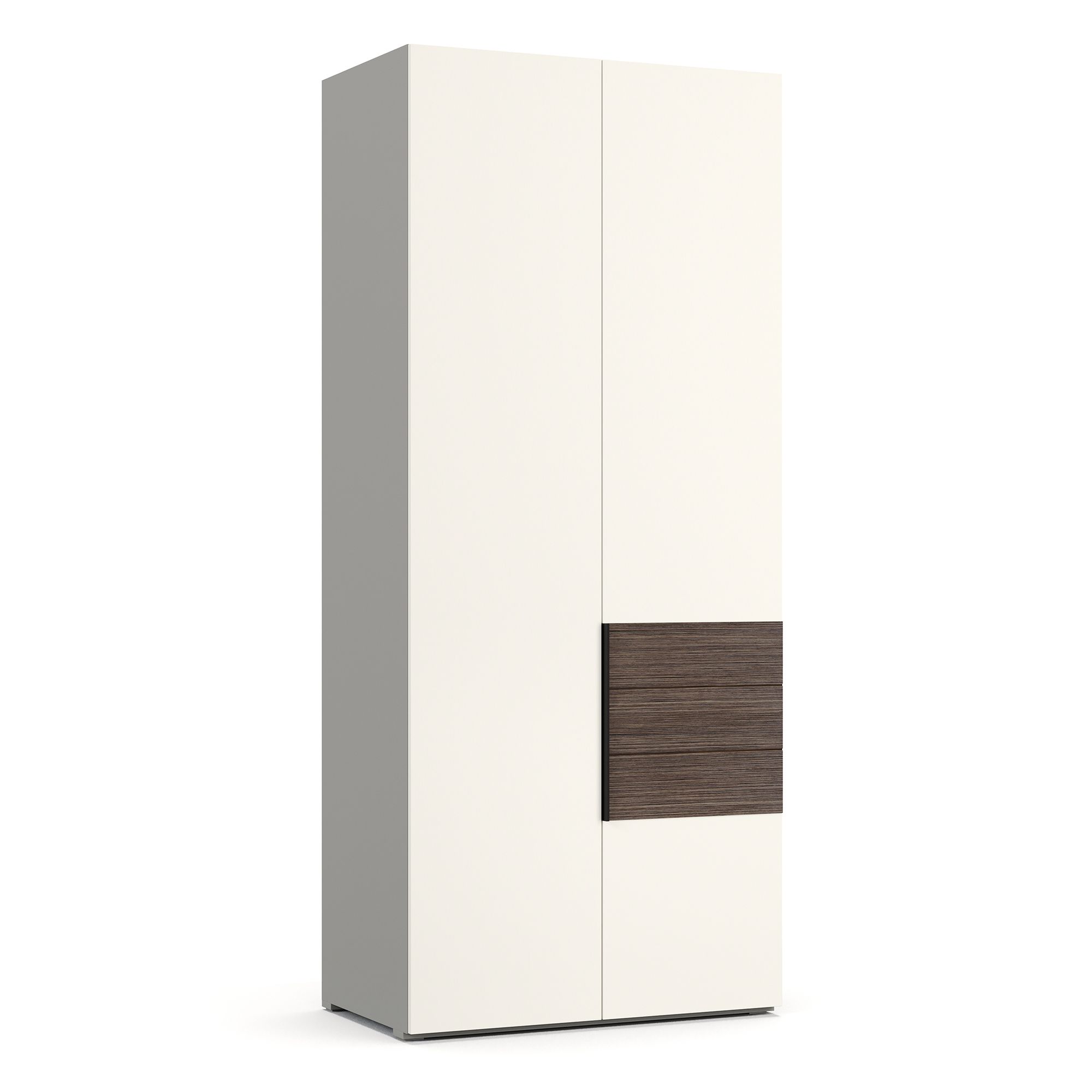 В коллекции используются стильные накладные ручки европейского производства, изготовленные из металла с черным матовым покрытием. Фурнитура отличается высокой надежностью и сохраняет безупречный внешний вид на протяжении всего срока службы мебели.