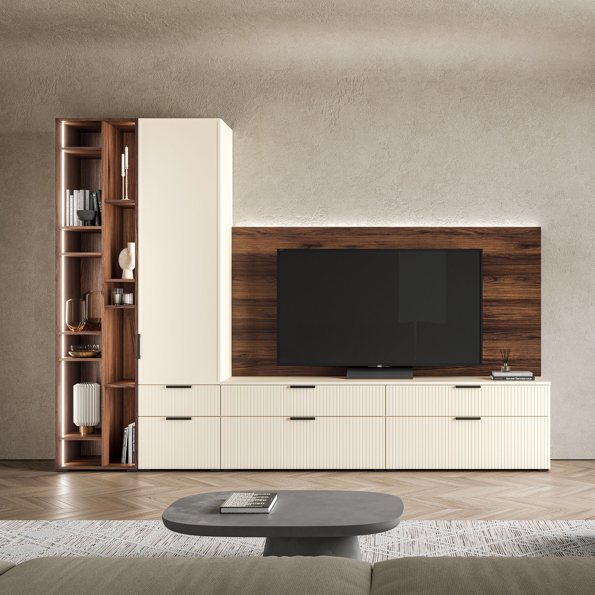 Коллекция включает мебель для спальни, гостиной, прихожей и рабочего кабинета, что позволяет оформить квартиру в едином стиле, создать интерьер для пространства свободной планировки или сделать одно помещение мультифункциональным, объединив в нем элементы различных жилых зон. Дизайн с использованием модулей различной глубины, переходных модулей и антресолей обеспечивает возможность решения любых интерьерных задач с сохранением преемственности и композиционной цельности.