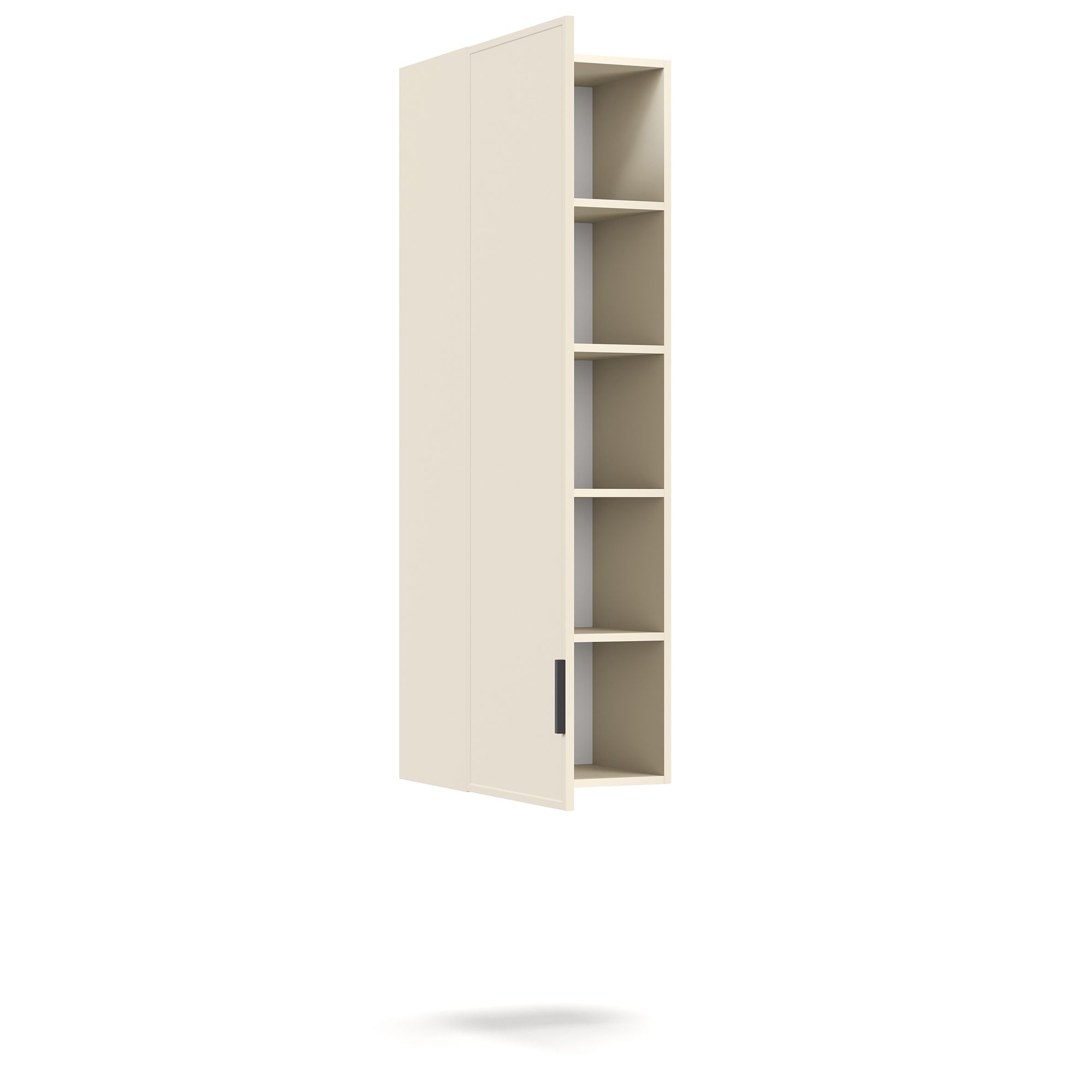 Навесной шкаф NAPOLI оснащен сплошным фасадом, декорированным тонкой рамкой, за которым располагается система полок из ЛДСП. Возможно как левое, так и правое открывание фасада. Помимо навешивания на стену, предусмотрена установка шкафа на тумбу. Максимально допустимая распределенная нагрузка на изделие – 20 кг.