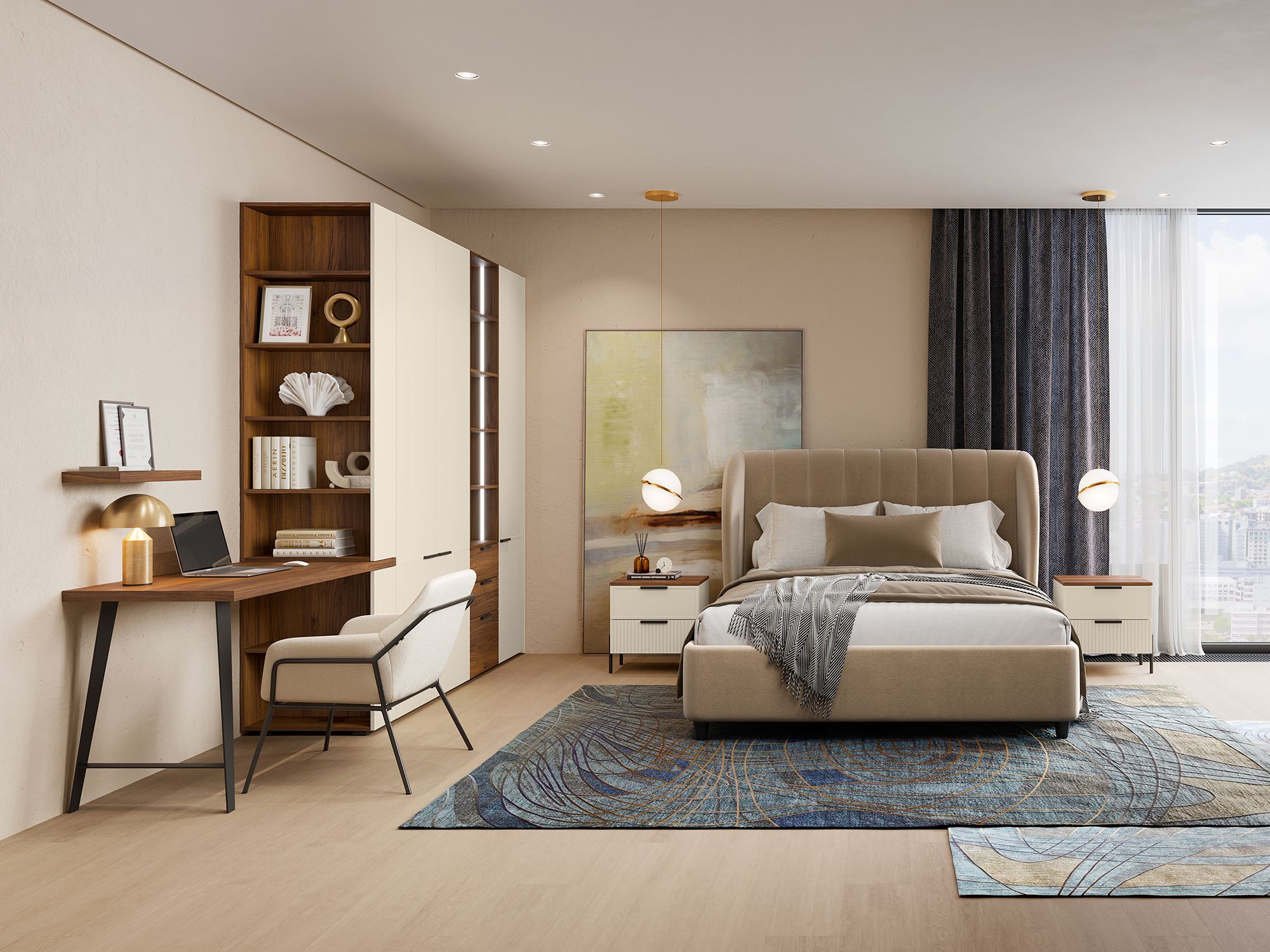 Коллекция включает мебель для спальни, гостиной, прихожей и рабочего кабинета, что позволяет оформить квартиру в едином стиле, создать интерьер для пространства свободной планировки или сделать одно помещение мультифункциональным, объединив в нем элементы различных жилых зон. Дизайн с использованием модулей различной глубины, переходных модулей и антресолей обеспечивает возможность решения любых интерьерных задач с сохранением преемственности и композиционной цельности.