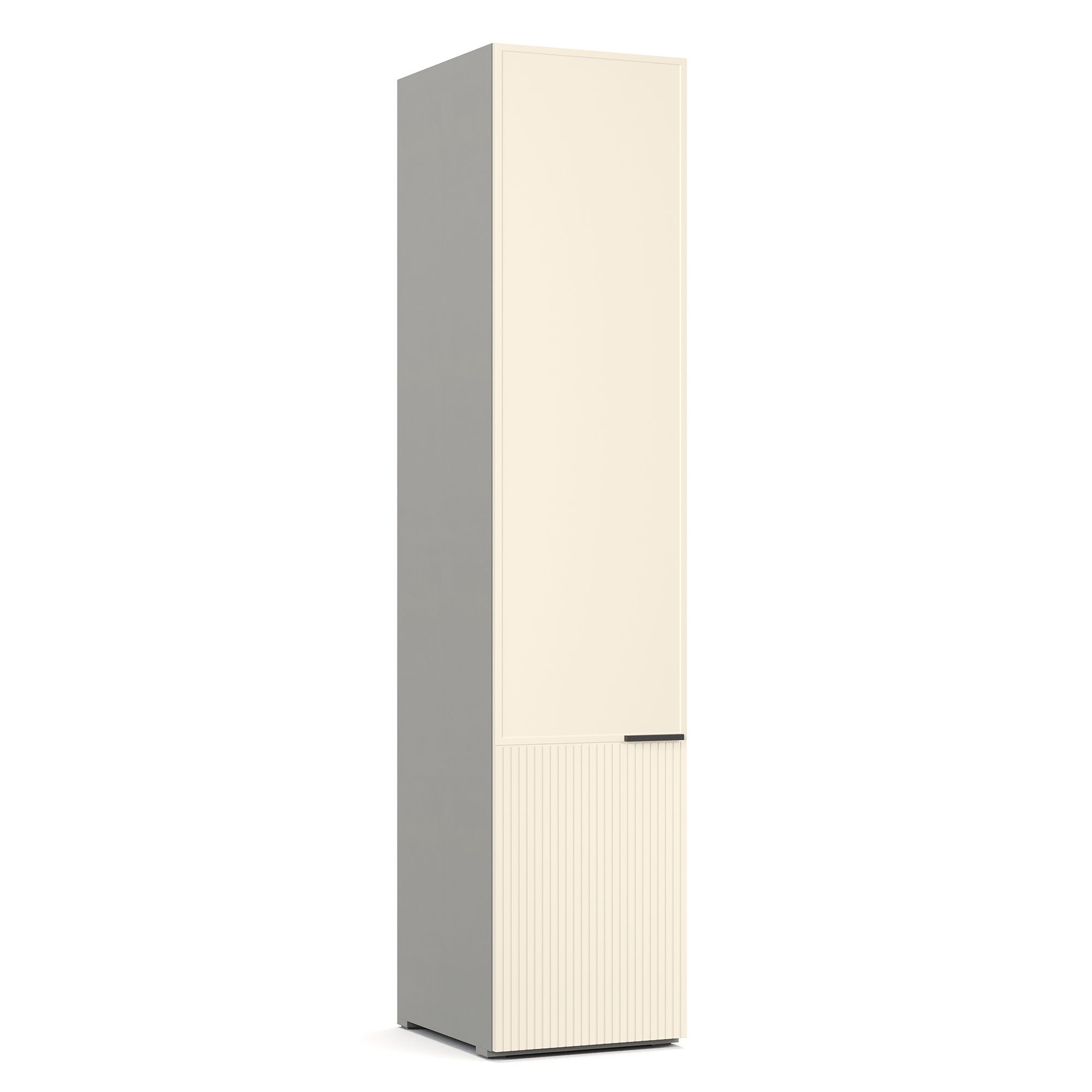 Внутреннее наполнение однодверного шкафа NAPOLI представляет собой систему полок. Верхняя часть фасада декорирована тонкой рамкой, нижняя – вертикальной фрезеровкой. Корпус выполнен в текстуре Шенилл. Предусмотрены варианты с левым и правым открыванием фасада. ВАЖНО! При использовании в качестве отдельно стоящего модуля, завершающего элемента композиции или рядом с угловым шкафом обязательно оснащение боковыми стенками (заказываются отдельно). Эксплуатация без них дизайном не предусмотрена.