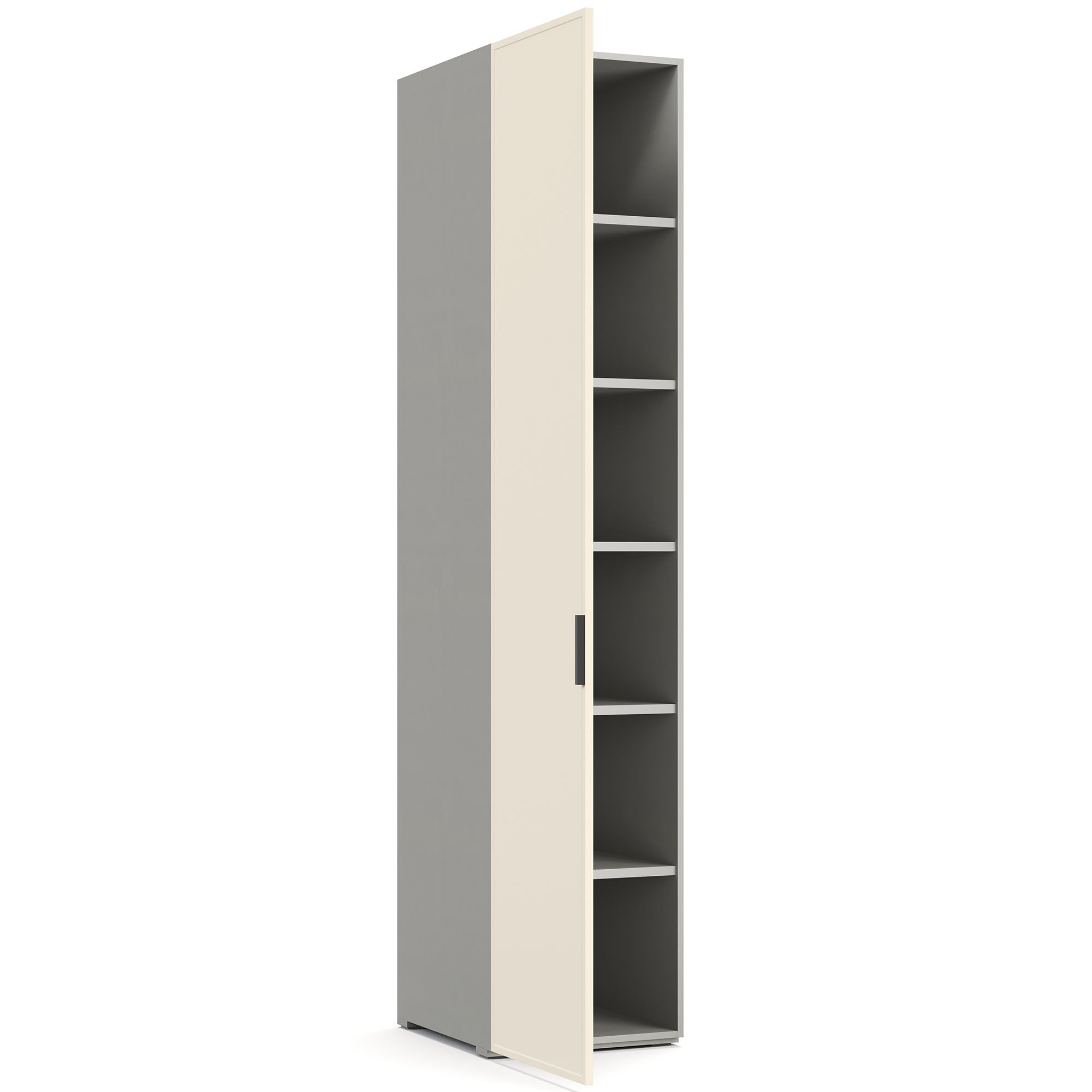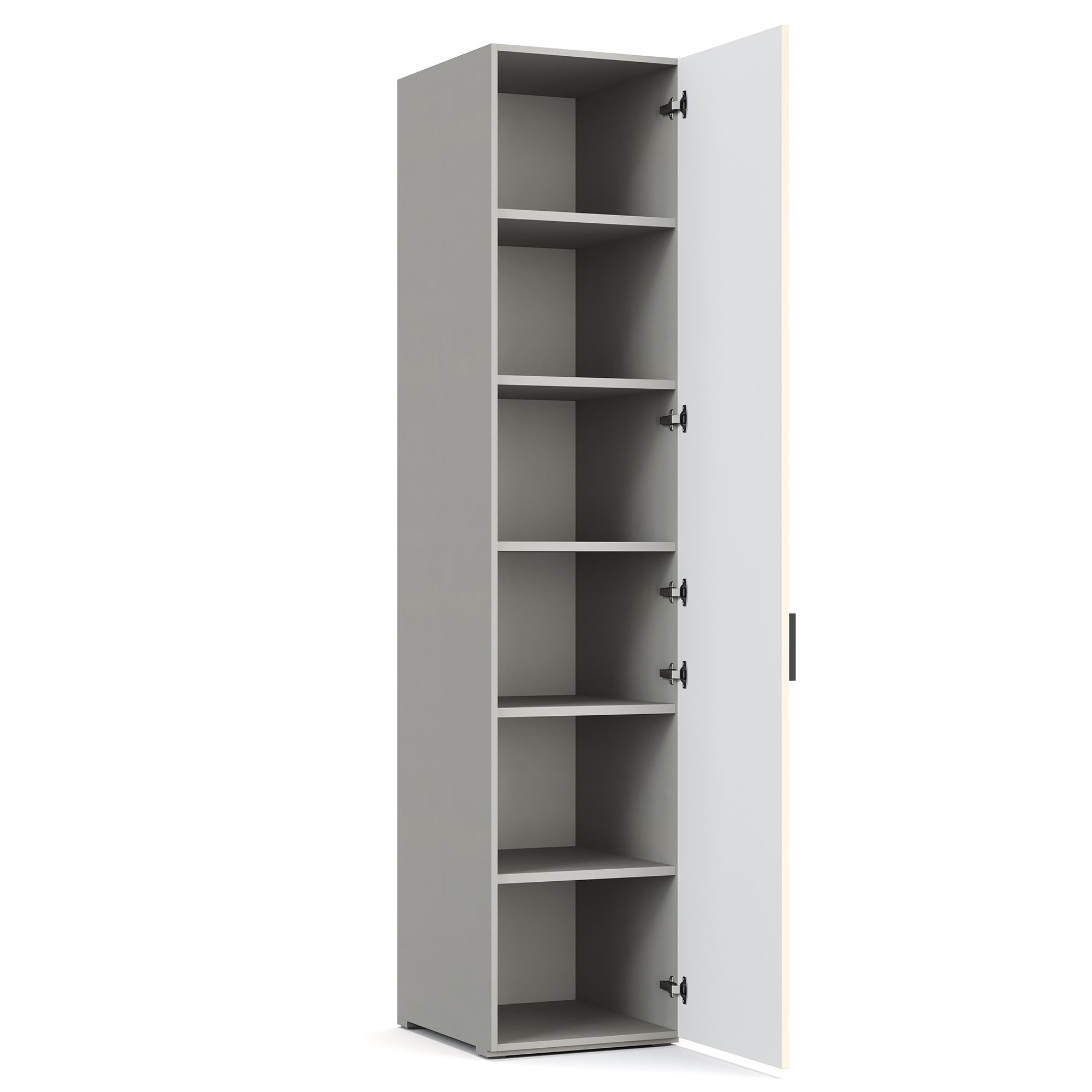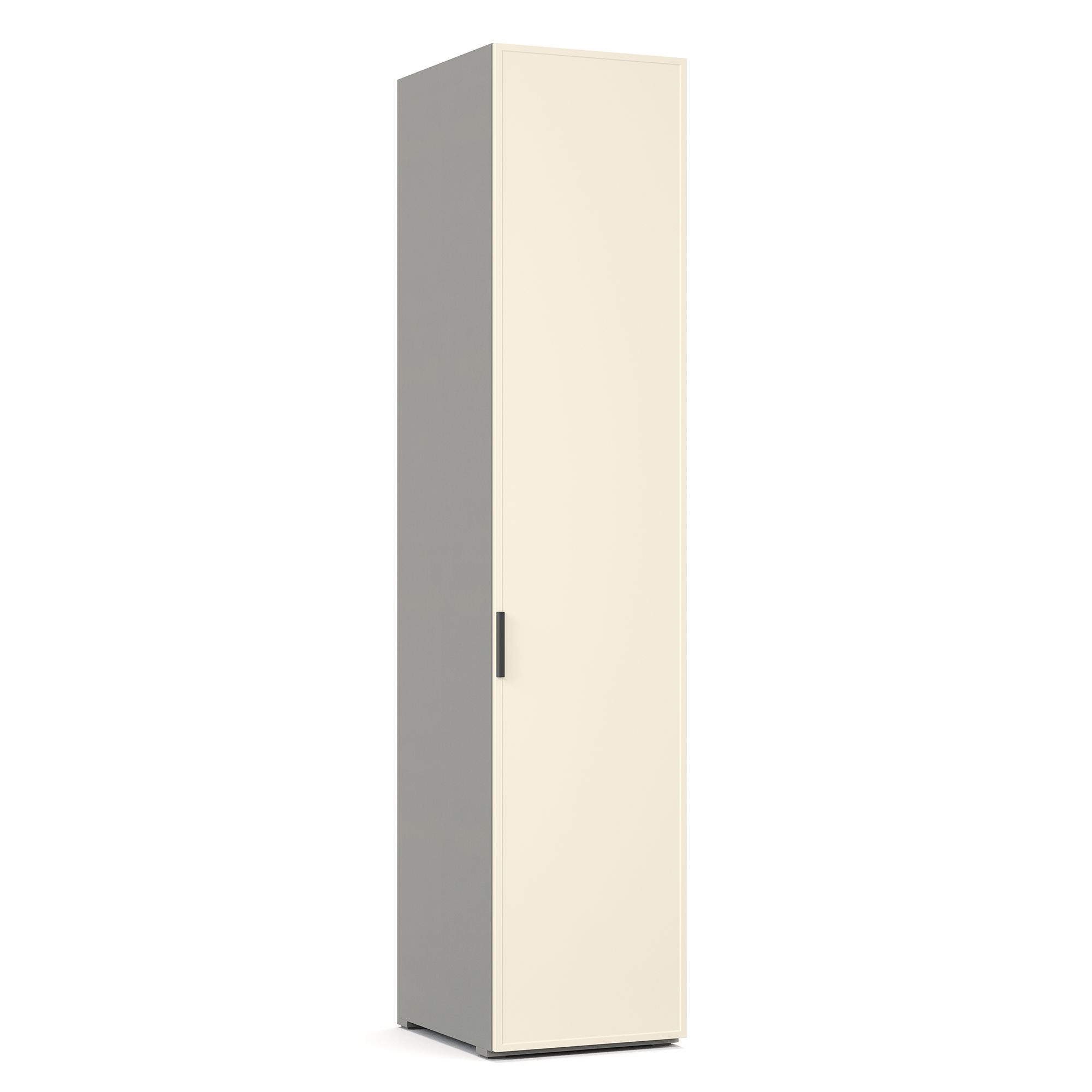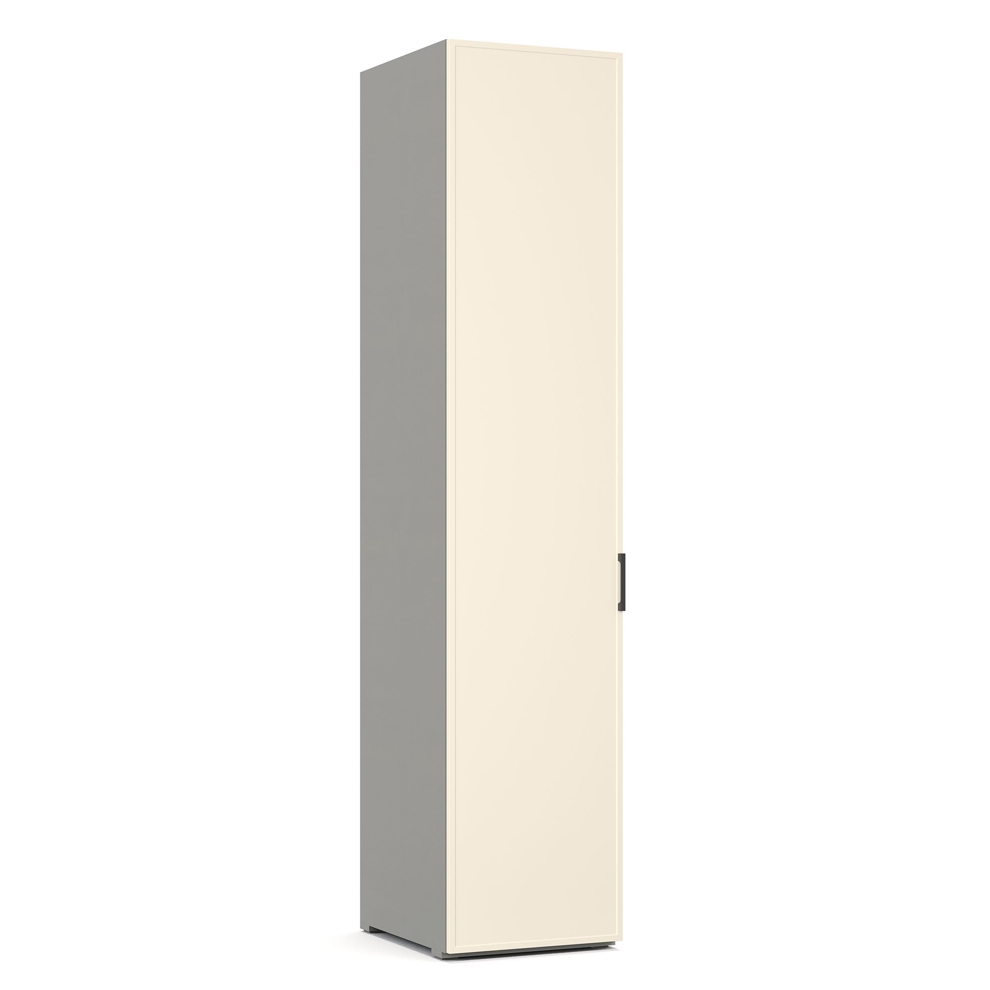 Внутреннее наполнение однодверного шкафа NAPOLI представляет собой систему полок. Фасад декорирован тонкой рамкой. Корпус шкафа выполнен в текстуре Шенилл. Возможно как левое, так и правое открывание фасада. ВАЖНО! При использовании в качестве отдельно стоящего модуля, завершающего элемента композиции или рядом с угловым шкафом обязательно оснащение боковыми стенками (заказываются отдельно). Эксплуатация без них дизайном не предусмотрена.