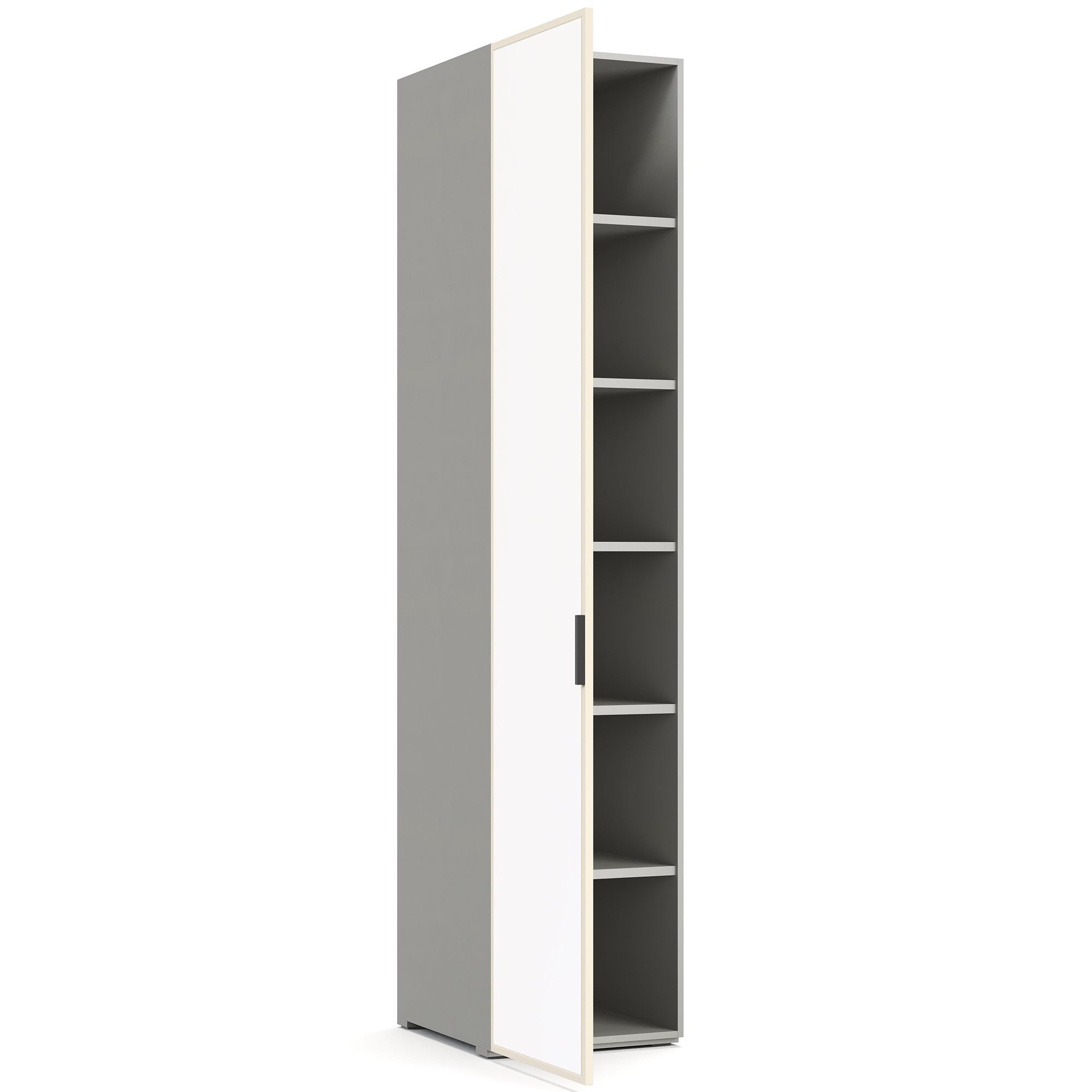 Внутреннее наполнение однодверного шкафа NAPOLI с зеркальным фасадом представляет собой систему полок. Корпус шкафа выполнен в текстуре Шенилл. Возможно как левое, так и правое открывание фасада. ВАЖНО! При использовании в качестве отдельно стоящего модуля, завершающего элемента композиции или рядом с угловым шкафом обязательно оснащение боковыми стенками (заказываются отдельно). Эксплуатация без них дизайном не предусмотрена.