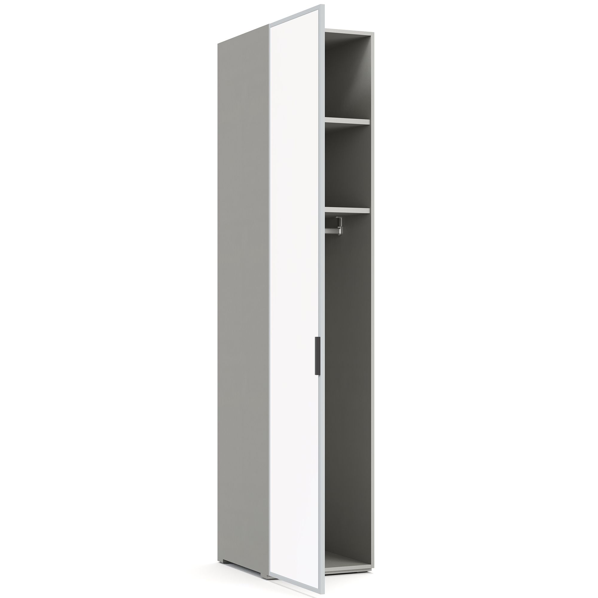 Внутреннее наполнение однодверного шкафа NAPOLI с зеркальным фасадом представляет собой представляет собой систему из двух полок, к нижней из которых крепится штанга для вешалок. Корпус шкафа выполнен в текстуре Шенилл. Возможно как левое, так и правое открывание фасада. ВАЖНО! При использовании в качестве отдельно стоящего модуля, завершающего элемента композиции или рядом с угловым шкафом обязательно оснащение боковыми стенками (заказываются отдельно). Эксплуатация без них дизайном не предусмотрена.