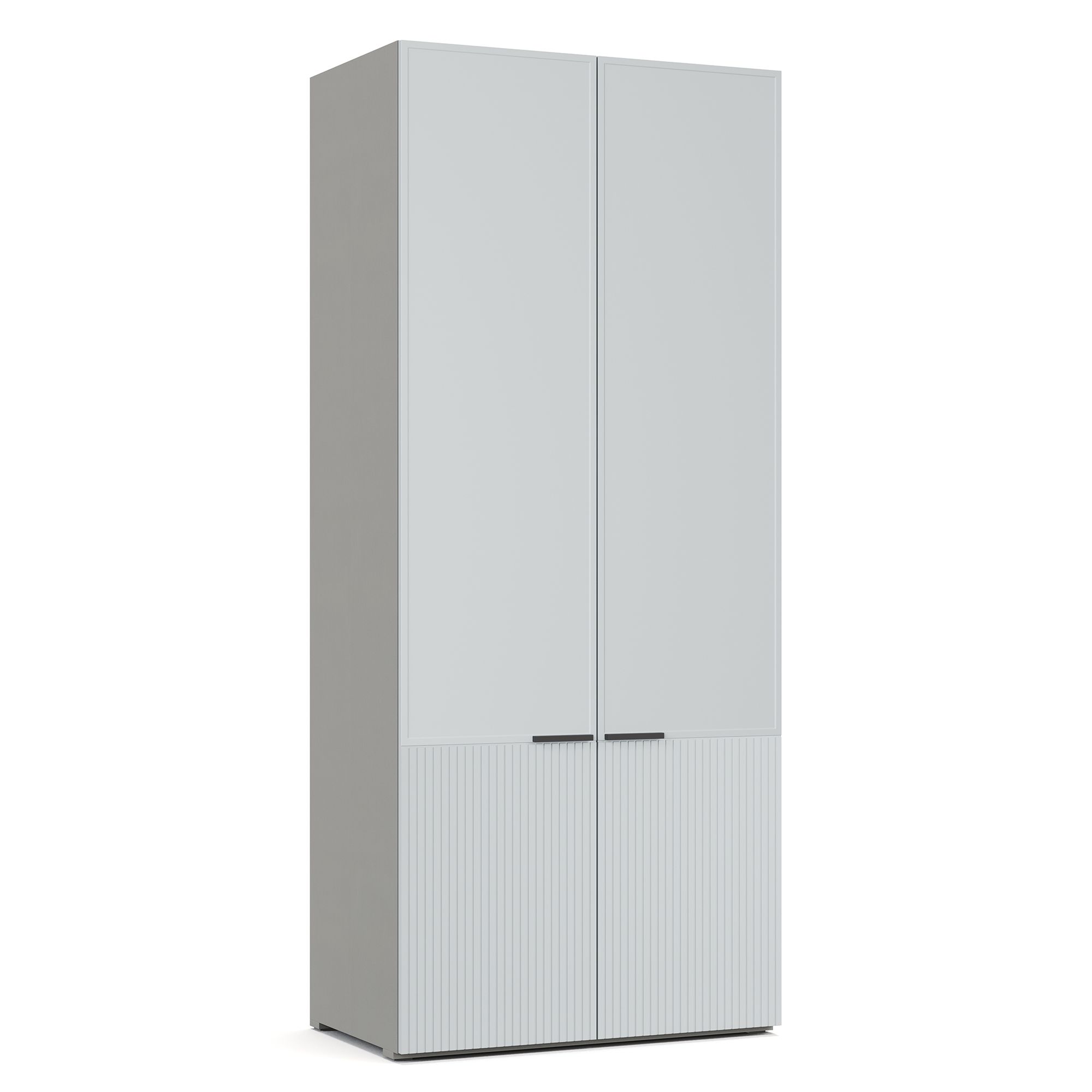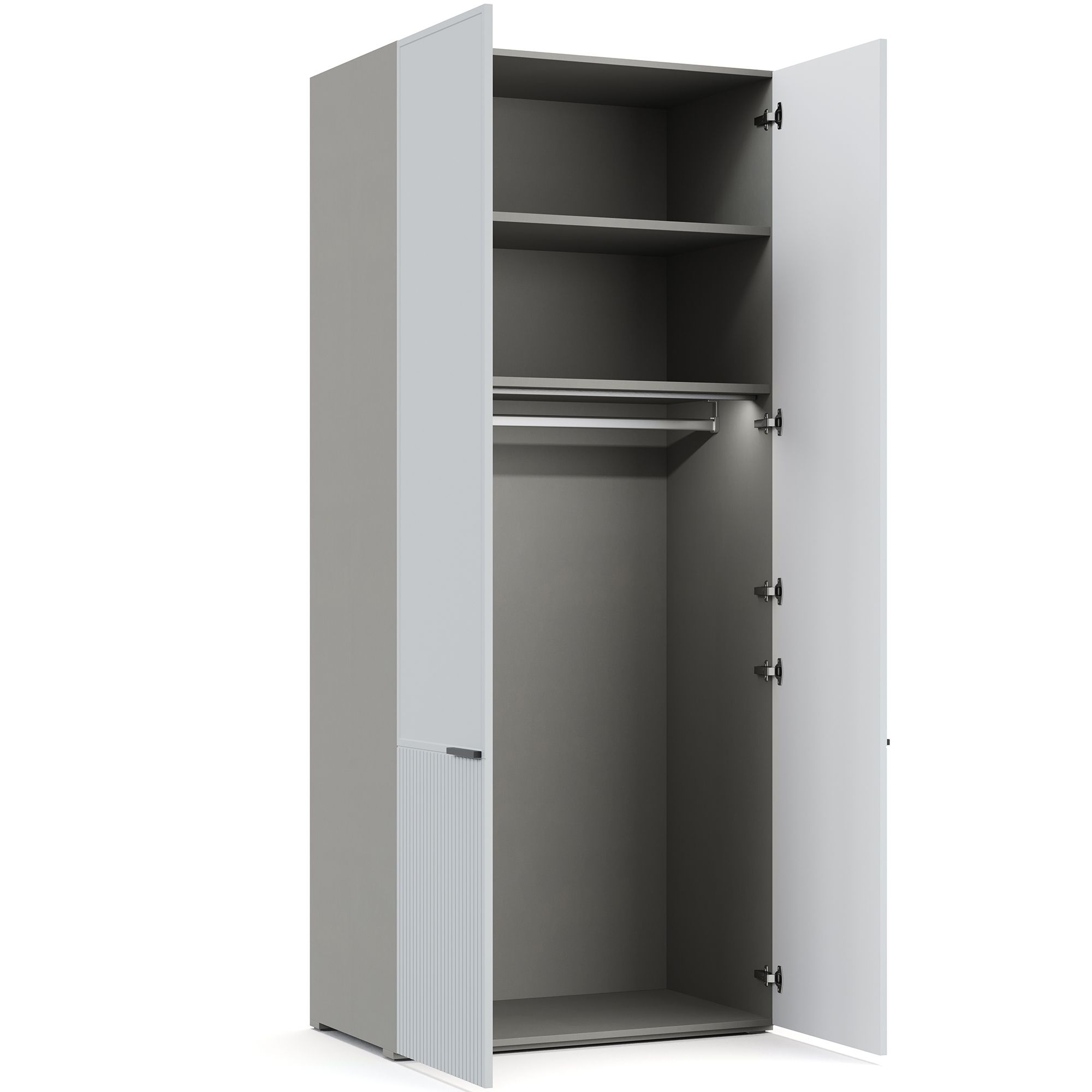 Внутреннее наполнение двухдверного шкафа NAPOLI представляет собой систему из двух полок, к нижней из которых крепится штанга для вешалок. Верхняя часть фасадов декорирована тонкой рамкой, нижняя – вертикальной фрезеровкой. Корпус модели выполнен в текстуре Шенилл. Шкаф оборудован встроенным светильником (система включения заказывается отдельно). ВАЖНО! При использовании в качестве отдельно стоящего модуля, завершающего элемента композиции или рядом с угловым шкафом обязательно оснащение боковыми стенками (заказываются отдельно). Эксплуатация без них дизайном не предусмотрена.