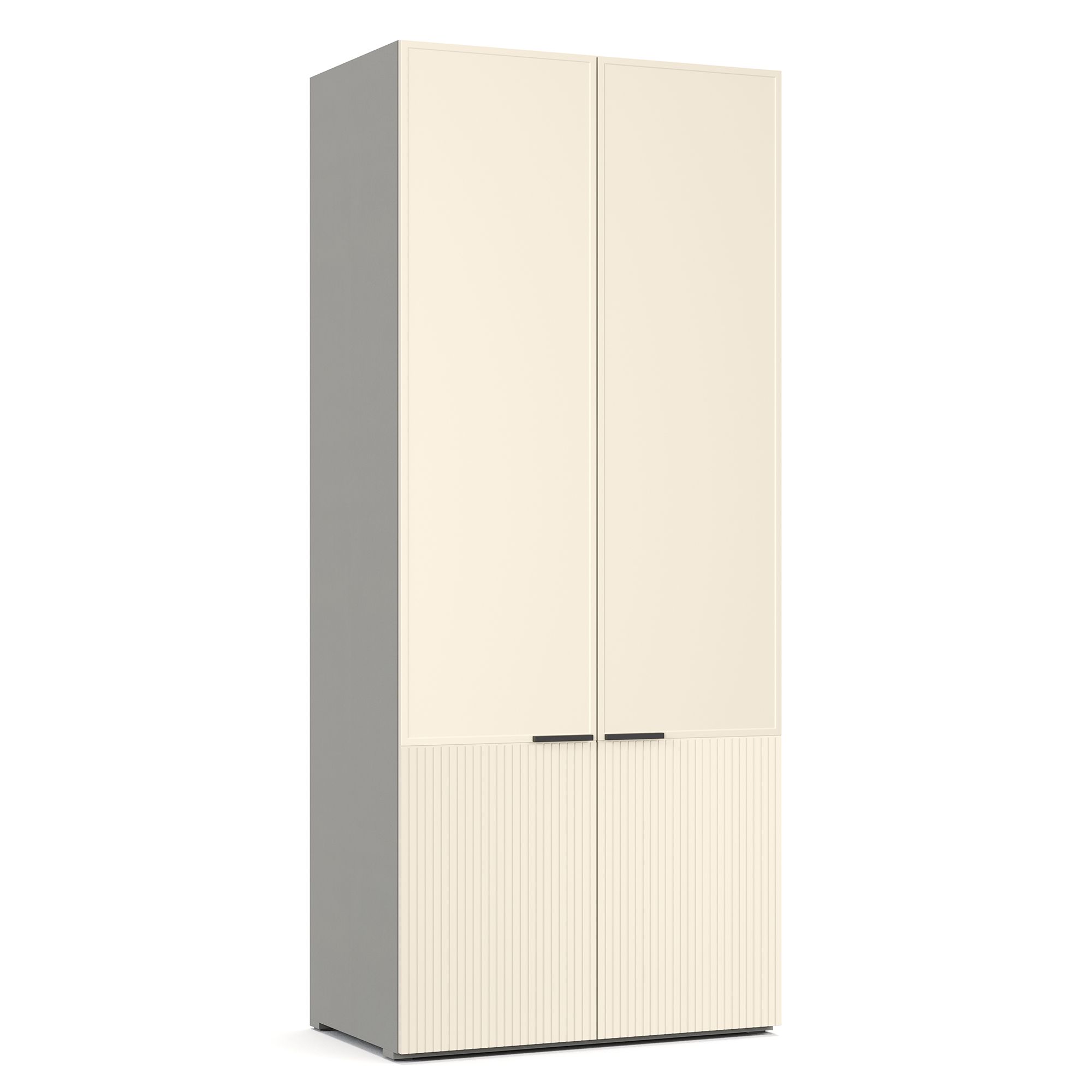 Внутреннее наполнение двухдверного шкафа NAPOLI представляет собой систему из двух полок, к нижней из которых крепится штанга для вешалок. Верхняя часть фасадов декорирована тонкой рамкой, нижняя – вертикальной фрезеровкой. Корпус модели выполнен в текстуре Шенилл. Шкаф оборудован встроенным светильником (система включения заказывается отдельно). ВАЖНО! При использовании в качестве отдельно стоящего модуля, завершающего элемента композиции или рядом с угловым шкафом обязательно оснащение боковыми стенками (заказываются отдельно). Эксплуатация без них дизайном не предусмотрена.