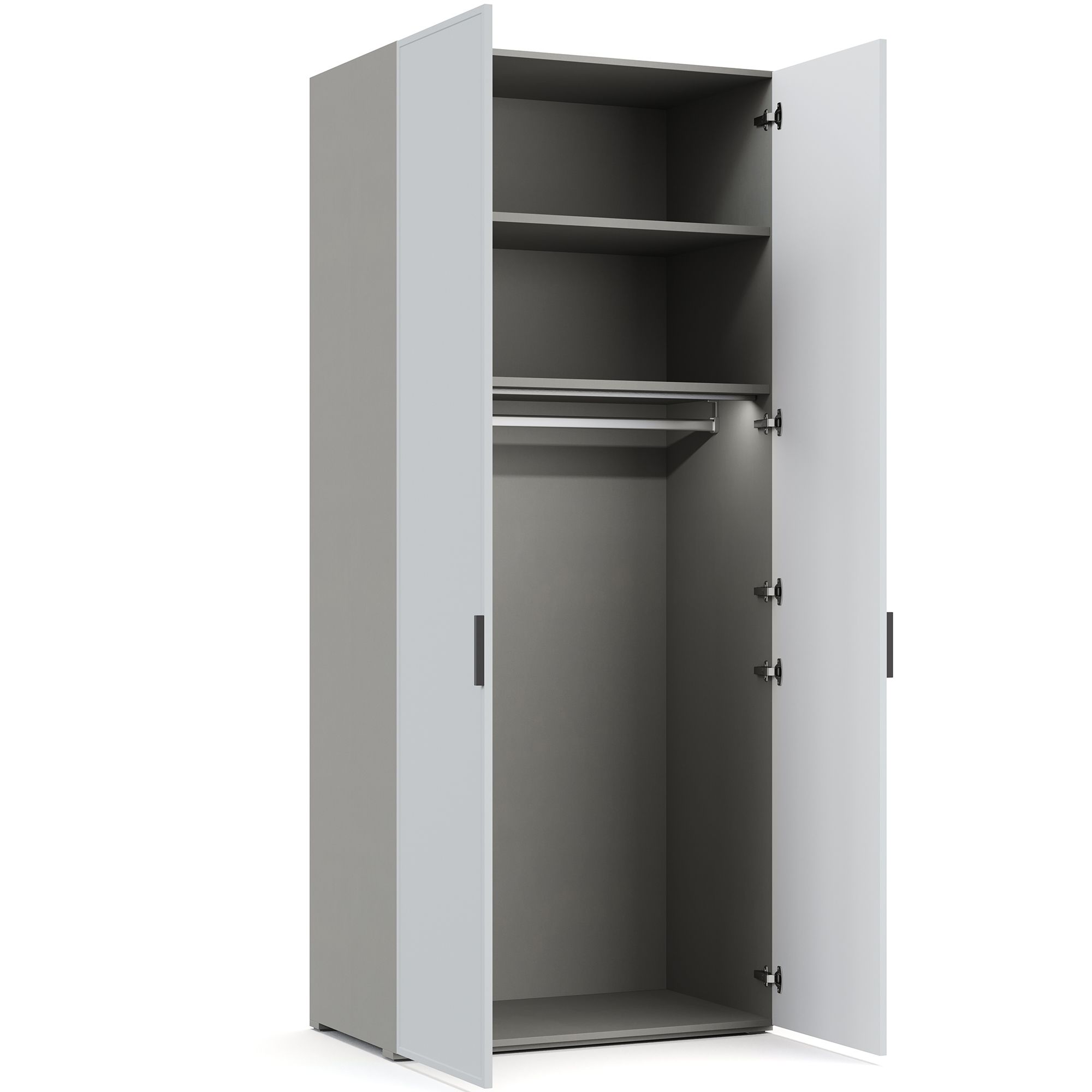 Внутреннее наполнение двухдверного шкафа NAPOLI представляет собой систему из двух полок, к нижней из которых крепится штанга для вешалок. Фасады декорированы тонкой рамкой. Корпус модели выполнен в текстуре Шенилл. Шкаф оборудован встроенным светильником (система включения заказывается отдельно). ВАЖНО! При использовании в качестве отдельно стоящего модуля, завершающего элемента композиции или рядом с угловым шкафом обязательно оснащение боковыми стенками (заказываются отдельно). Эксплуатация без них дизайном не предусмотрена.