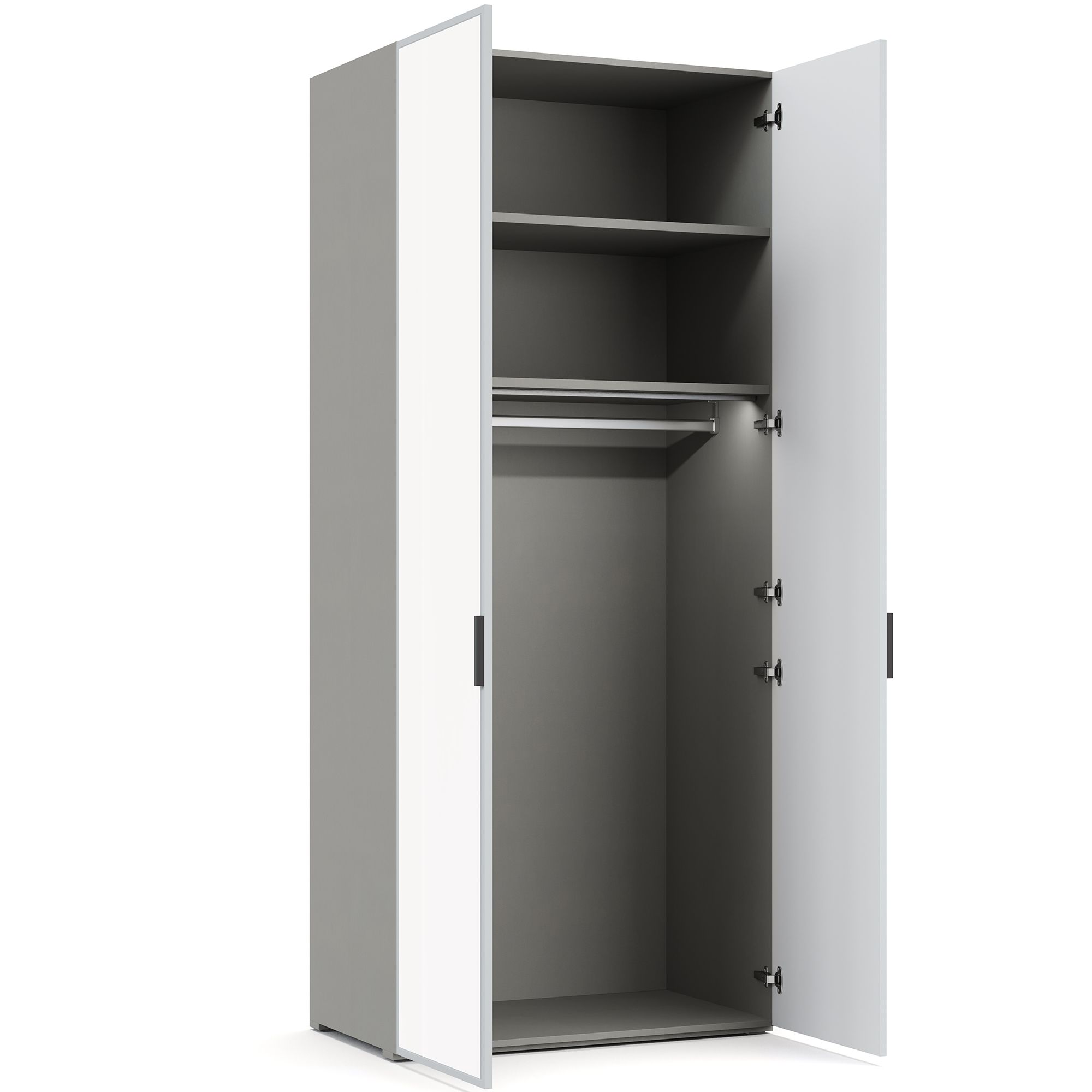 Внутреннее наполнение двухдверного шкафа NAPOLI с зеркальными фасадами представляет собой систему из двух полок, к нижней из которых крепится штанга для вешалок. Корпус модели выполнен в текстуре Шенилл. Шкаф оборудован встроенным светильником (система включения заказывается отдельно). ВАЖНО! При использовании в качестве отдельно стоящего модуля, завершающего элемента композиции или рядом с угловым шкафом обязательно оснащение боковыми стенками (заказываются отдельно). Эксплуатация без них дизайном не предусмотрена.