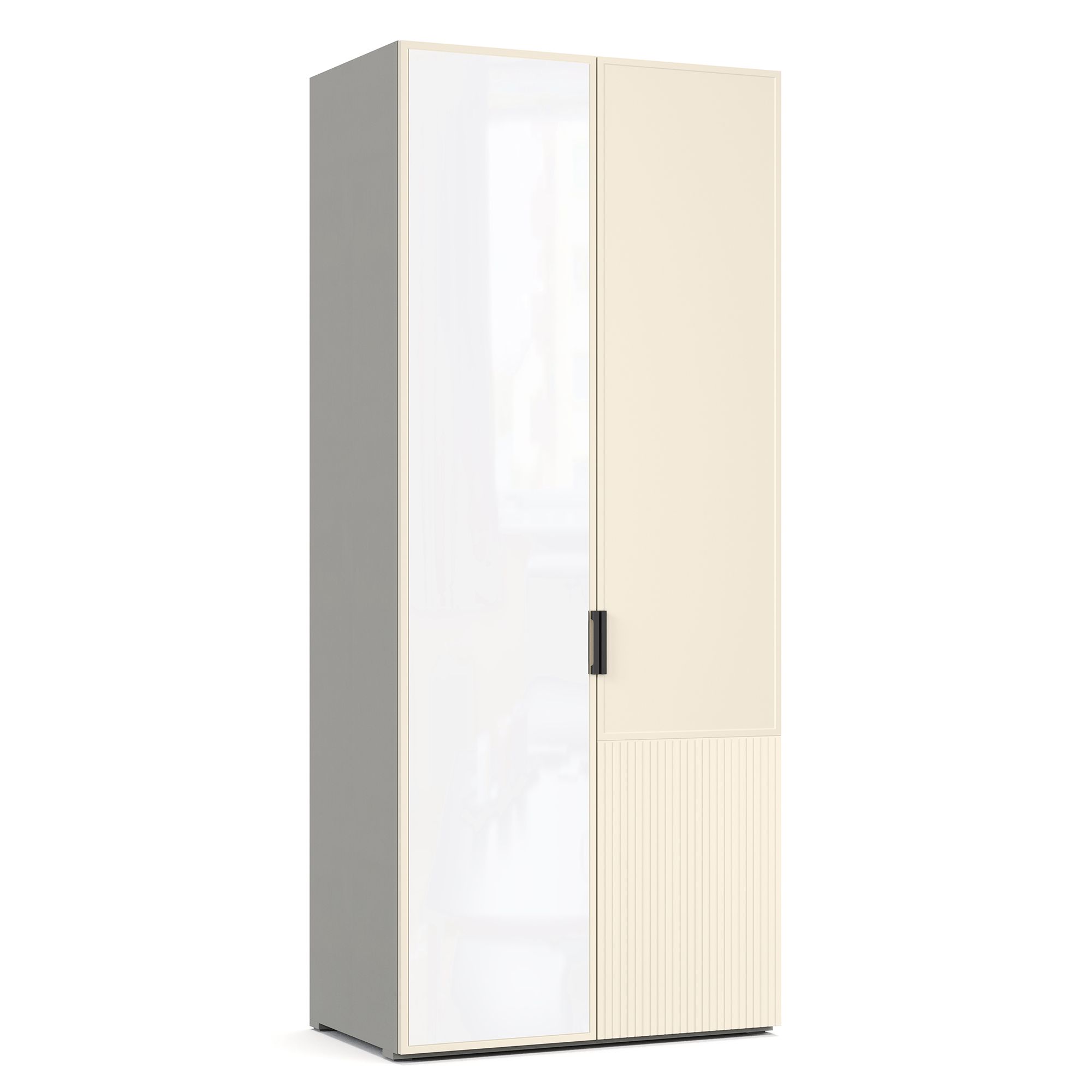 Внутреннее наполнение двухдверного шкафа NAPOLI представляет собой систему из двух полок, к нижней из которых крепится штанга для вешалок. Верхняя часть одного из фасадов декорирована тонкой рамкой, нижняя – вертикальной фрезеровкой. Второй фасад представляет собой единое зеркальное полотно. Предусмотрены варианты с левым и правым размещением зеркала. Корпус выполнен в текстуре Шенилл. Шкаф оборудован встроенным светильником (система включения заказывается отдельно). ВАЖНО! При использовании в качестве отдельно стоящего модуля, завершающего элемента композиции или рядом с угловым шкафом обязательно оснащение боковыми стенками (заказываются отдельно). Эксплуатация без них дизайном не предусмотрена.