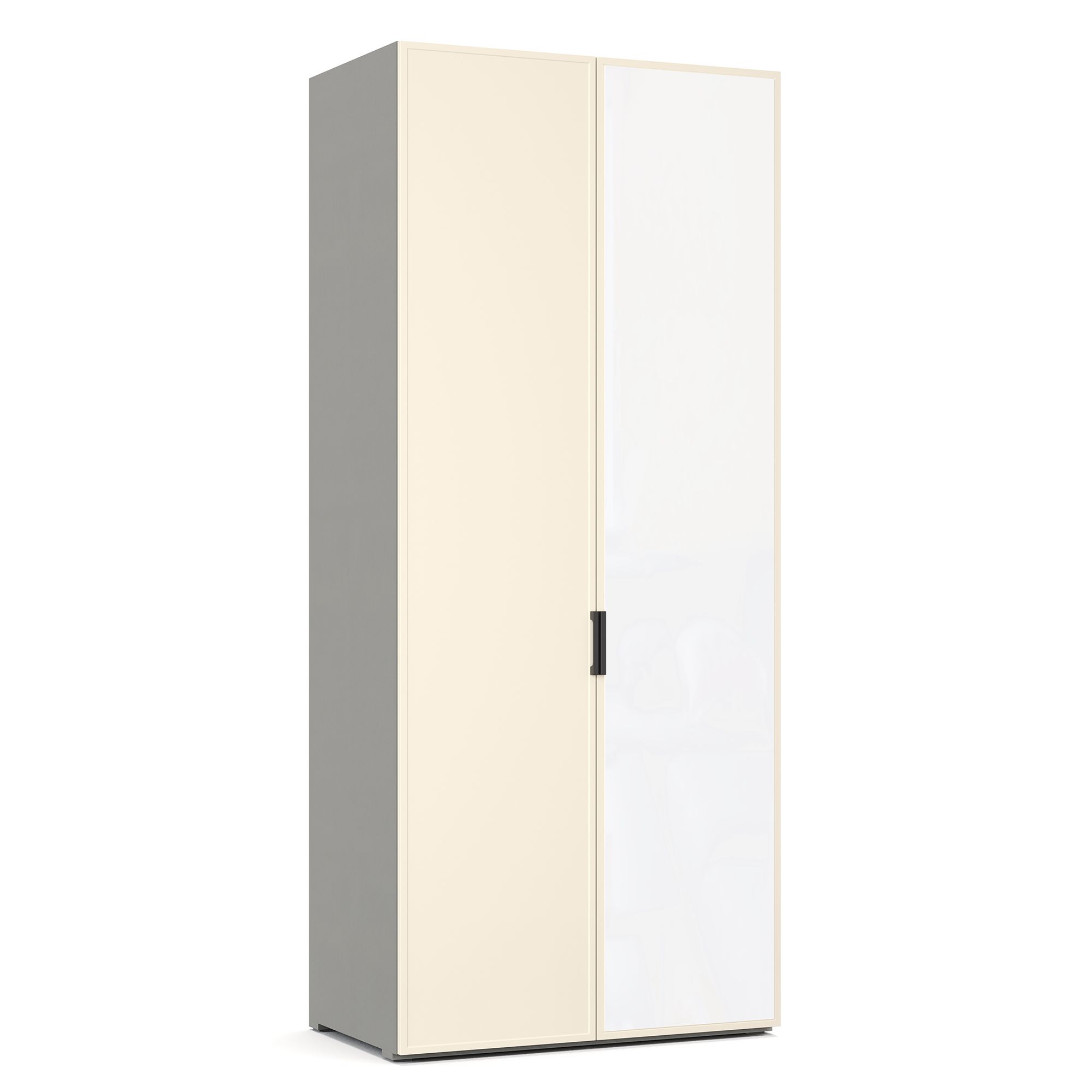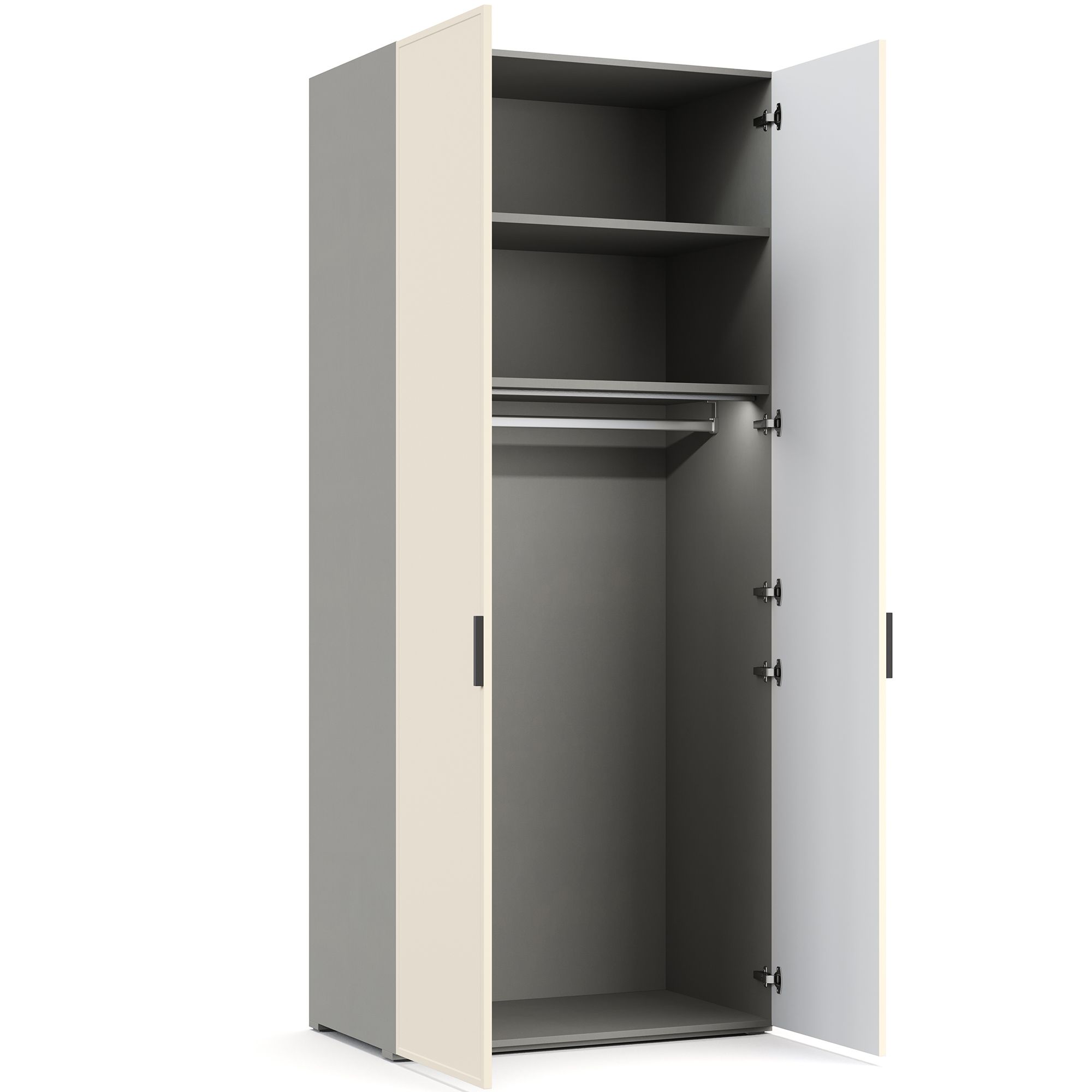 Внутреннее наполнение двухдверного шкафа NAPOLI представляет собой систему из двух полок, к нижней из которых крепится штанга для вешалок. Один из фасадов декорирован тонкой рамкой, второй представляет собой единое зеркальное полотно (возможно расположение зеркального фасада как справа, так и слева). Корпус выполнен в текстуре Шенилл. Шкаф оборудован встроенным светильником (система включения заказывается отдельно). ВАЖНО! При использовании в качестве отдельно стоящего модуля, завершающего элемента композиции или рядом с угловым шкафом обязательно оснащение боковыми стенками (заказываются отдельно). Эксплуатация без них дизайном не предусмотрена.