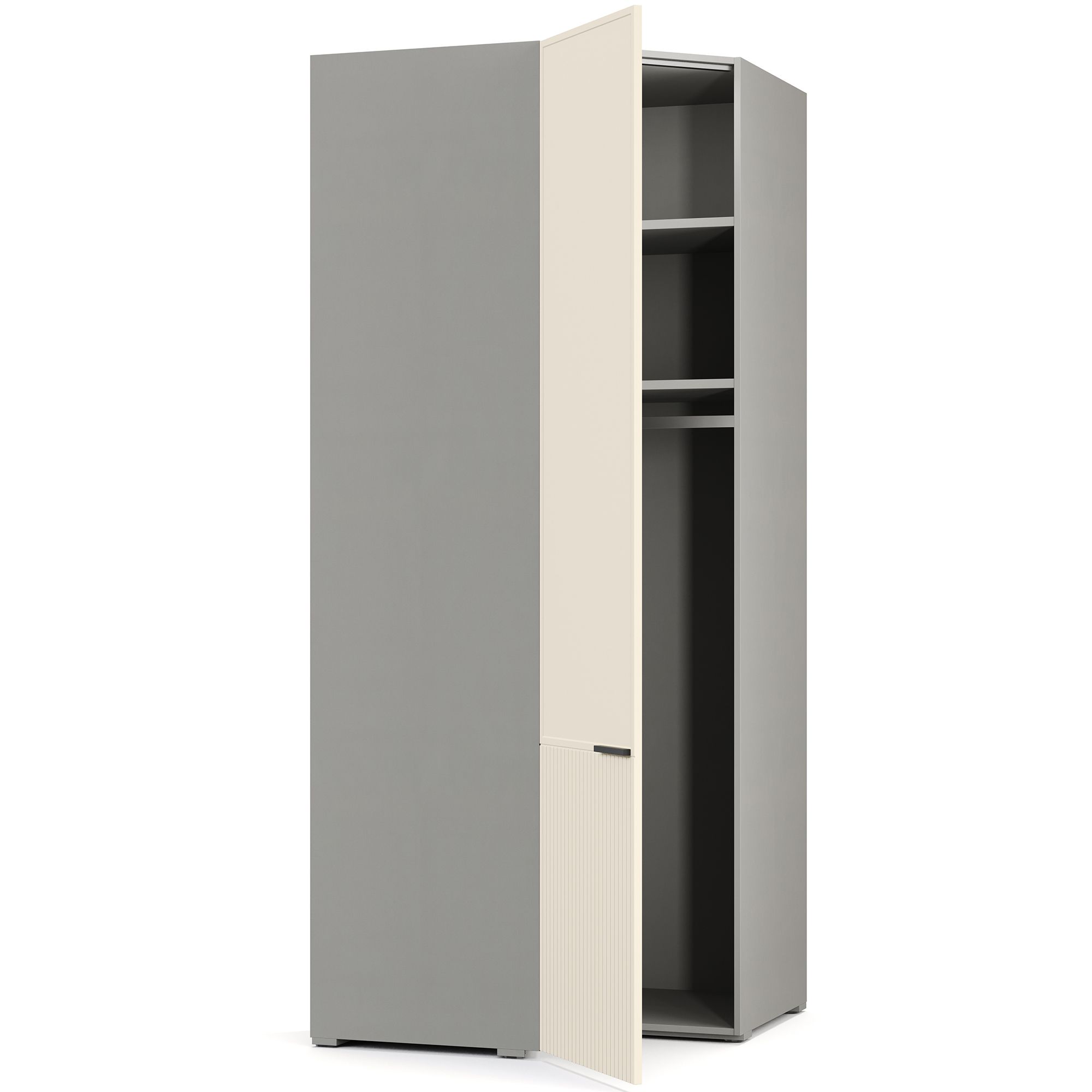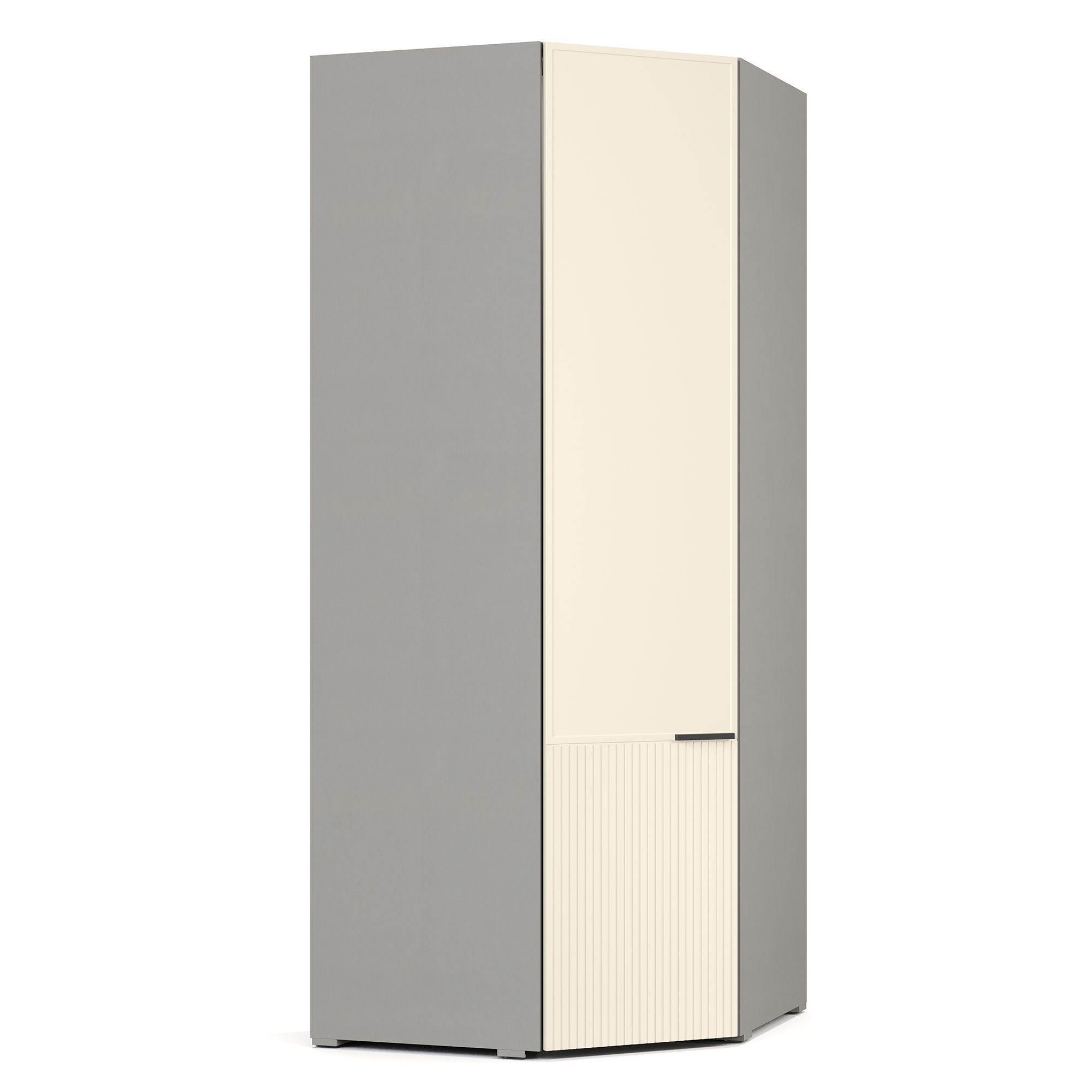 Внутреннее наполнение углового шкафа NAPOLI состоит из двух секций. Одна из них оборудована двумя полками (к нижней крепится штанга для вешалок), а вторая – системой из 5 полок. Верхняя часть фасада декорирована тонкой рамкой, нижняя – вертикальной фрезеровкой. Корпус выполнен в текстуре Шенилл. Шкаф оборудован встроенным светильником (система включения заказывается отдельно). Предусмотрены варианты с левым и правым открыванием фасада. ВАЖНО! Боковые стенки для шкафа заказываются отдельно. Эксплуатация без них дизайном не предусмотрена.