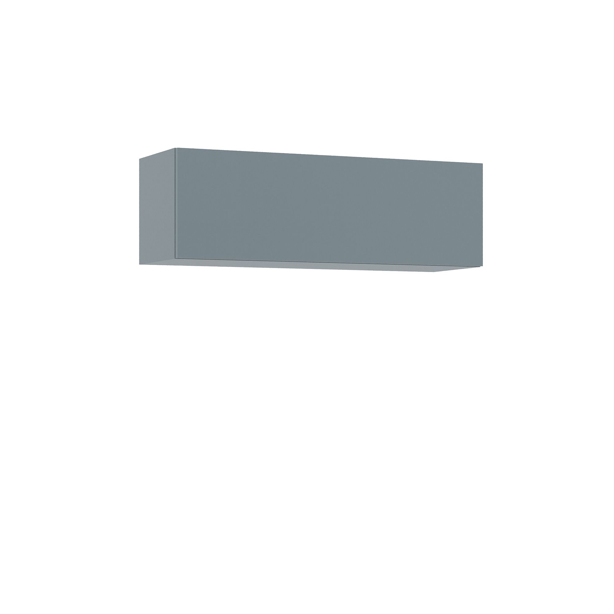 Навесной шкаф TERAMO с откидным фасадом в монохромной отделке оснащен системой открывания K-Push (открывание вверх). Элемент может использоваться как самостоятельно, так и в качестве антресоли в комбинации с напольными шкафами. Максимальная распределенная нагрузка при навешивании – 15 кг.