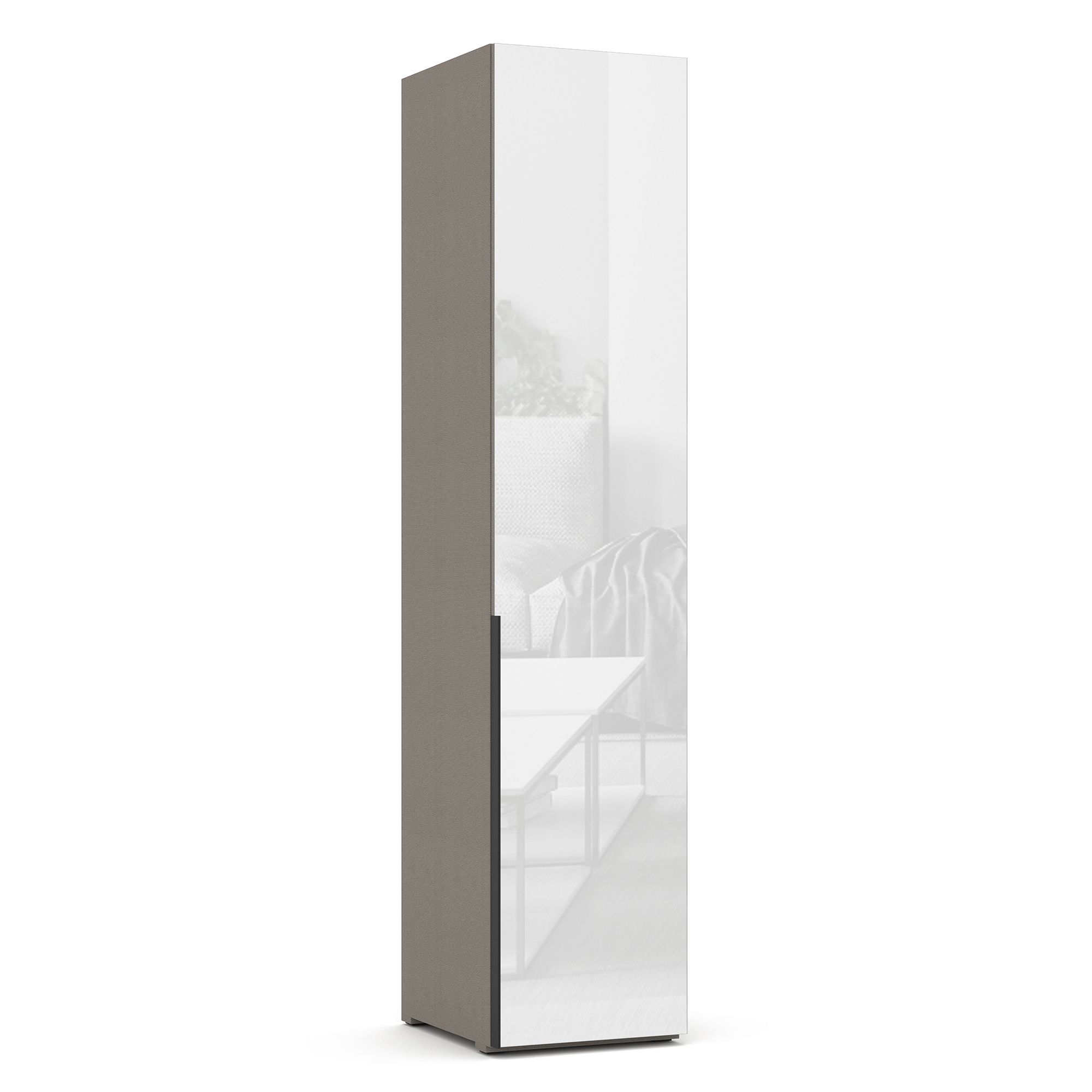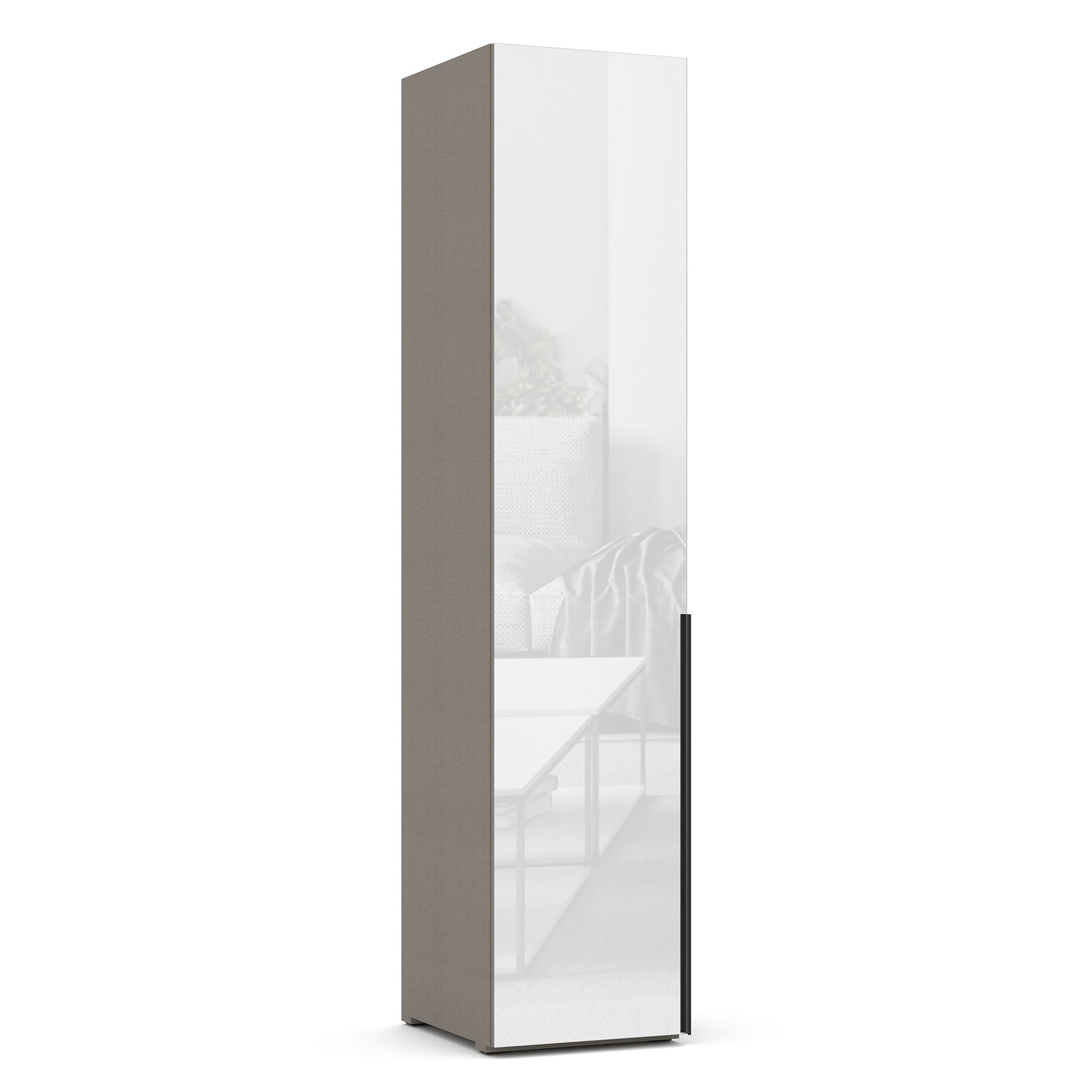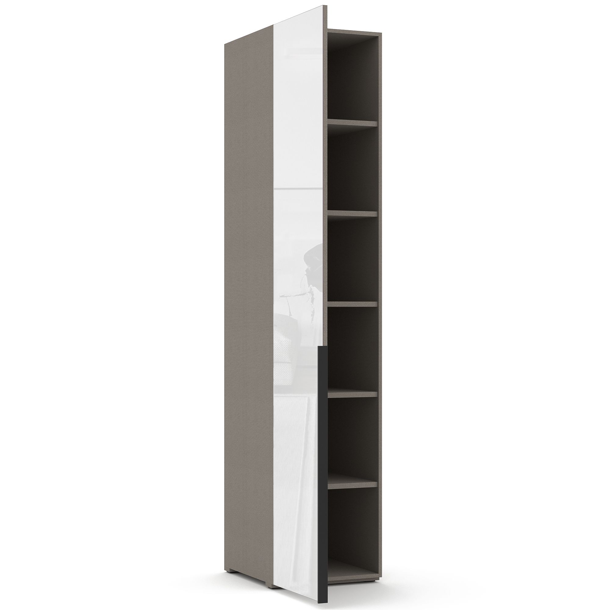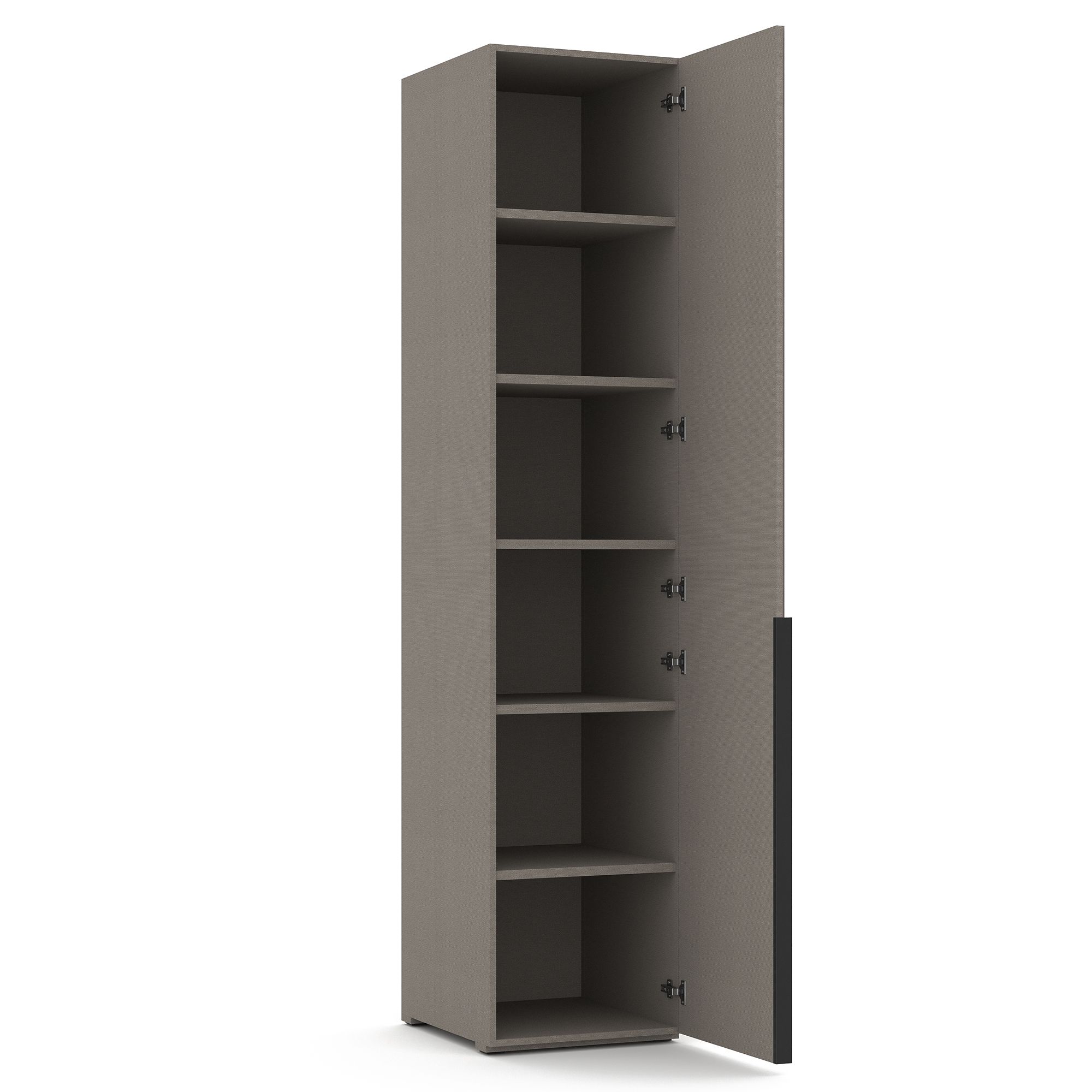 Внутреннее наполнение однодверного шкафа TERAMO с распашным зеркальным представляет собой систему полок из ЛДСП. Внешний и внутренний декор корпуса выполнен в текстуре Шенилл. Возможно как правое, так и левое открывание. ВАЖНО! Размеры изделия указаны с учетом фасада.