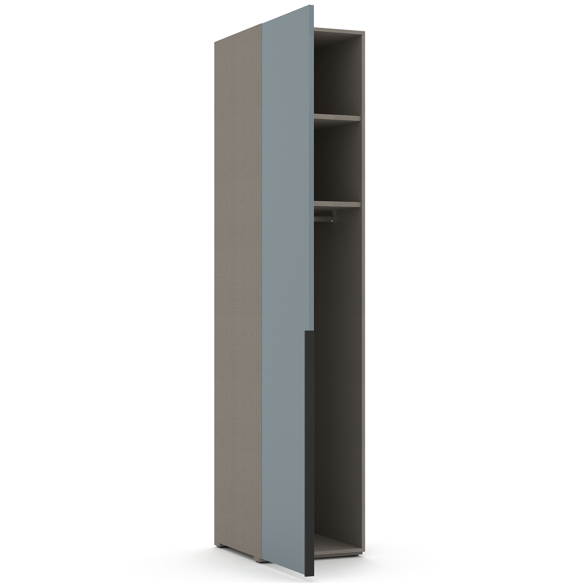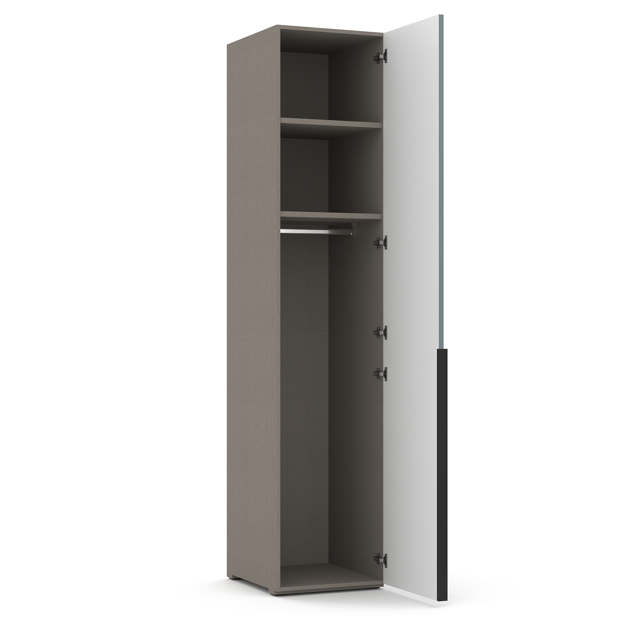 Внутреннее наполнение однодверного шкафа TERAMO с распашным фасадом в монохромной отделке представляет собой две полки, в нижней из которых крепится штанга для вешалок. Возможно как правое, так и левое открывание. ВАЖНО! Размеры изделия указаны с учетом фасада.