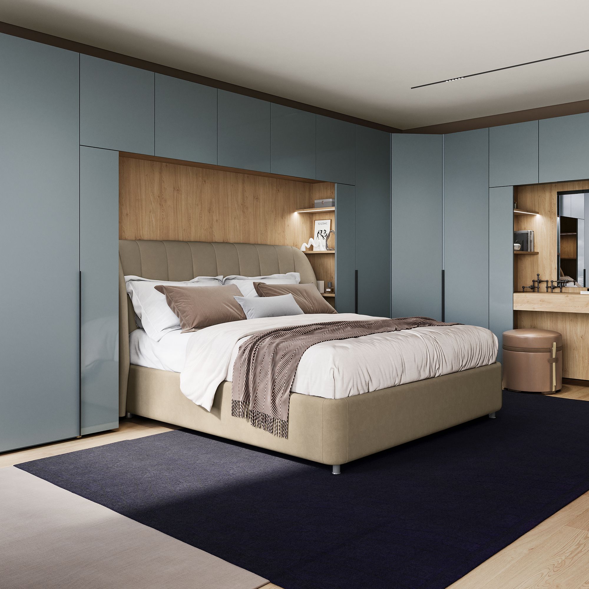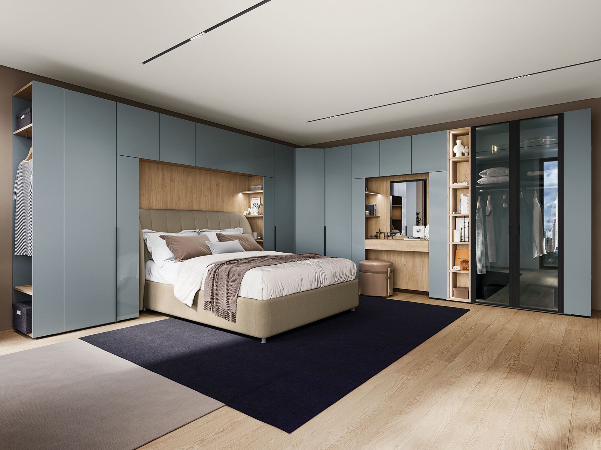 Коллекция включает мебель для спальни, гостиной, прихожей и рабочего кабинета, что обеспечивает возможность оформить квартиру в едином стиле или комбинировать в одном помещении элементы различных жилых зон. Дизайн с использованием модулей различной глубины, переходных модулей и антресолей позволяет осуществить плавный переход из одной ассортиментной группы в другую с сохранением преемственности и композиционной цельности.