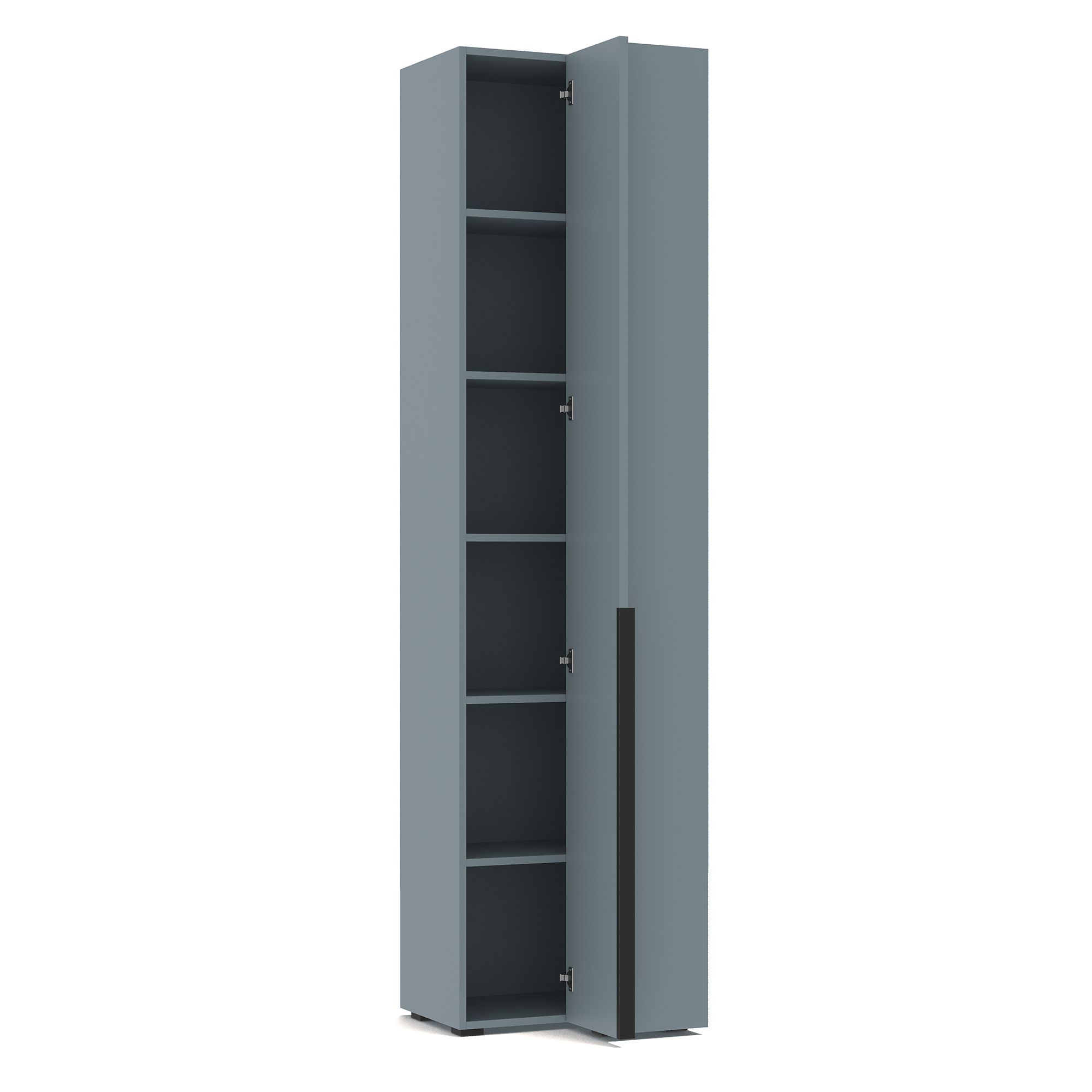 Конструкция переходного шкафа ТЕРАМО / TERAMO представляет собой комбинацию открытой секции с полками и системы закрытого хранения с монохромным фасадом. Возможно как правое, так и левое открывание. Элемент применяется для формирования систем хранения переменной глубины для перехода с размера 59,4 см на 40,4 см (например, создании интерьера, совмещающего функции спальни и гостиной, прихожей или рабочего кабинета). Для совпадения высоты изделий из разных групп используются антресольные навесные шкафы. Высота модулей регулируется опорами.