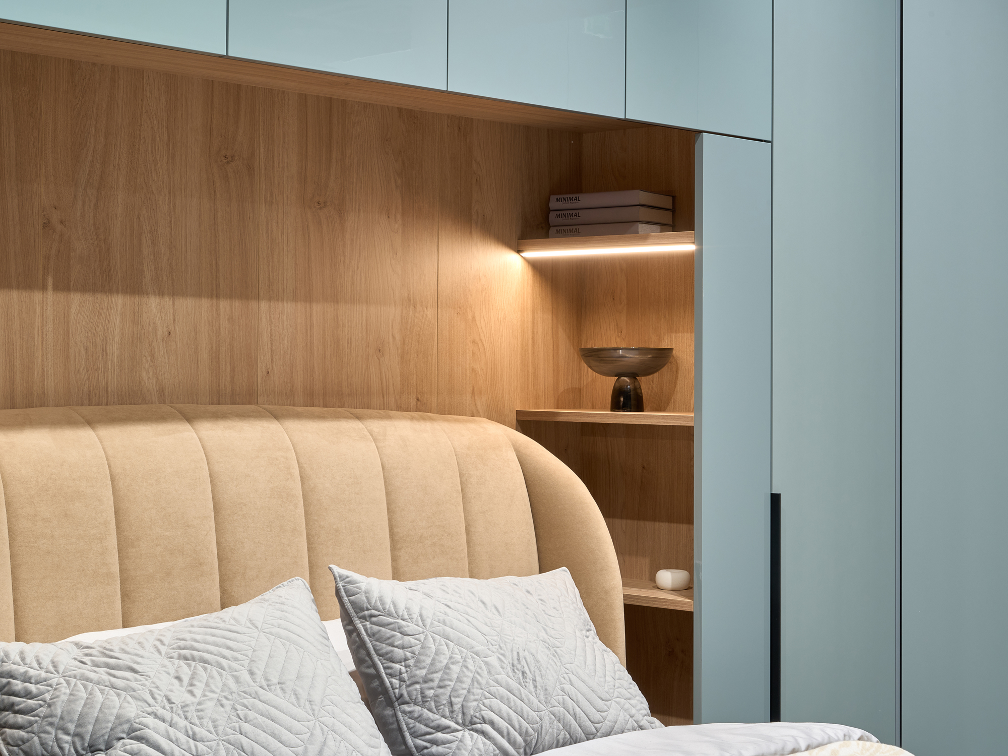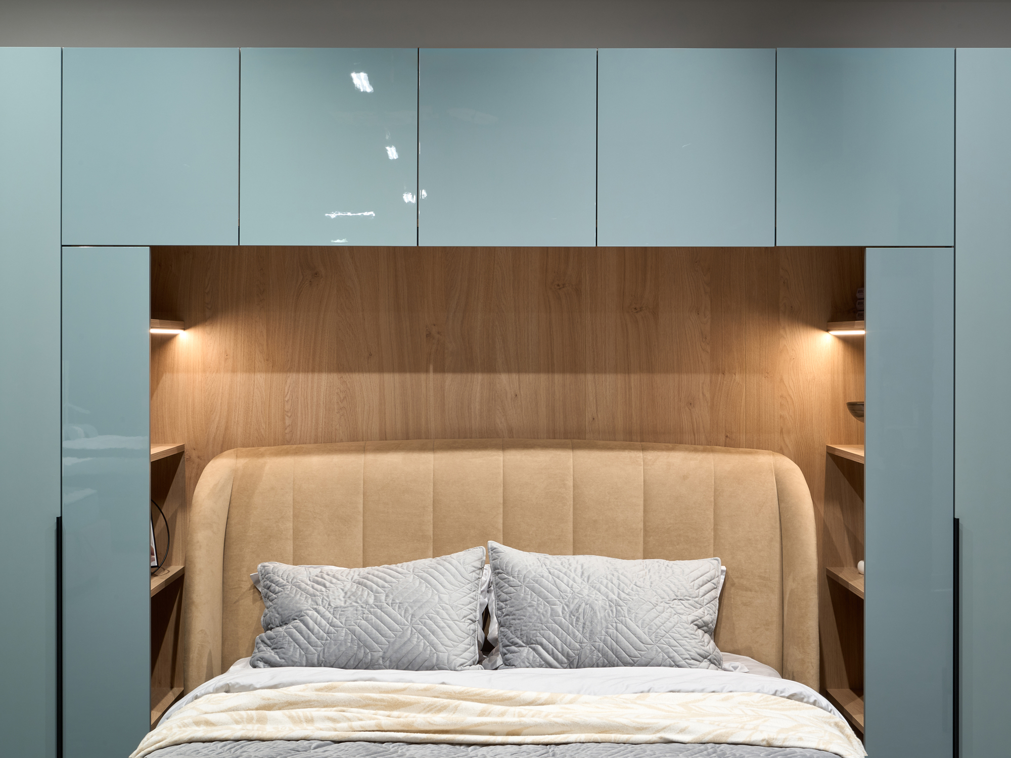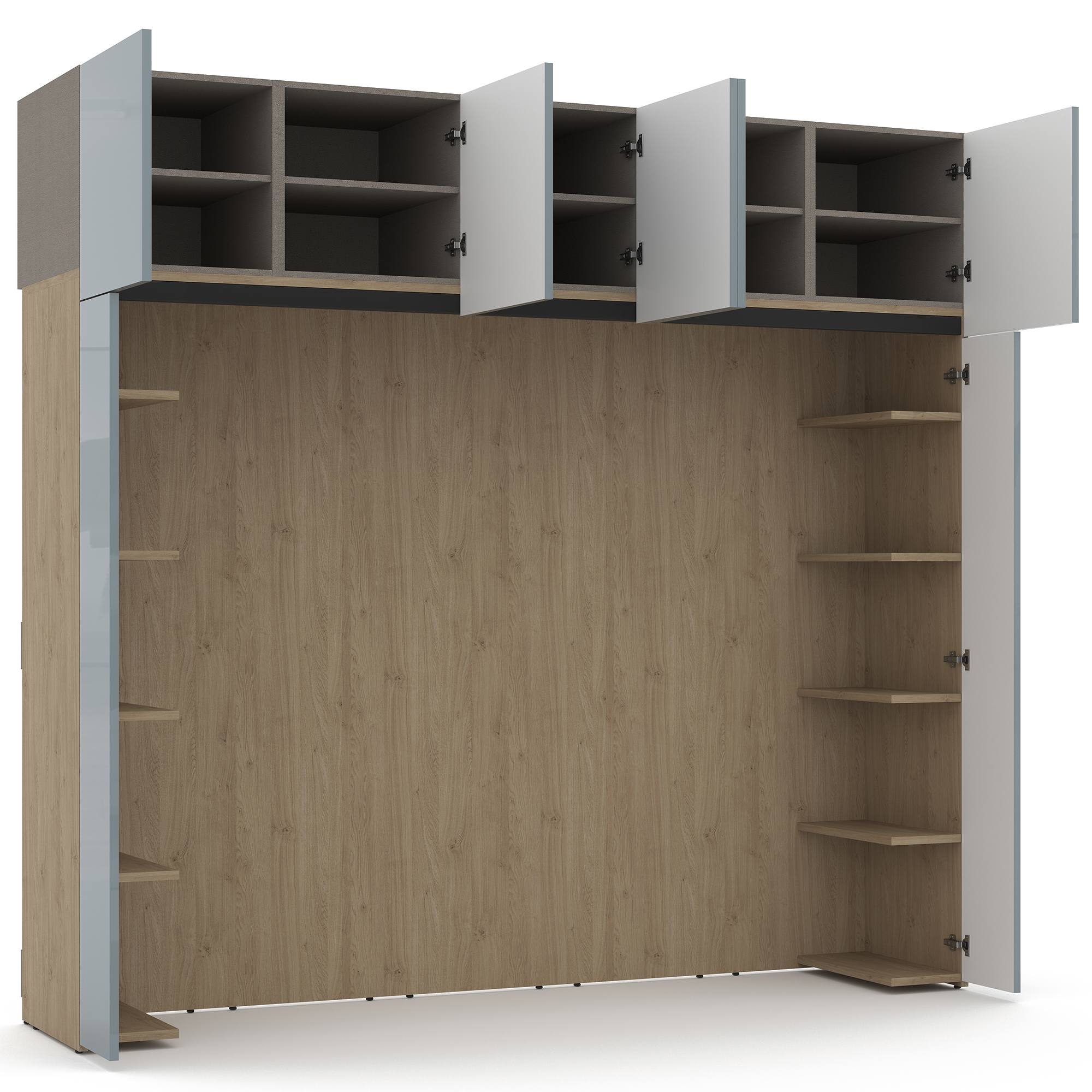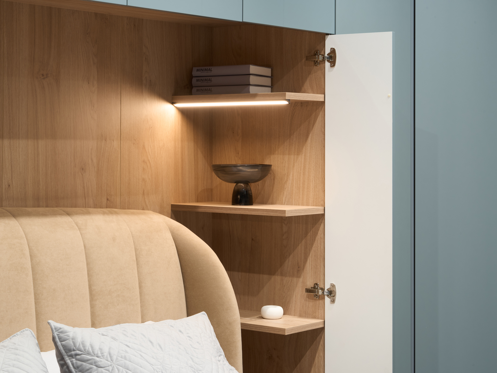 В ассортимент коллекции входят шкафы с нишей для установки кровати шириной до 200 см. При необходимости возможно оборудование ниши накладным светильником (система подсветки и включения-выключения заказываются отдельно).