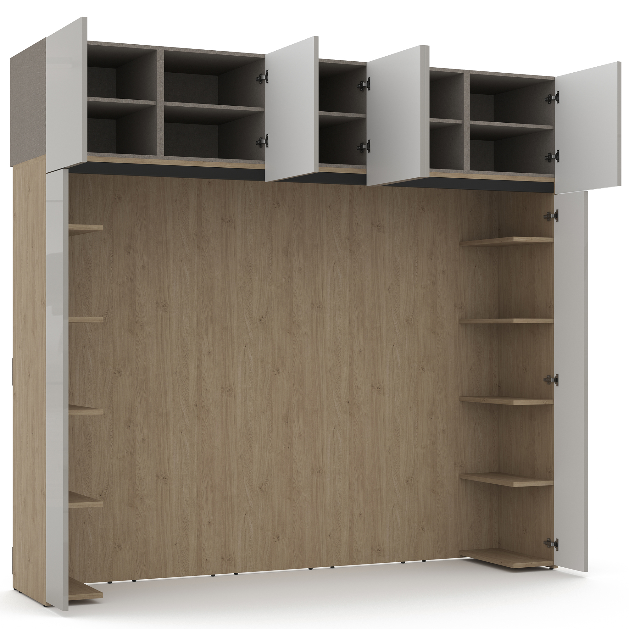 В ассортимент коллекции входят шкафы с нишей для установки кровати шириной до 200 см. При необходимости возможно оборудование ниши накладным светильником (система подсветки и включения-выключения заказываются отдельно).