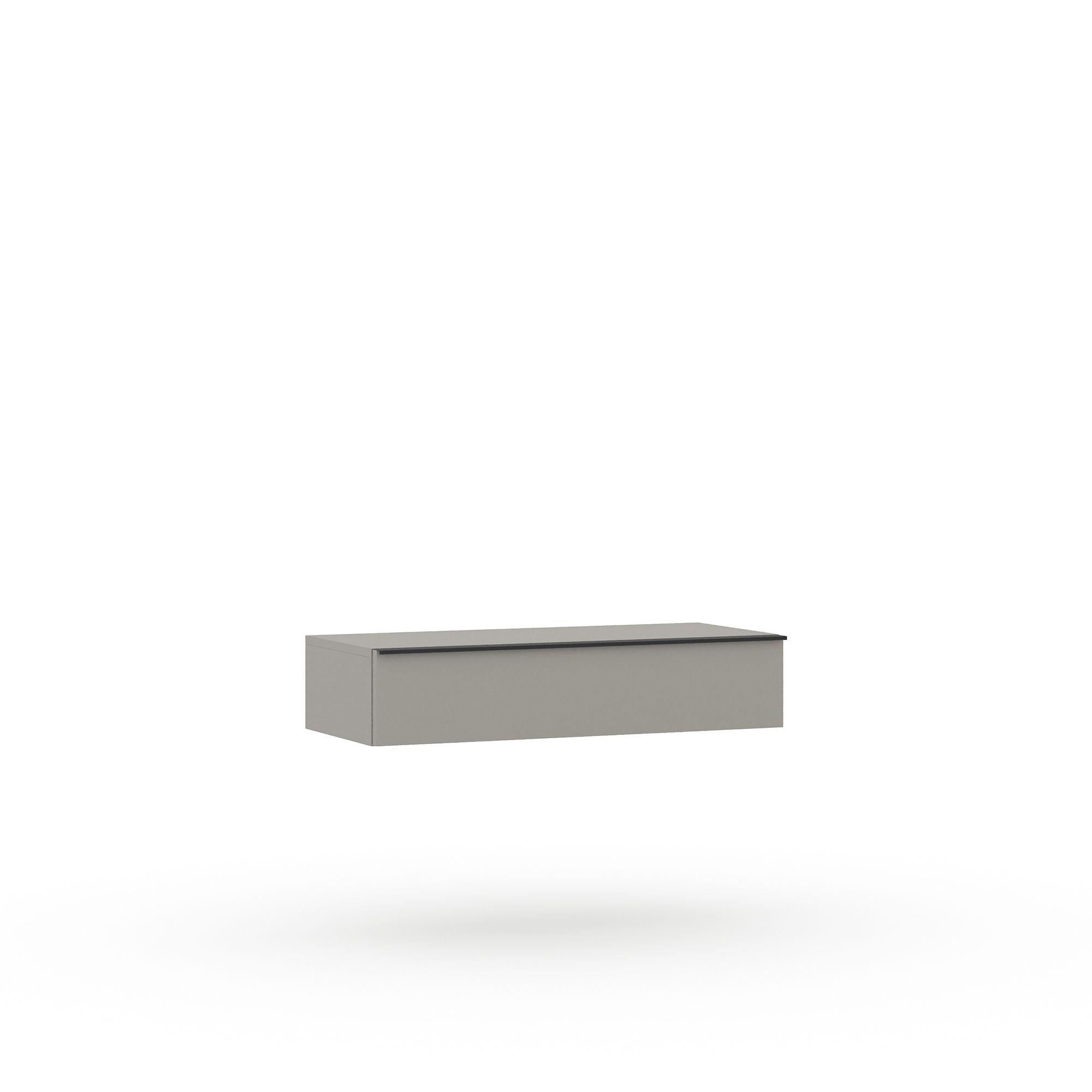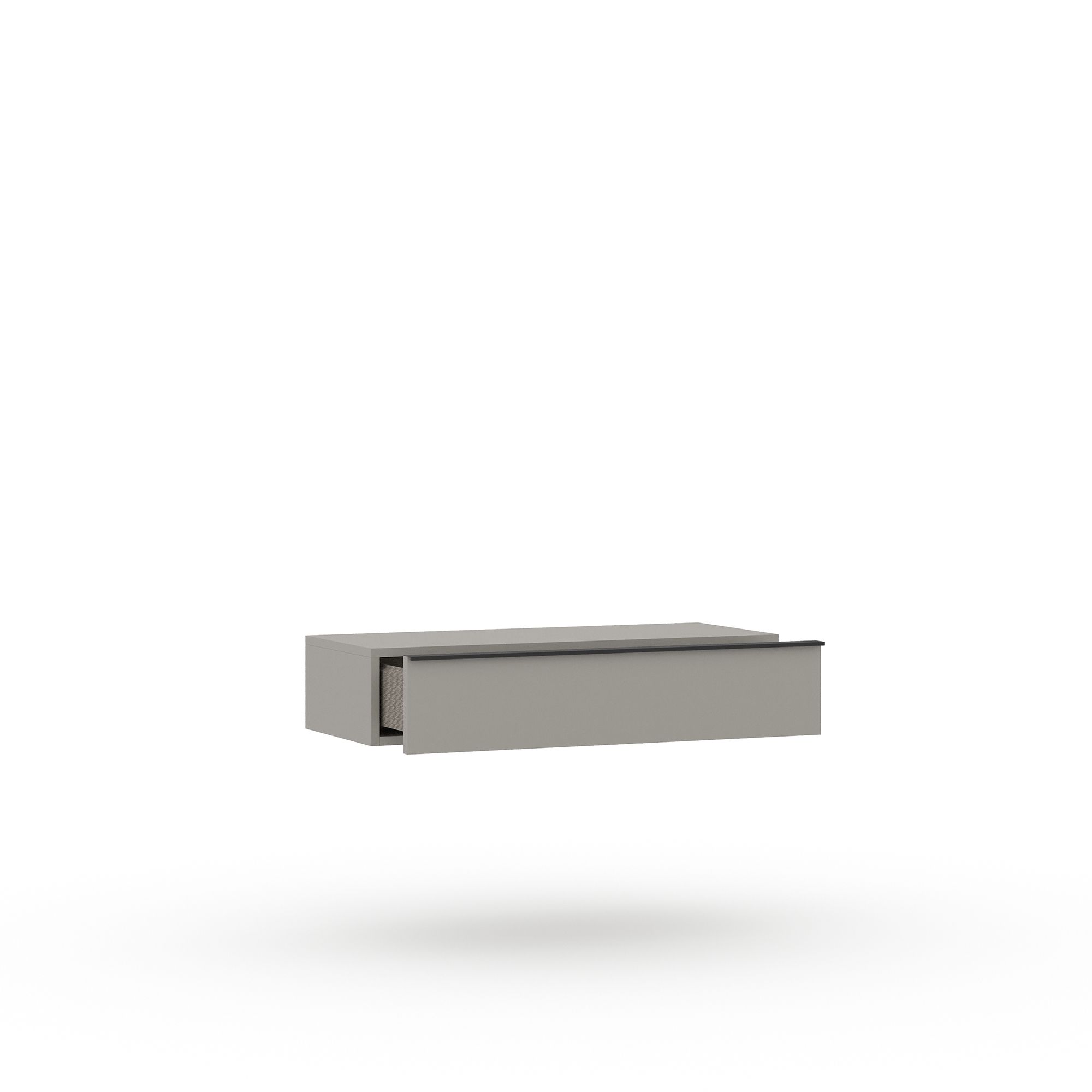 Навесной шкаф TERAMO оснащен выдвижным ящиком с фасадом в монохромной отделке. Максимальная допустимая нагрузка на элемент составляет 15 кг.