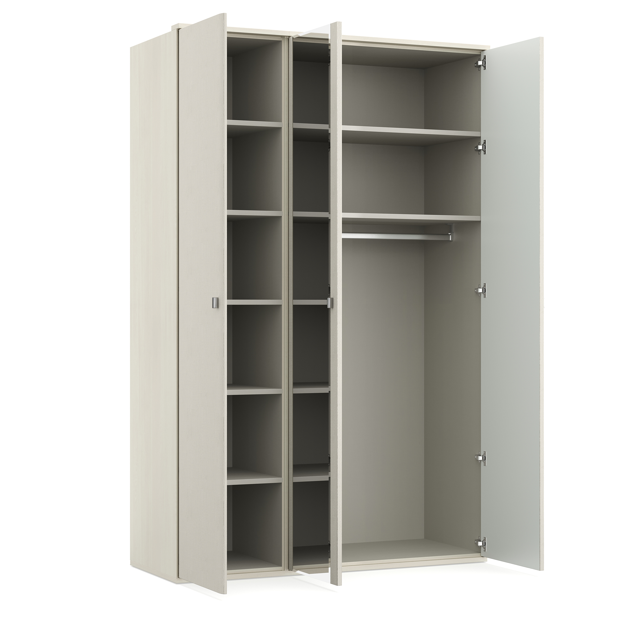 Шкафы коллекции предусматривают возможность дополнительного оснащения полками, штангами и вставными тумбами, которые повышают функциональность системы хранения, позволяя «настроить» ее под себя.