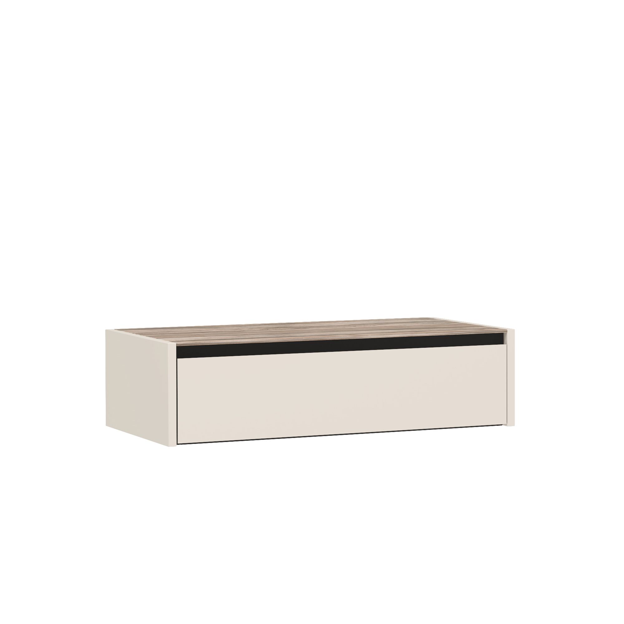 Навесной шкаф ARTA оснащен выдвижным ящиком с эргономичной J-ручкой. Направляющие ящика рассчитаны на нагрузку до 25 кг, что гарантирует бесшумность и плавность хода. Боковые стенки в текстуре Cachmere и крышка в текстуре Мрамор Medio (возможна замена на крышку в тон фасада) включены в стоимость.