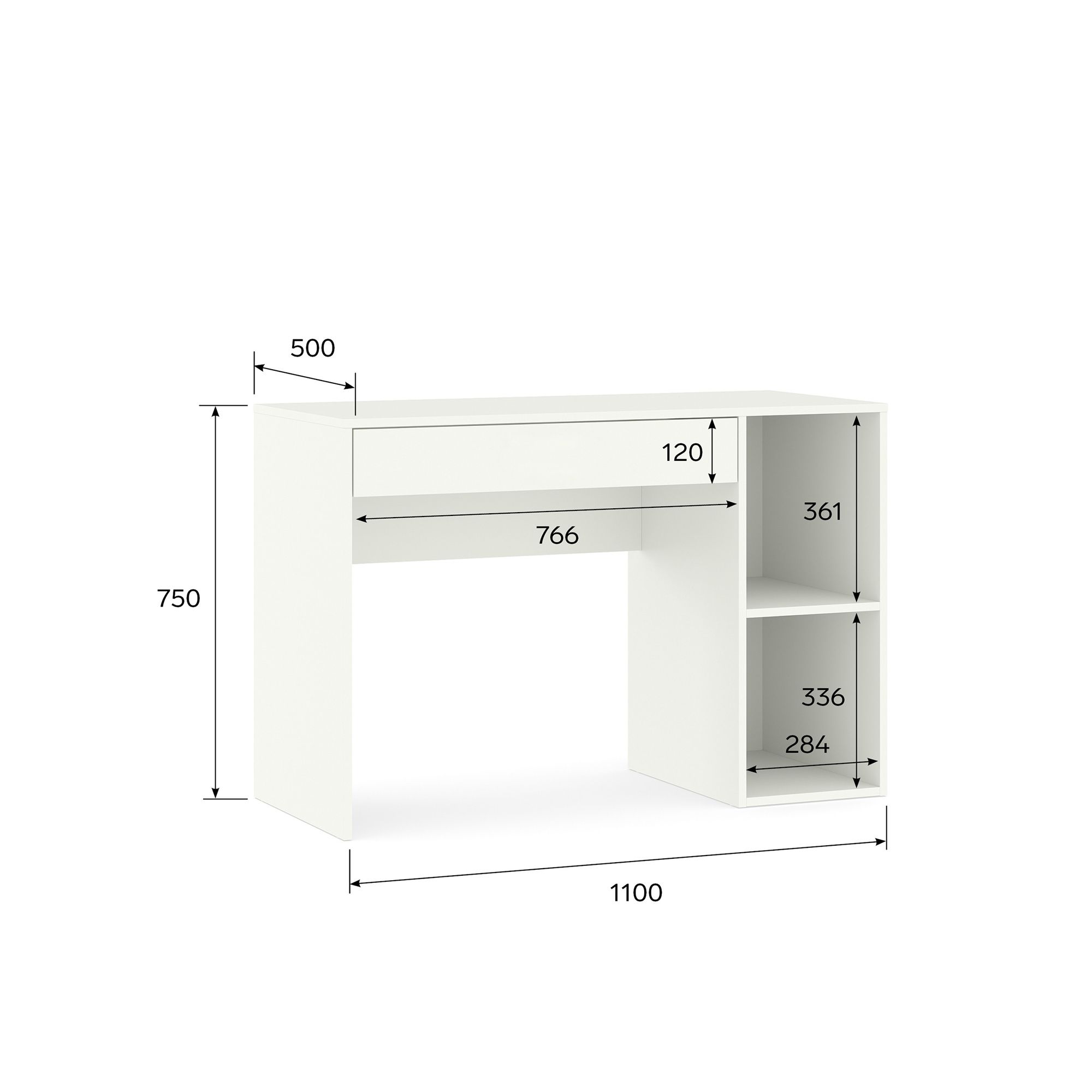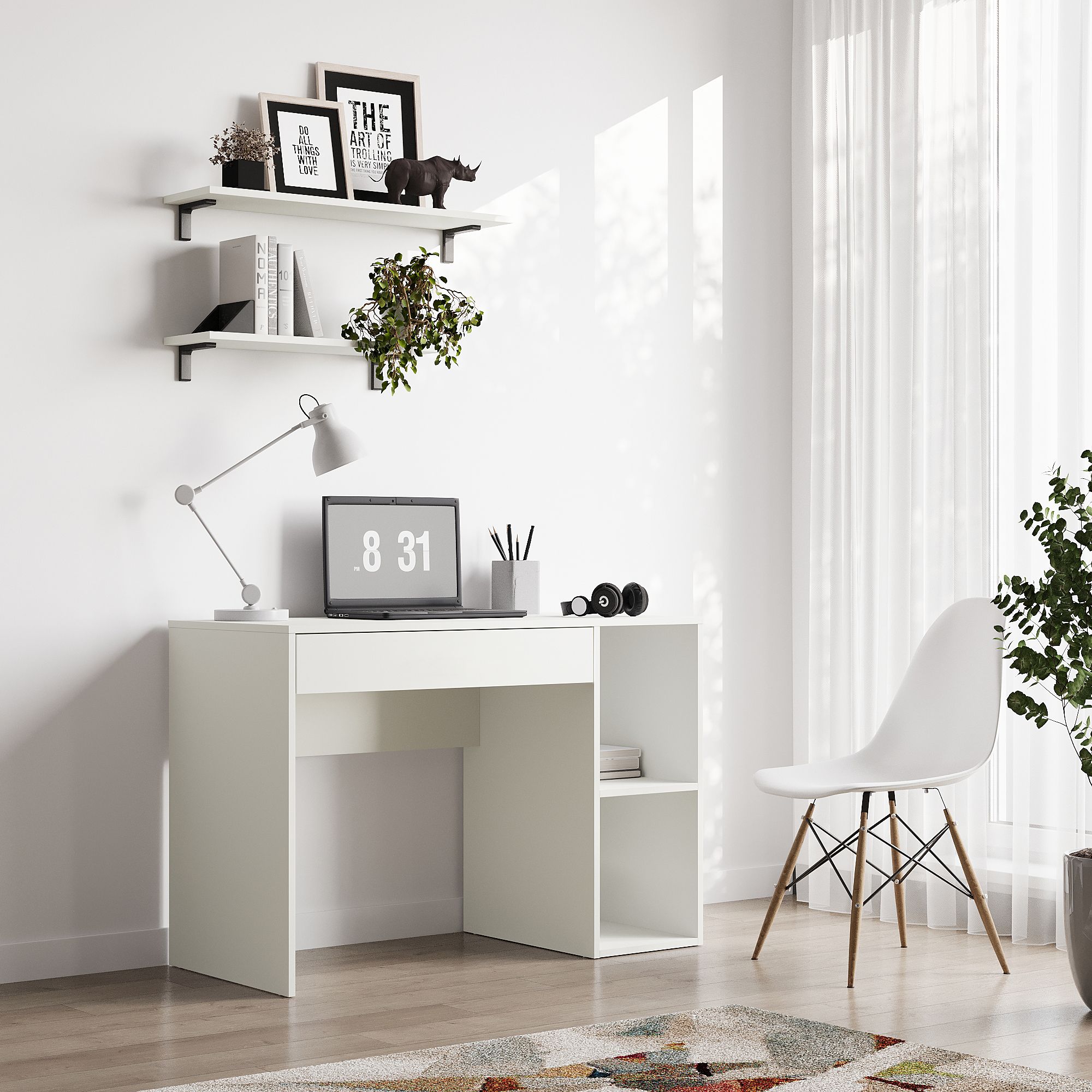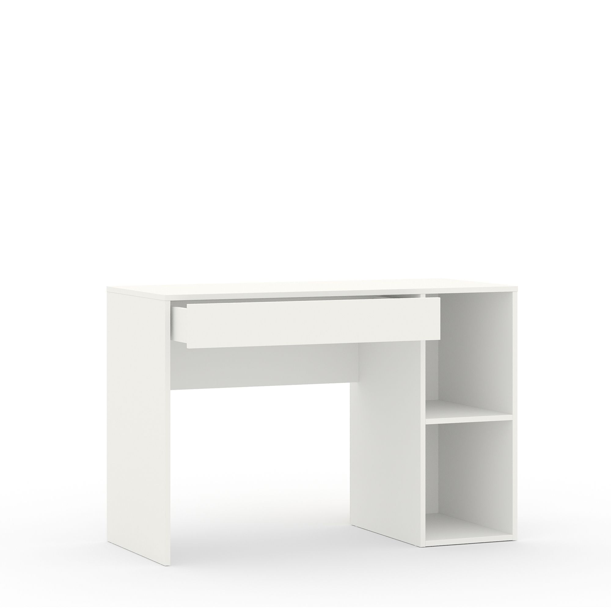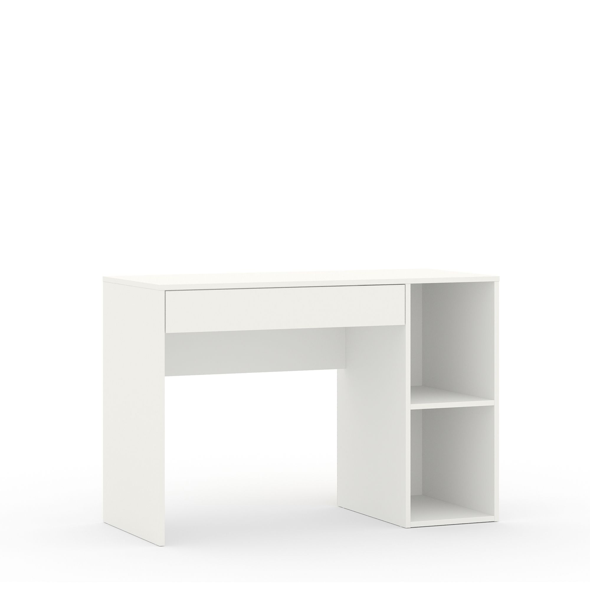 Письменный стол SOHO оснащен открытыми полками и выдвижным ящиком. Современный дизайн и практичность модели делают ее универсальным выбором для офиса, домашнего кабинета или детской комнаты. Компактные размеры позволяют создать рабочее место в любой зоне квартиры, эргономичный дизайн обеспечивает удобство использования и способствует сохранению правильной осанки во время работы.