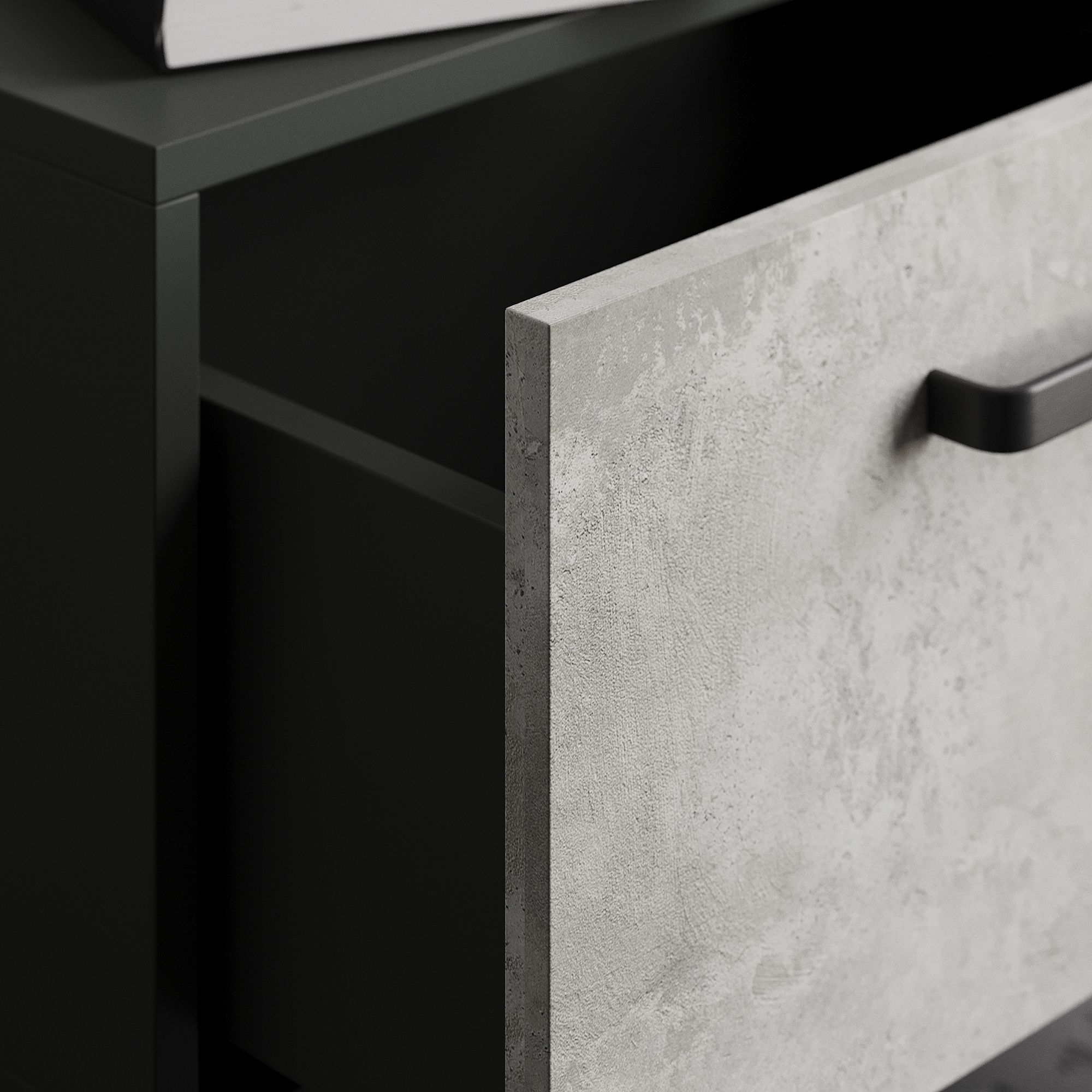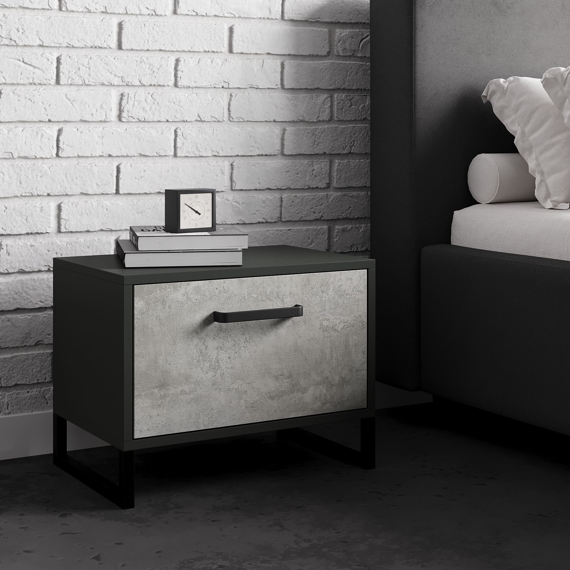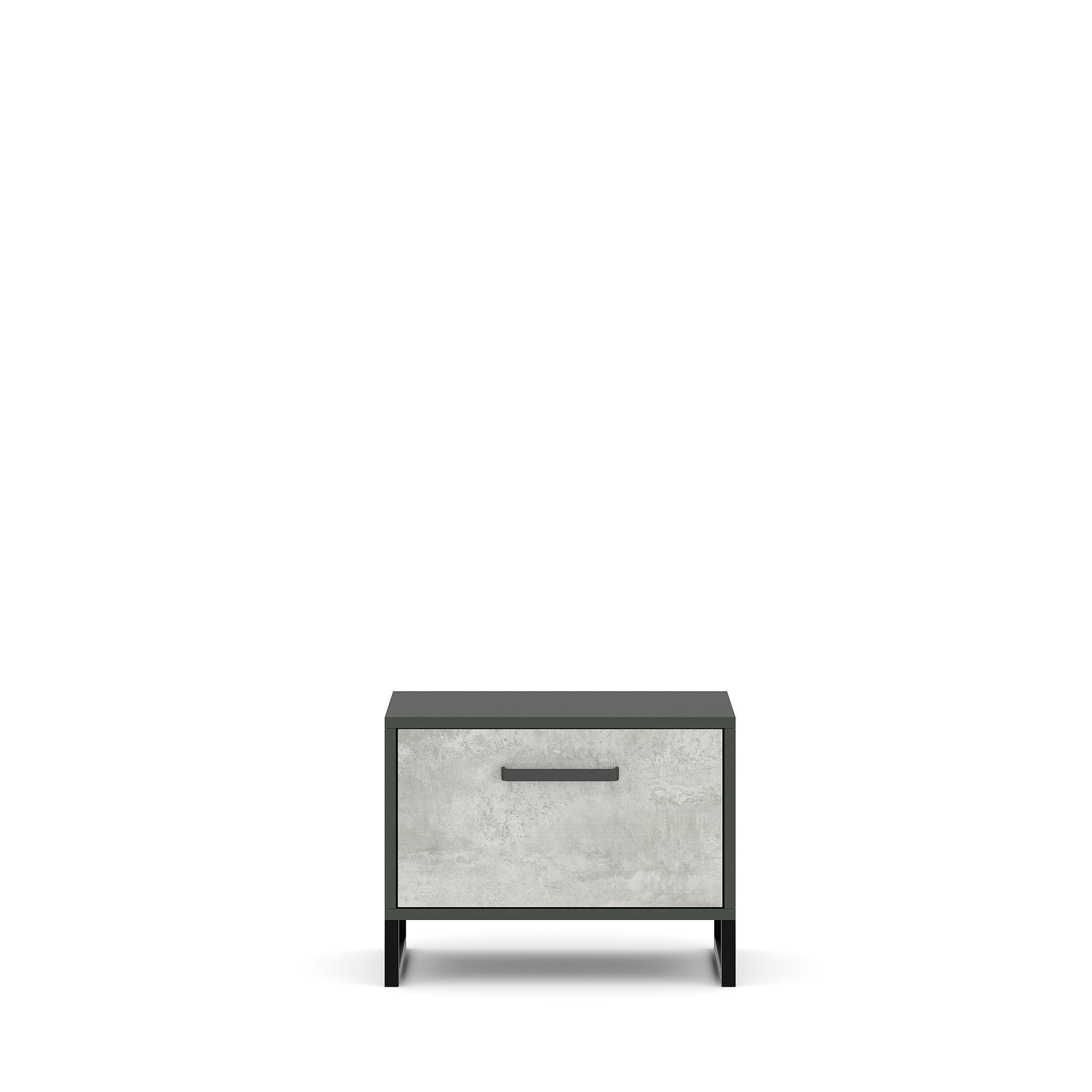 Прикроватная тумба SOHO на устойчивых металлических опорах отлично вписывается в интерьер современной спальни благодаря лаконичному универсальному дизайну. Модель оснащена вместительным выдвижным ящиком в текстуре бетона. Материал отделки отличается долговечностью и стойкостью к выцветанию, что позволяет мебели сохранять привлекательный внешний вид на протяжении долгого времени.