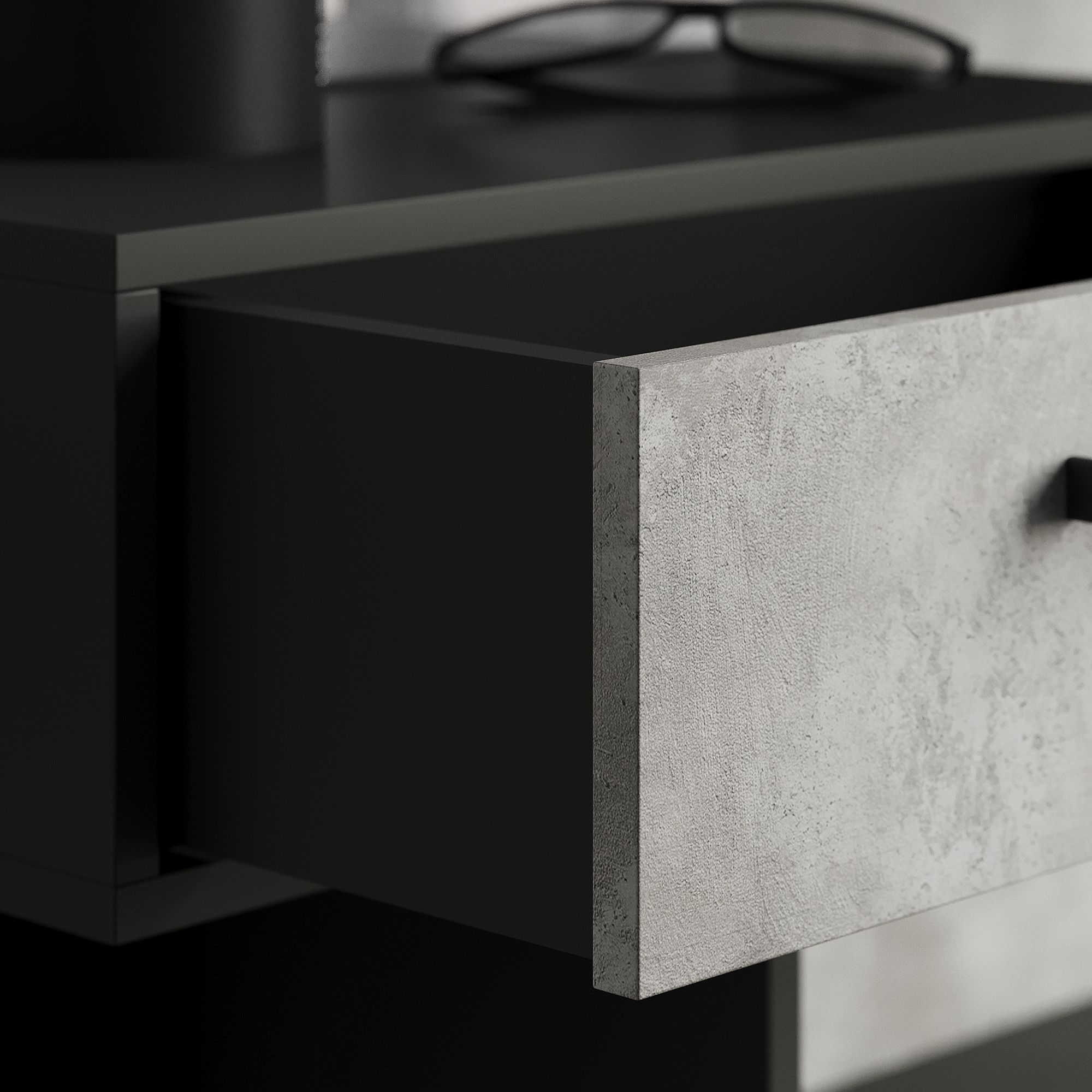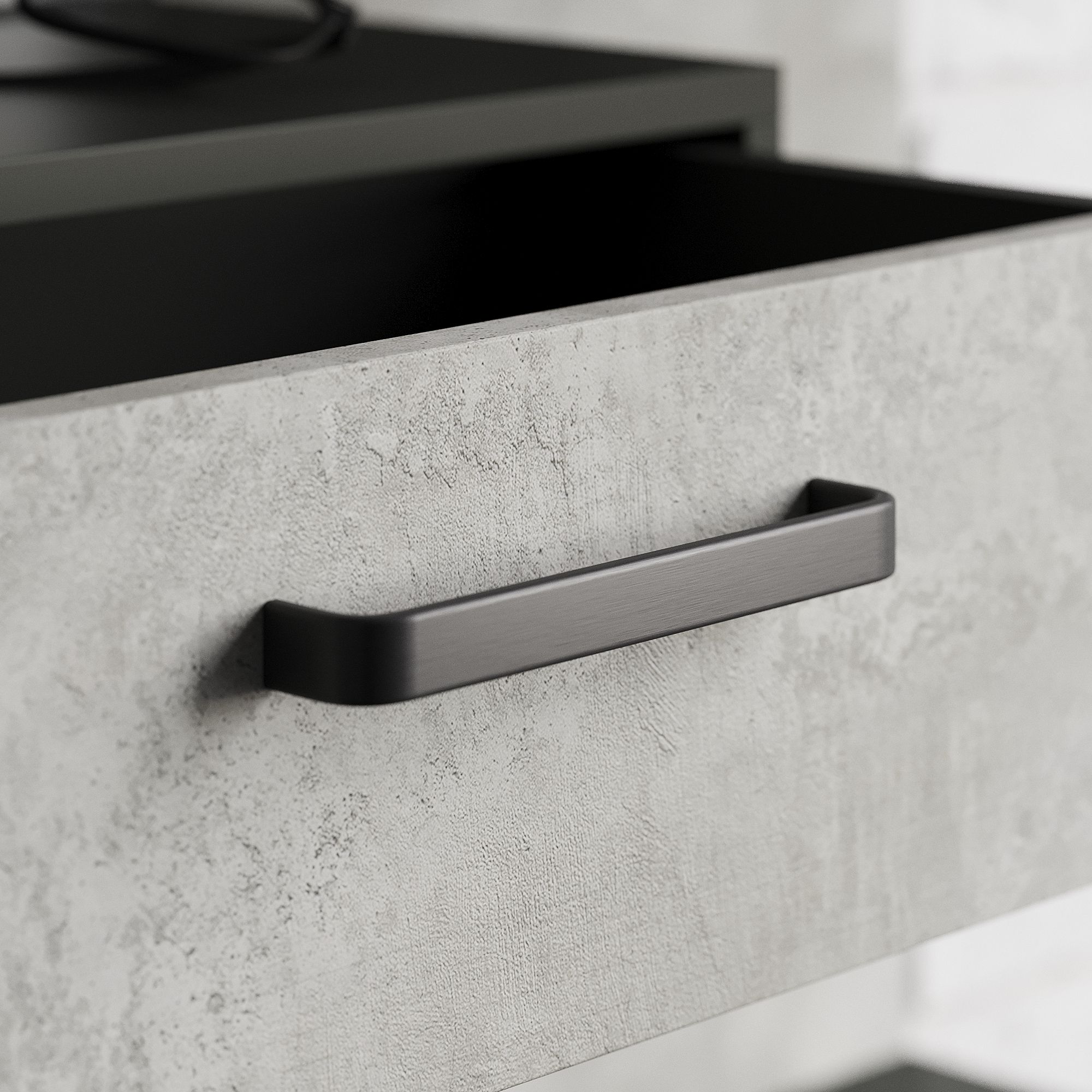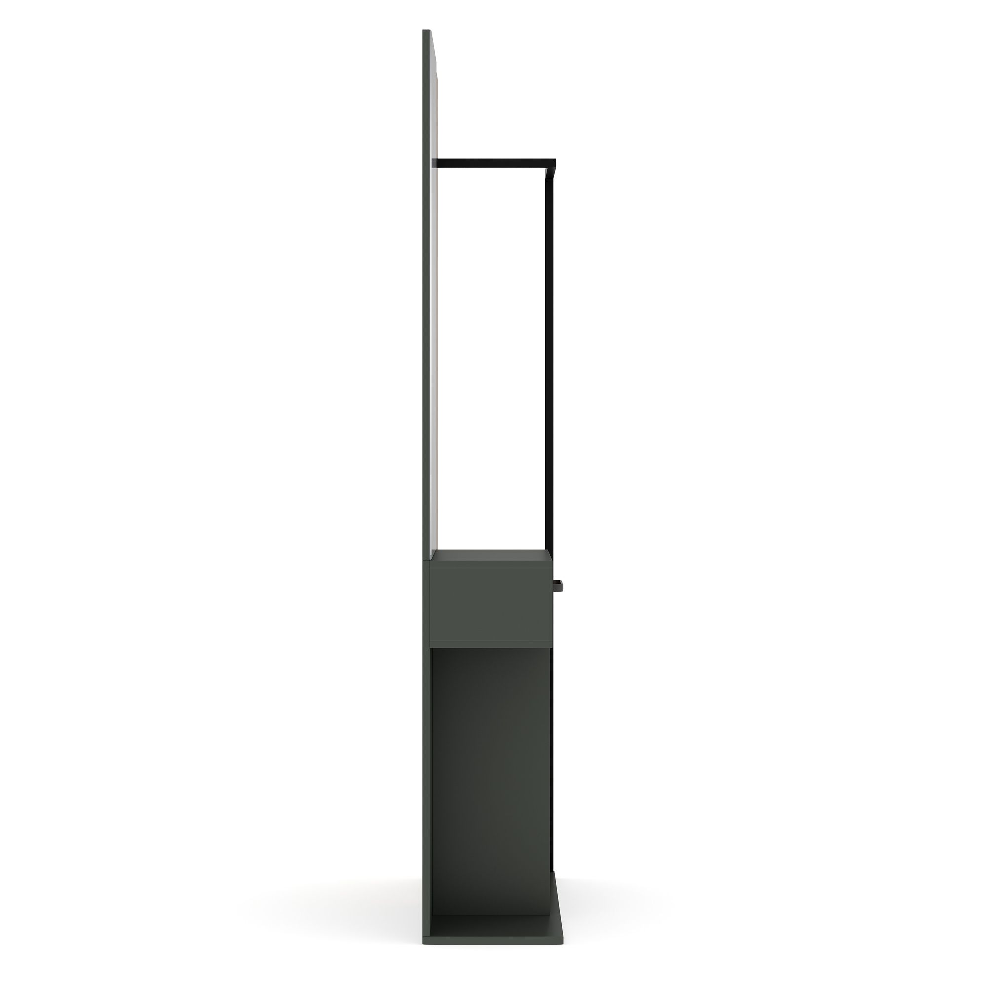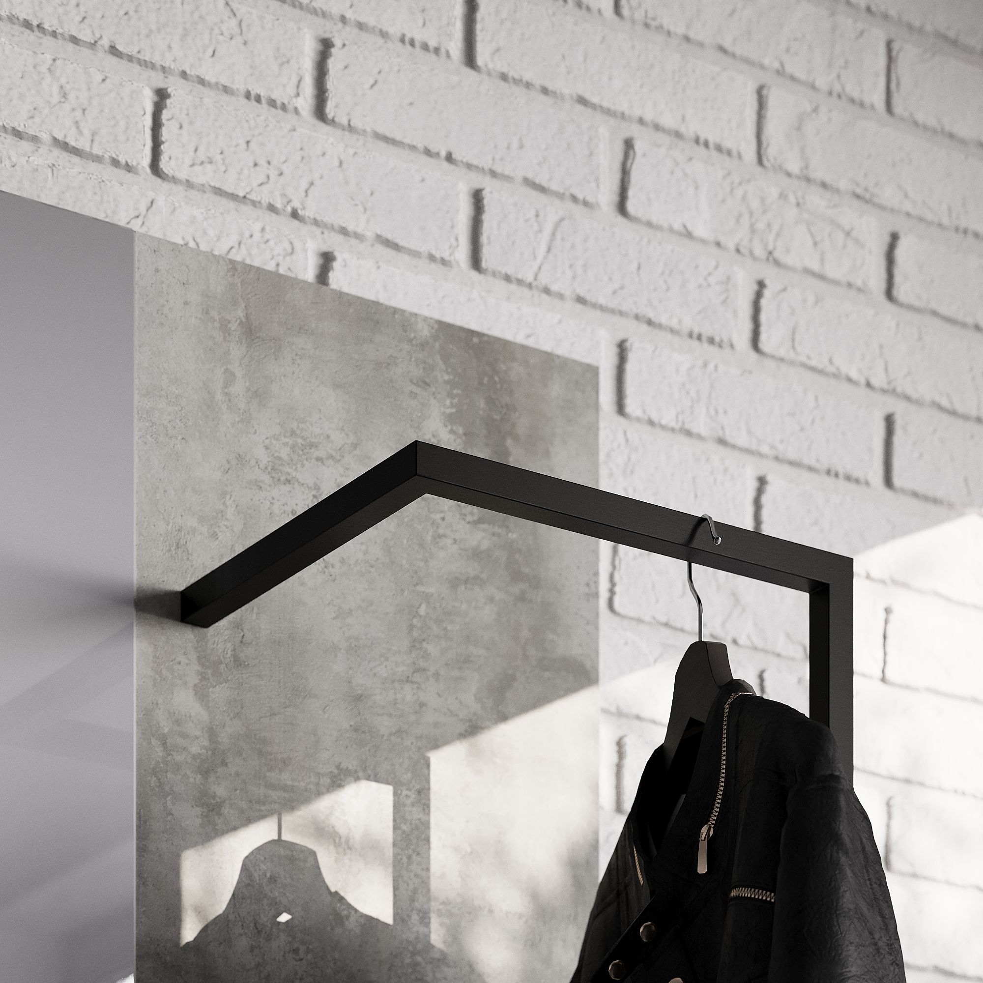 Напольная вешалка-гардероб SOHO – функциональный модуль в стиле лофт, который поможет рационально использовать пространство небольшой прихожей и придать ей стильный современный вид. Металлическая штанга с покрытием черного цвета легко выдерживает большие объемы одежды. Конструкцией предусмотрены полки для обуви, зеркало и элемент с выдвижным ящиком для мелочей, оснащенный фасадом в отделке текстурой бетона. Корпус и фасады выполнены из высококачественного ЛДСП, что позволяет мебели сохранять привлекательный внешний вид на протяжении долгого времени.