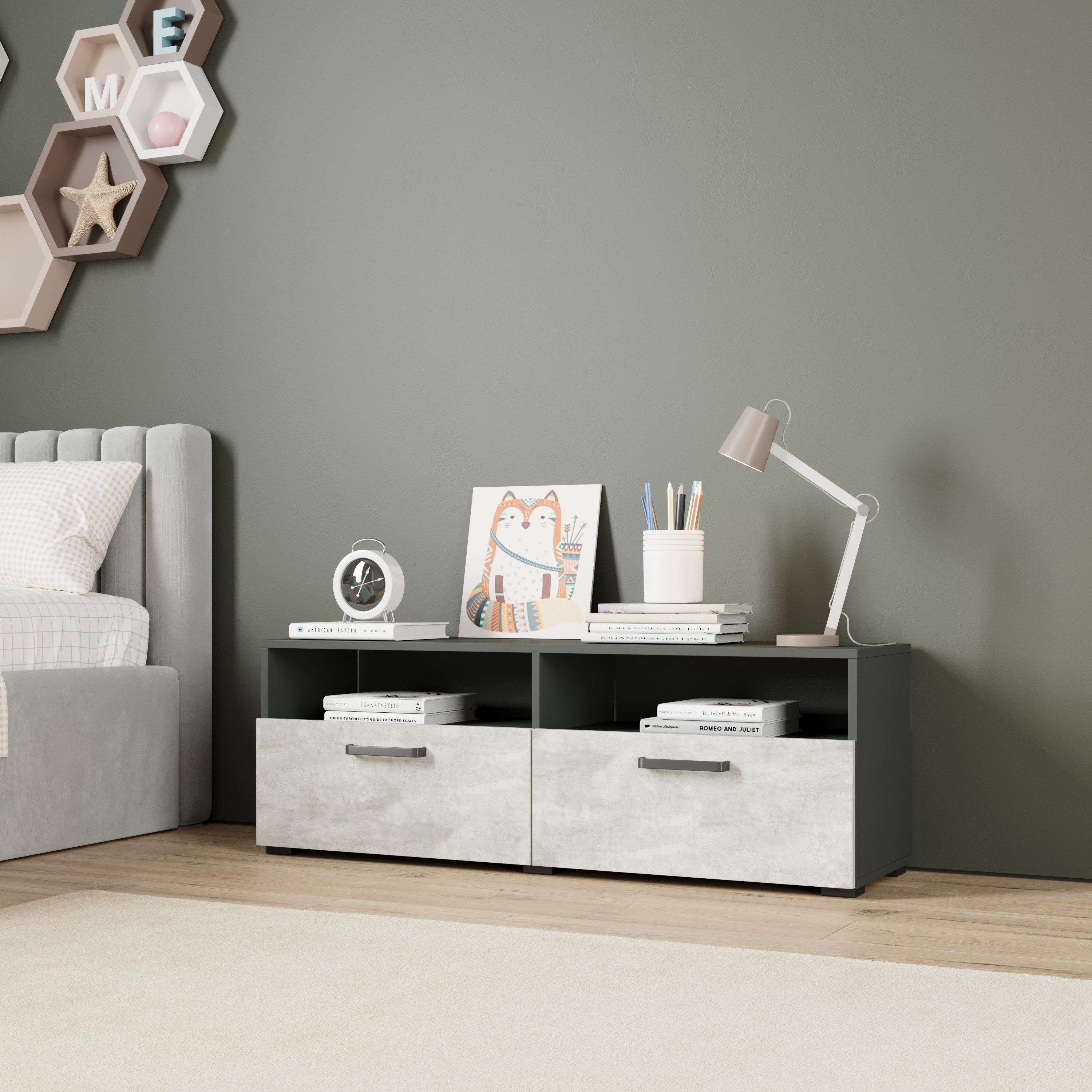 Вместительная тумба SOHO отлично впишется в интерьер прихожей, гостиной или спальни благодаря лаконичному универсальному дизайну. Модель оснащена двумя отделениями с фасадами, а также имеет открытые ниши. При использовании в качестве ТВ-тумбы в них можно разместить аппаратуру – умную колонку, игровую приставку или другие устройства. Материал отделки отличается долговечностью и стойкостью к выцветанию, что позволяет мебели сохранять привлекательный внешний вид на протяжении долгого времени.
