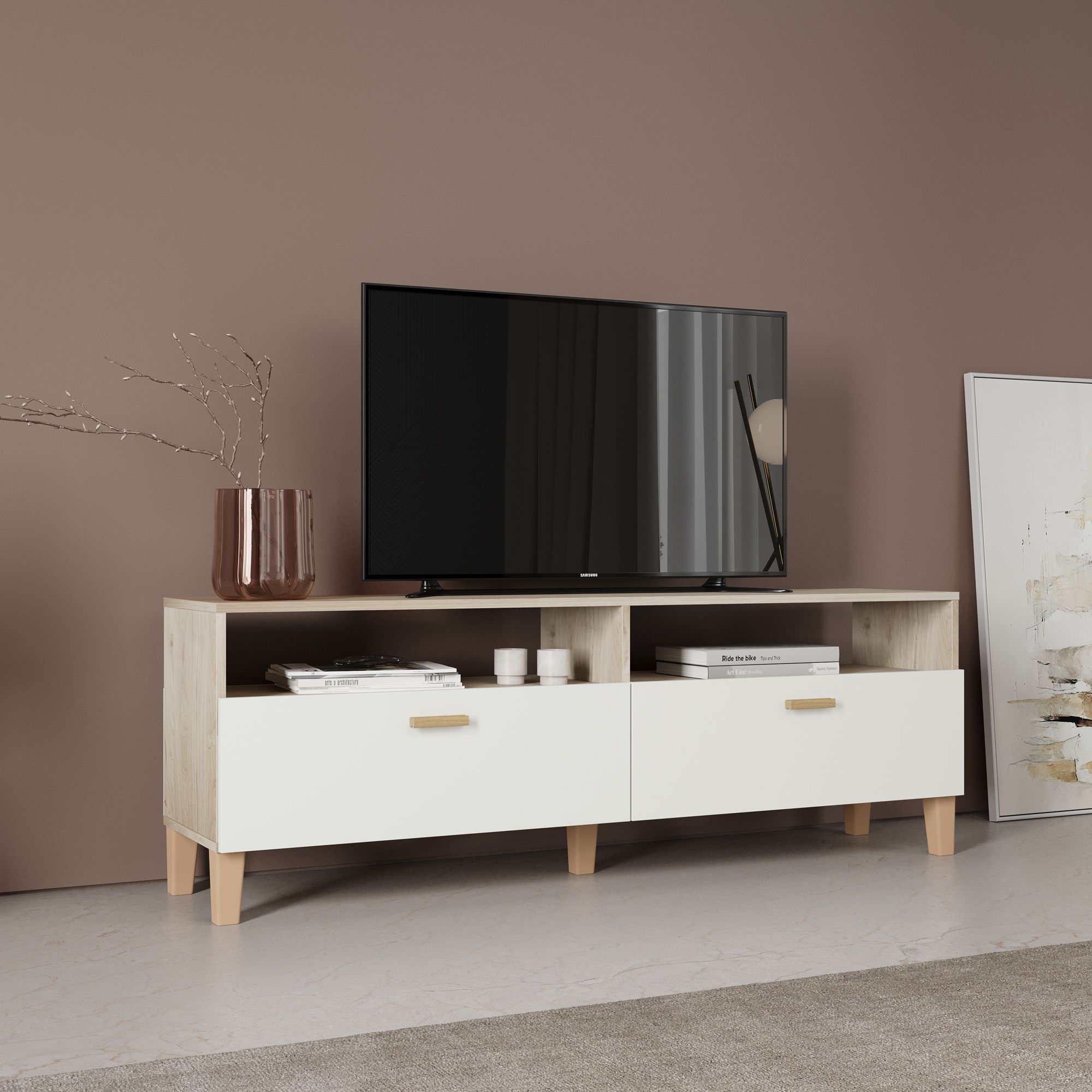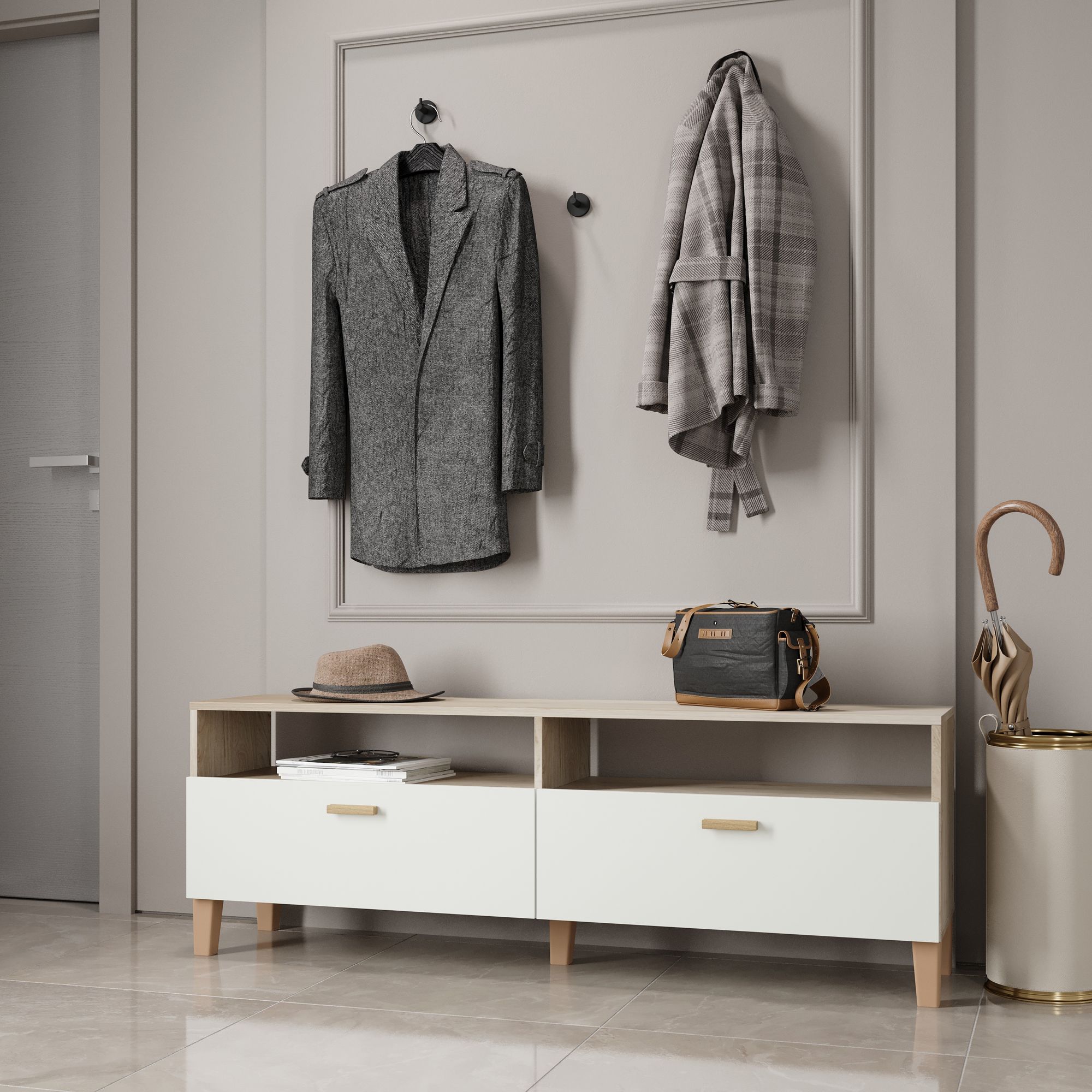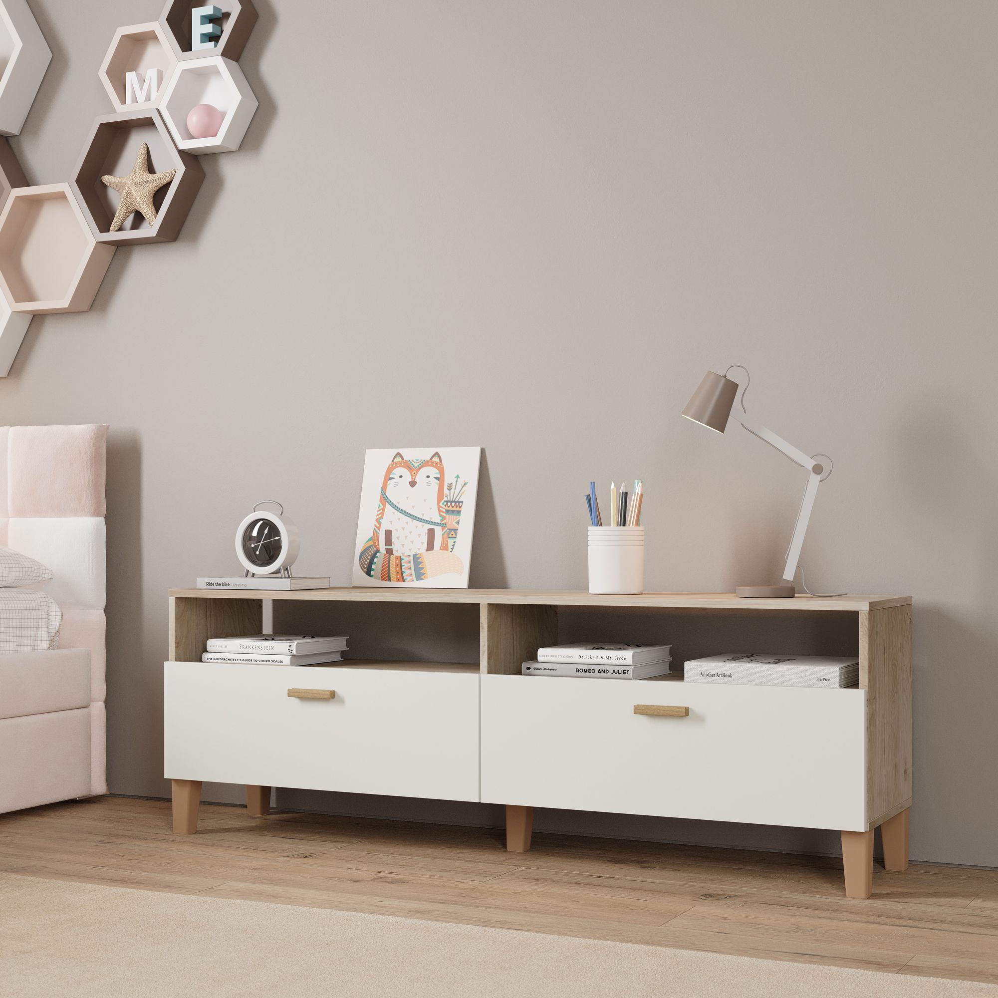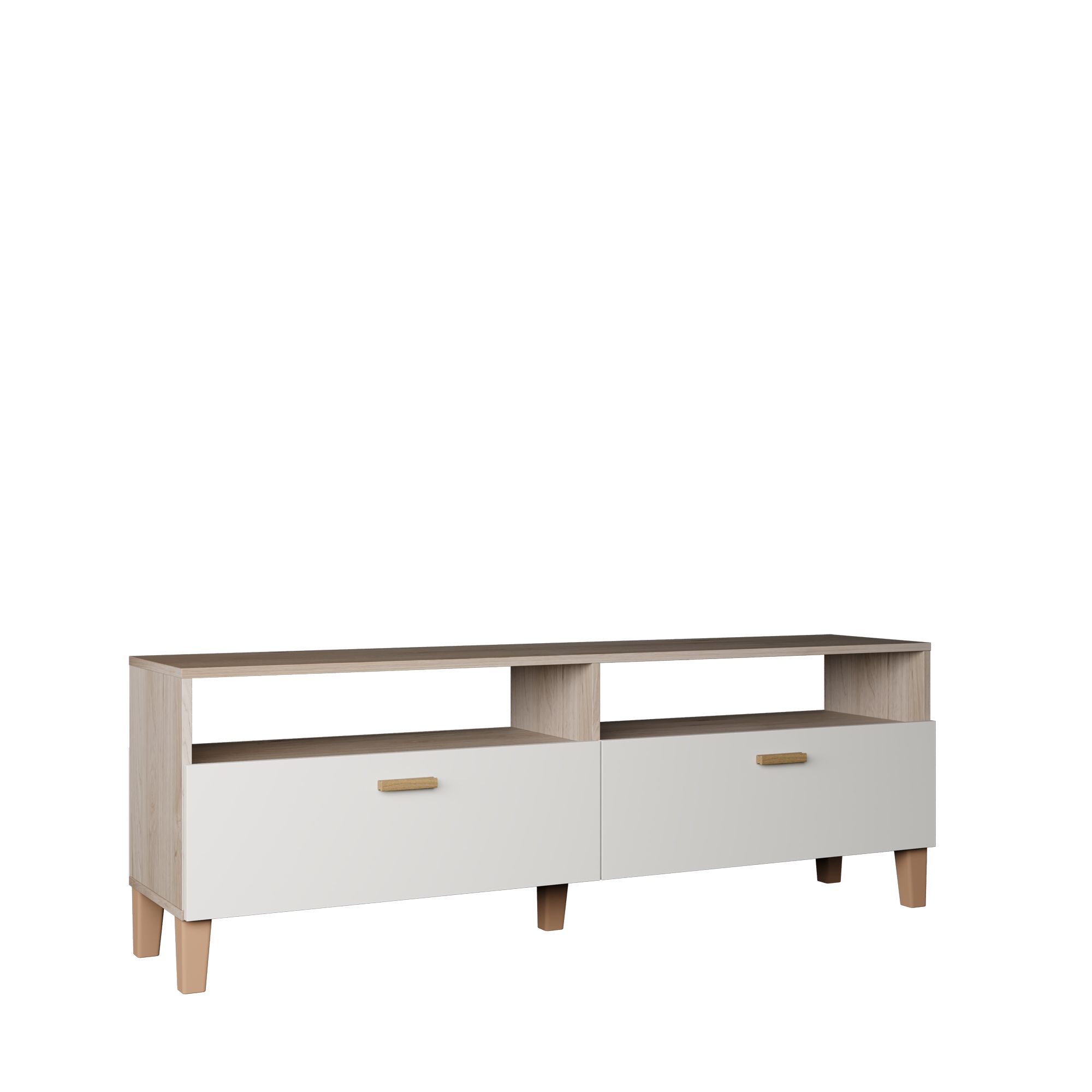 Вместительная ТВ-тумба SOHO на устойчивых опорах отлично впишется в интерьер гостиной или спальни благодаря лаконичному универсальному дизайну. Модель оснащена двумя отделениями с фасадами, а также имеет ниши для аппаратуры – умной колонки, проектора, игровой приставки или других устройств. Материал отделки отличается долговечностью и стойкостью к выцветанию, что позволяет мебели сохранять привлекательный внешний вид на протяжении долгого времени.