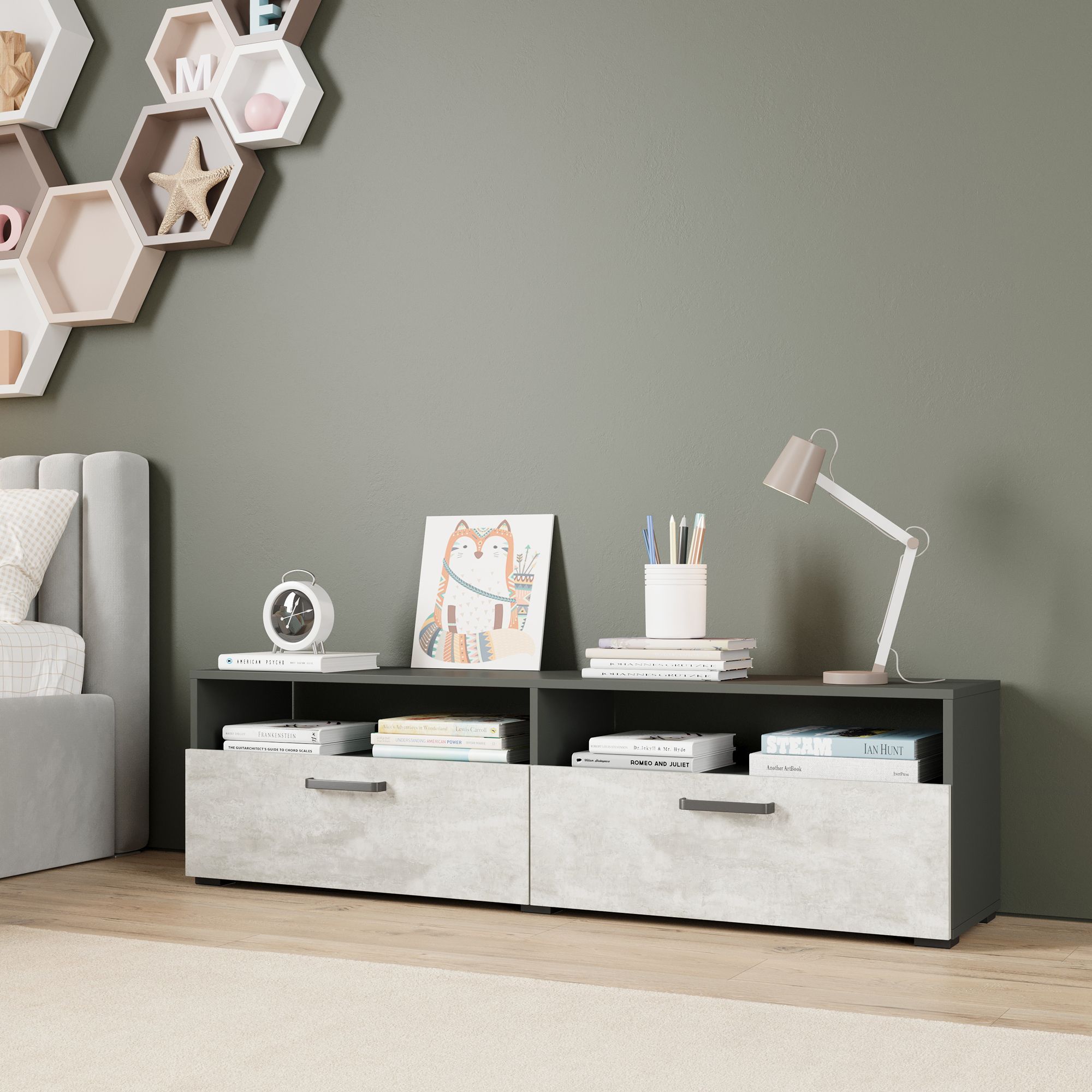 Вместительная тумба SOHO отлично впишется в интерьер прихожей, гостиной или спальни благодаря лаконичному универсальному дизайну. Модель оснащена двумя отделениями с фасадами, а также имеет открытые ниши. При использовании в качестве ТВ-тумбы в них можно разместить аппаратуру – умную колонку, игровую приставку или другие устройства. Материал отделки отличается долговечностью и стойкостью к выцветанию, что позволяет мебели сохранять привлекательный внешний вид на протяжении долгого времени.